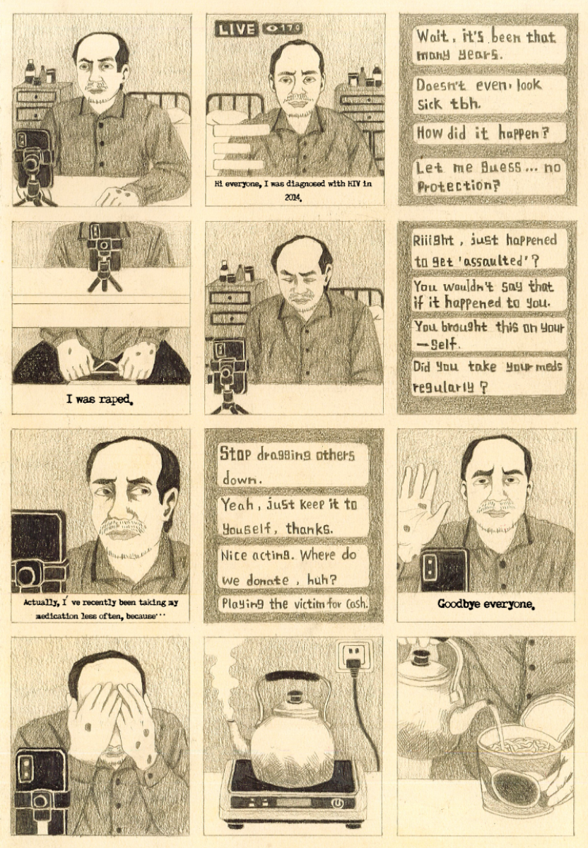 Through the form of visual archive, this project gives presence to the voices and experiences of people living with HIV and depression— voices that are often unseen and unheard. Because their realities are ignored, society fails to understand them, reducing them to fear, stigma, or metaphor. The cover of archival folders use heat-sensitive ink, the work invites viewers to physically touch and reveal these hidden stories-suggesting that understanding is possible, if only we are willing to get close. What is uncovered is not frightening, but human: many of them hurt, longing to be seen not as symbols, but as themselves. This work remains ongoing. I hope to continue listening, recording, and sharing the voices of those who are so often overlooked— on their own terms, and in their own words.