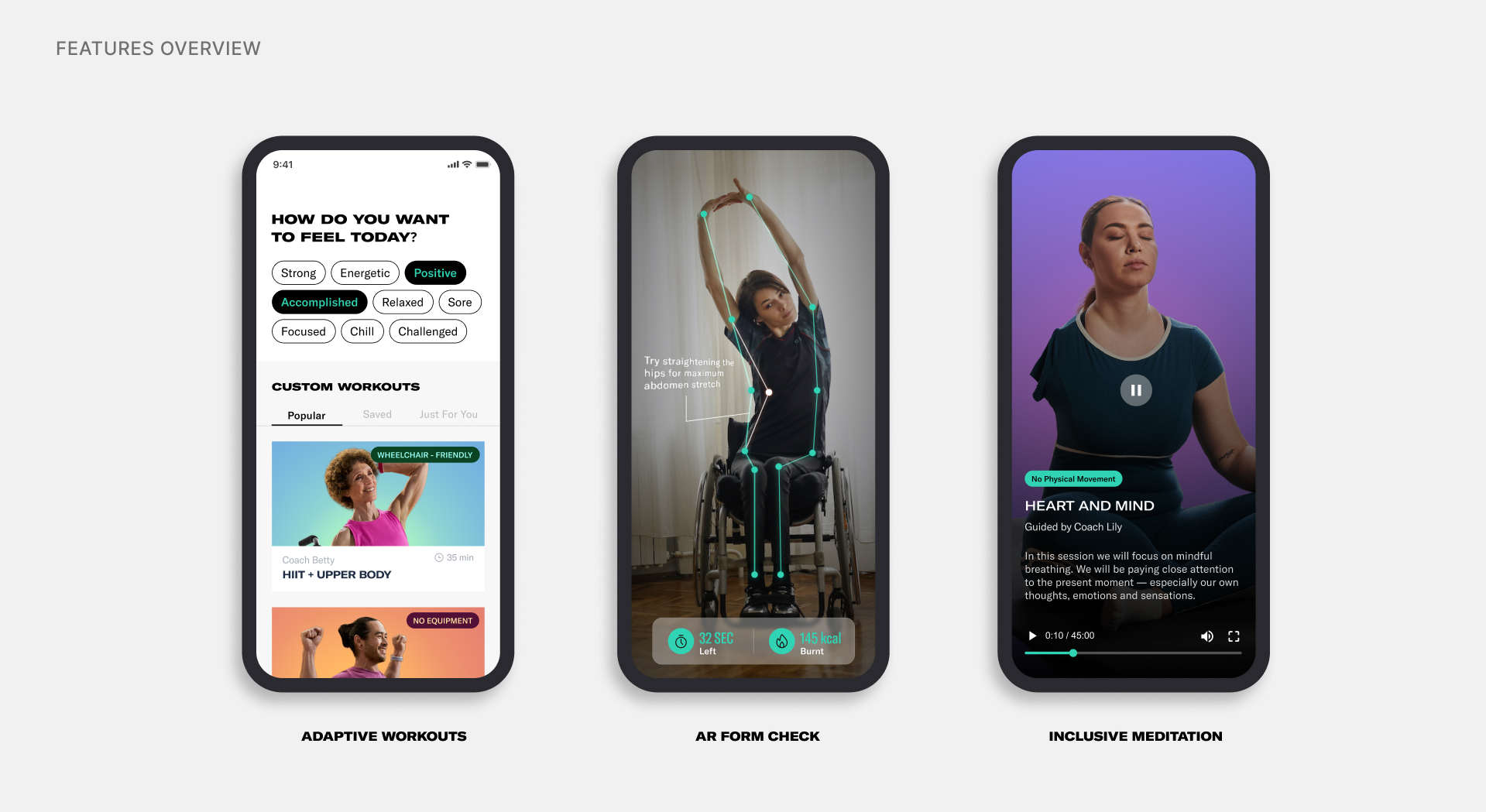 Tonal Reframed is a holistic wellness platform designed for people with reduced mobility to achieve their fitness goals in the comfort of their own homes.