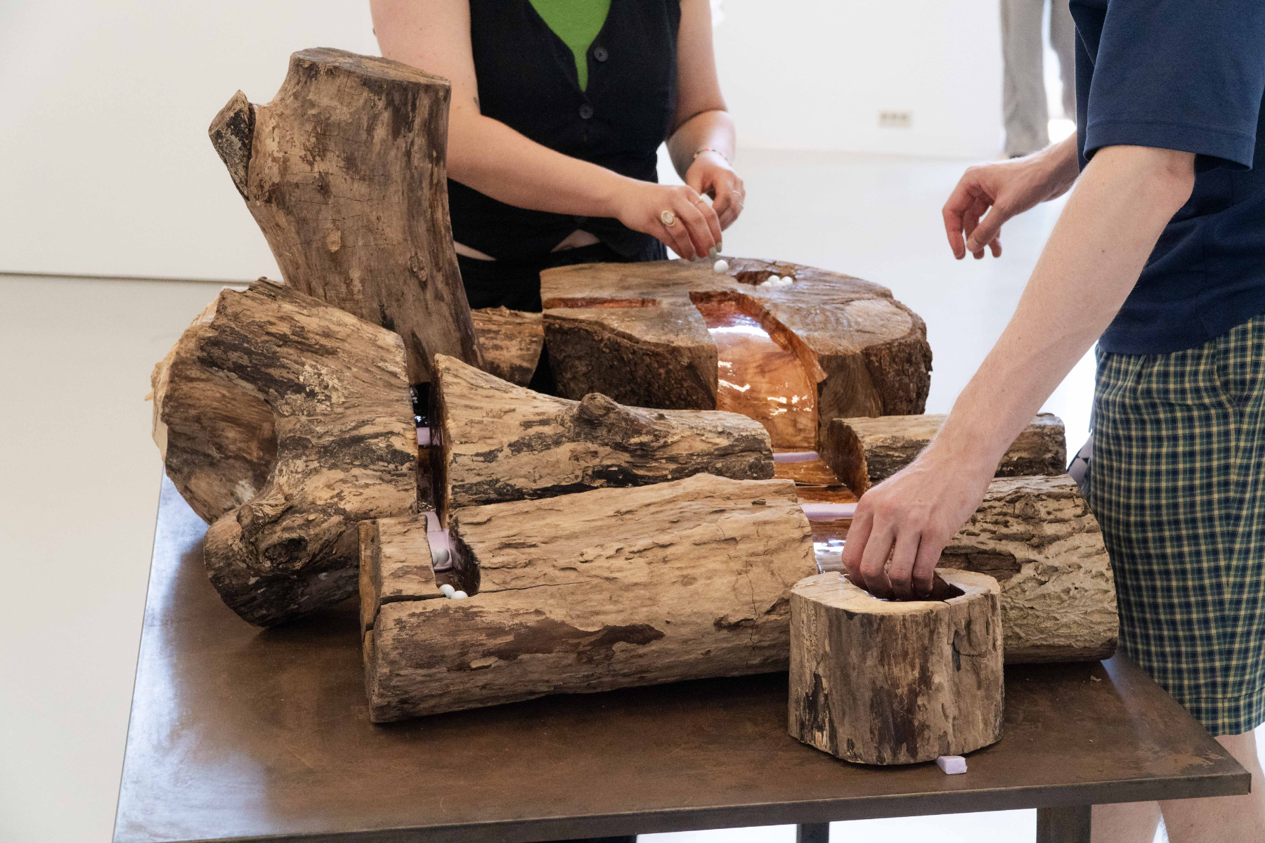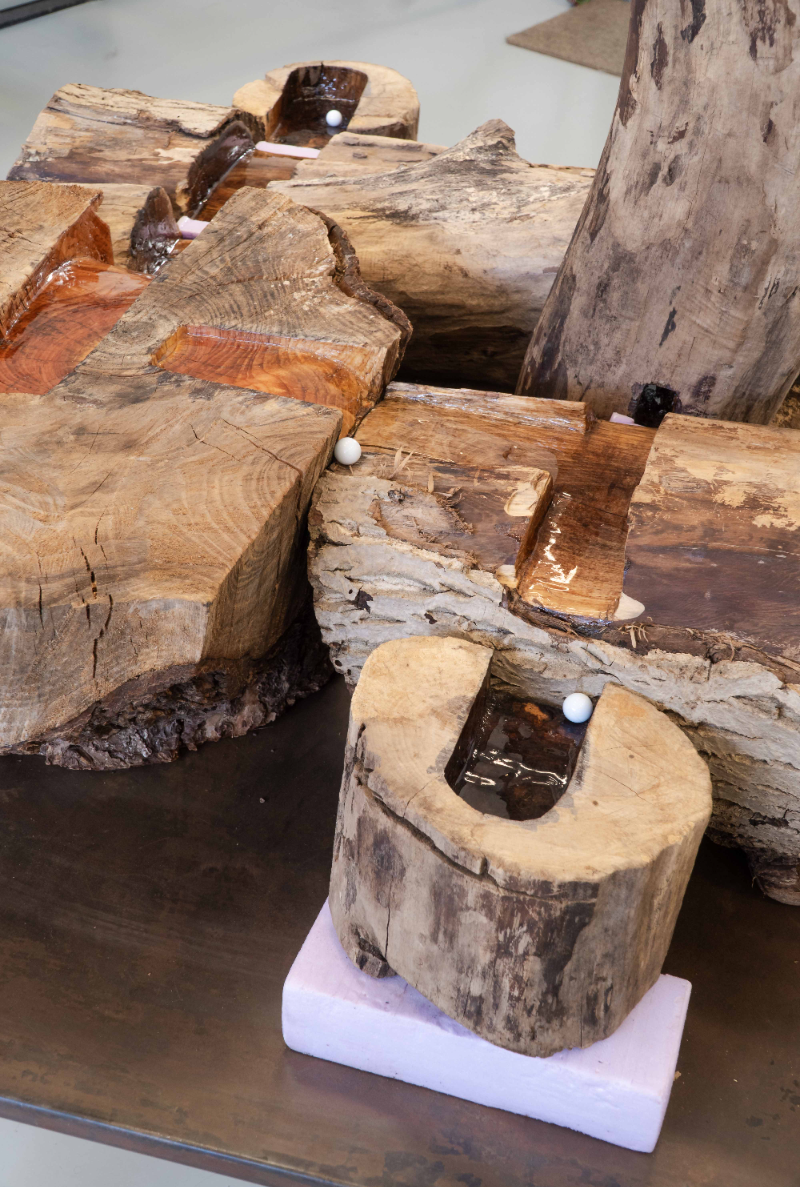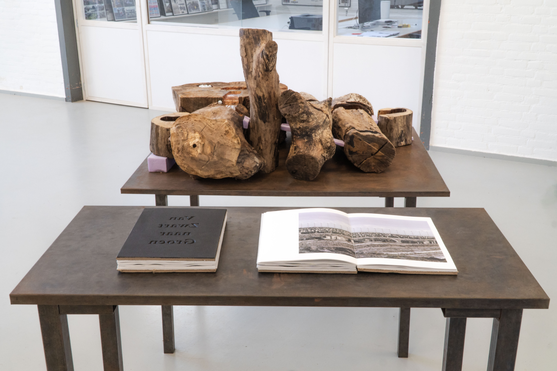 My graduation work consists of two pieces: a photo book and an interactive installation. The photo book “Van Zwart naar Groen” explores how Limburg’s (the Netherlands) landscape is shaped by human intervention. Once a region defined by coal mining, the governmental effort “Van Zwart naar Groen” shifted the focus towards agriculture. By analysing what people leave behind, we can learn how a society functions and values land. I use photography and lino prints to trace these changes and show how land continues to be exploited in pursuit of economic gain. The cover, engraved in linoleum, and the lino prints, made with modelling paste and acrylic paint, allow the reader to physically experience the traces left in the landscape. To strengthen the connection between the work, theme, and audience, I translated the book’s concept into an interactive wooden sculpture. I carved traces through multiple wooden pieces and assembled them into a marble run. The viewer can touch, feel, play, read, or look, and in this way sense natural resource use on their own terms. Together, both works invite the audience to reflect on land use and its impact on their daily life.