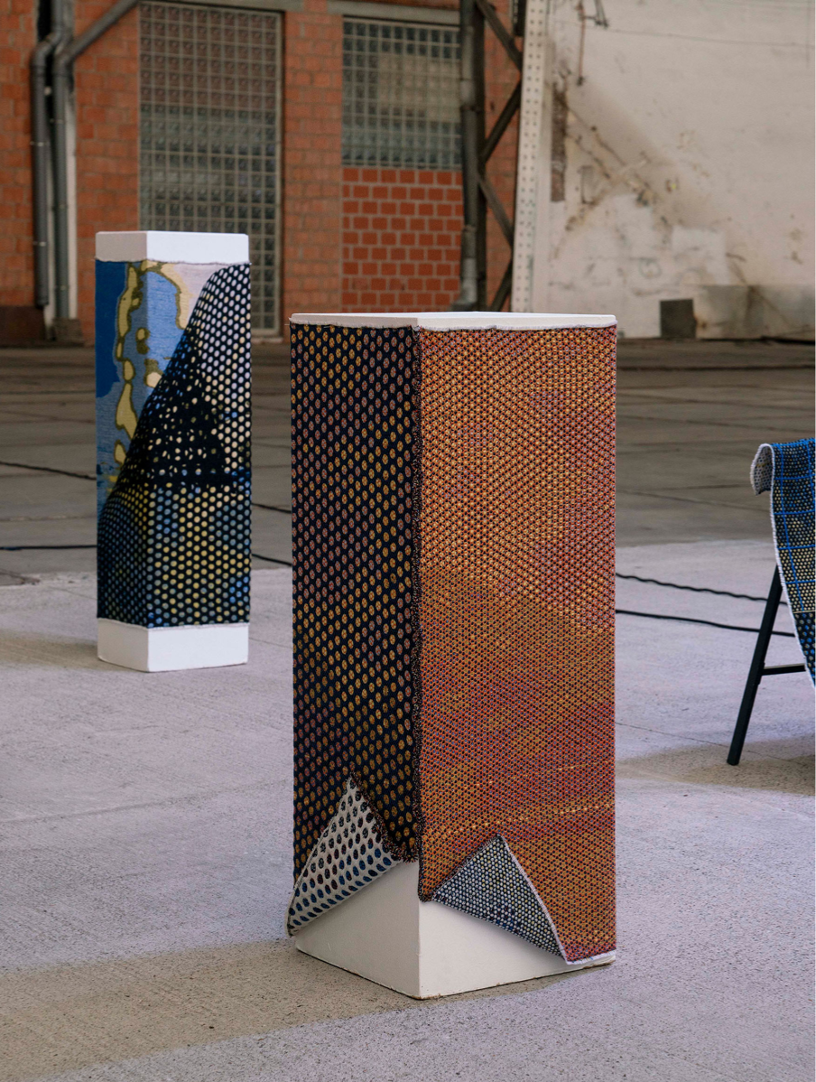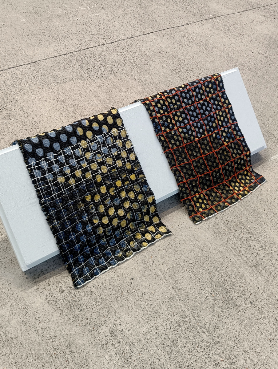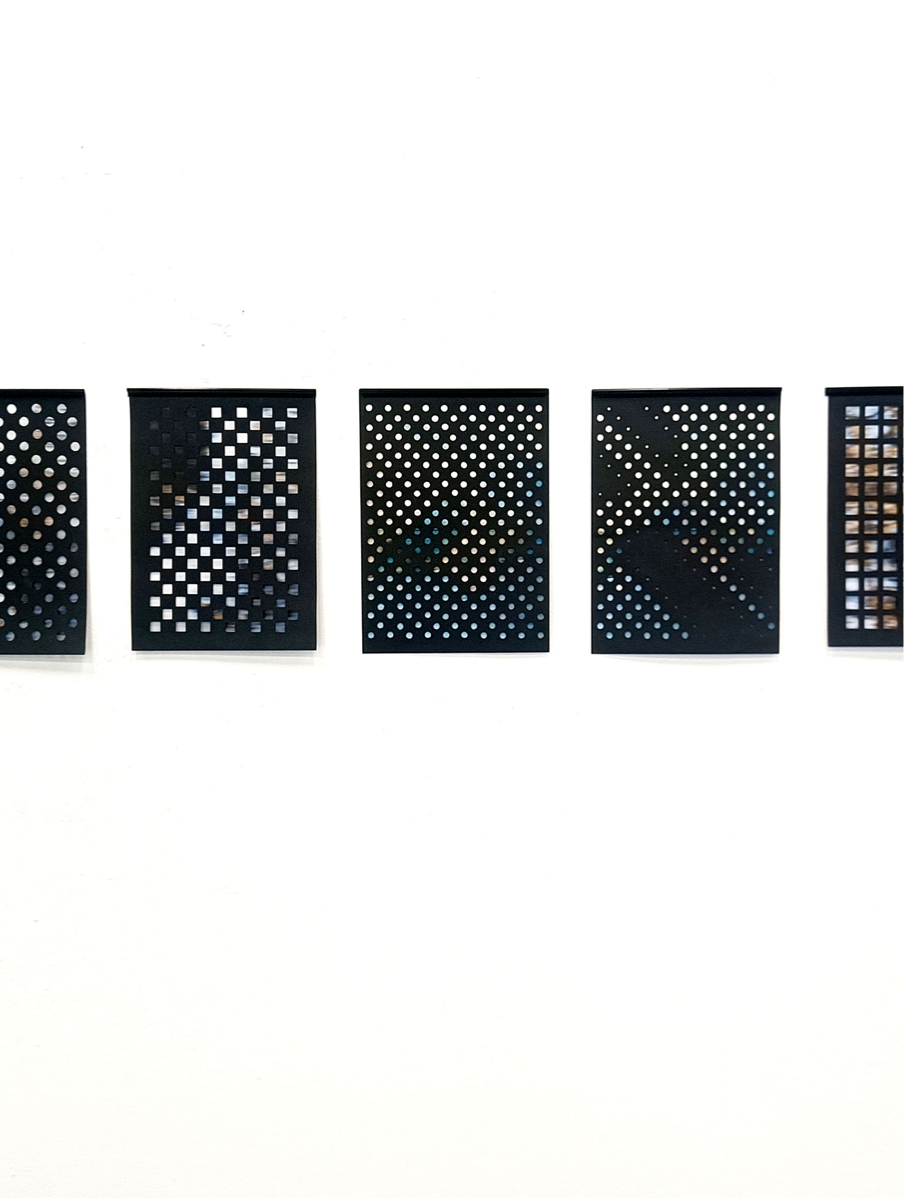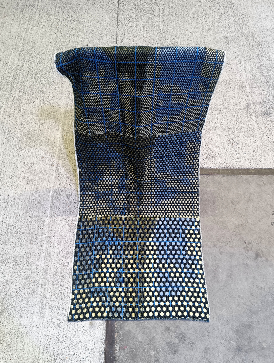 Looking through the window of a tram, I noticed a black grid structure instead of a view of the city. When I shifted my focus I could see the city, and no longer just this grid. While looking, I noticed that I could choose what to really see. This sparked an interest about the way we see things, or better said, the fact that we look at things but don’t really see them. And when we choose to see, we all see differently. The woven grid - scaled up/down, overlapped, etc.- is being used as a way to break our easy vision, it fractures the surface, forcing a pause. It reminds us that seeing is an intentional act, one that can be directed, deepened, or distracted. It creates a visual effect that questions our focus. The work invites a shift from passive observation to active seeing — from viewing as a habit to vision as an intentional act. It’s not just about what’s in front of us, but how we perceive it. You may see an image behind the grid, while the other might just see a mixture of colors. Linger, re-see, let your perception unfold.