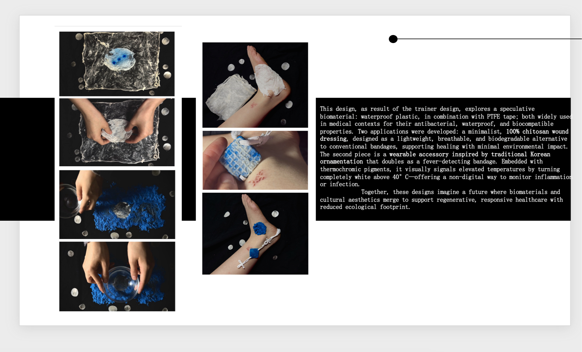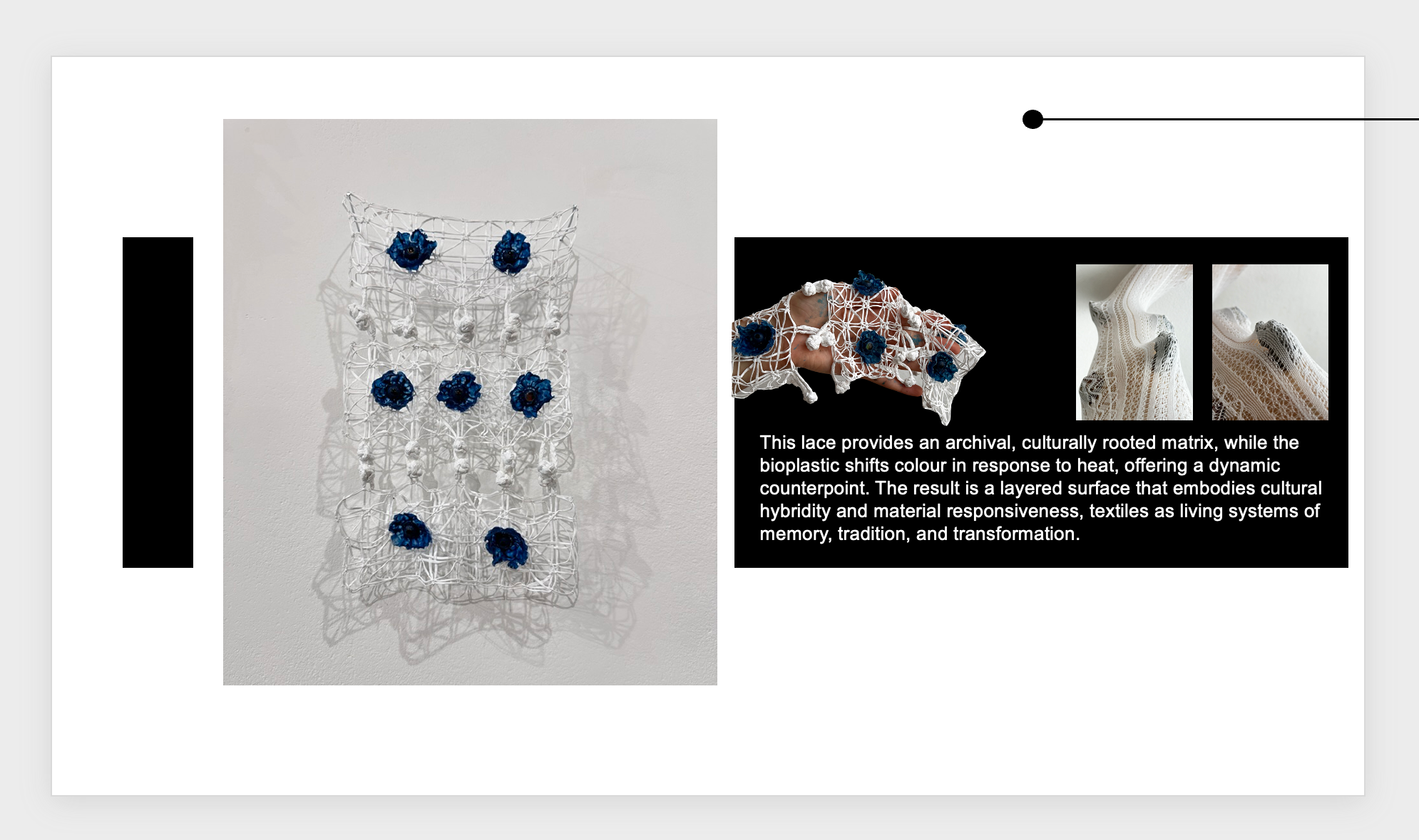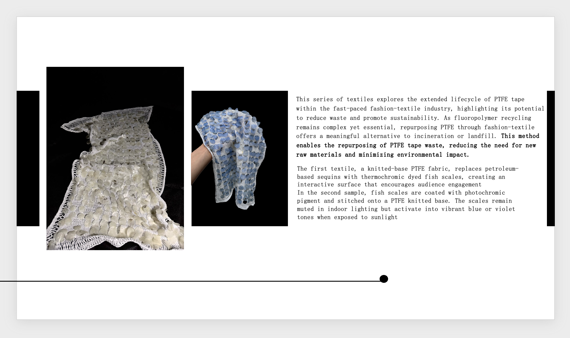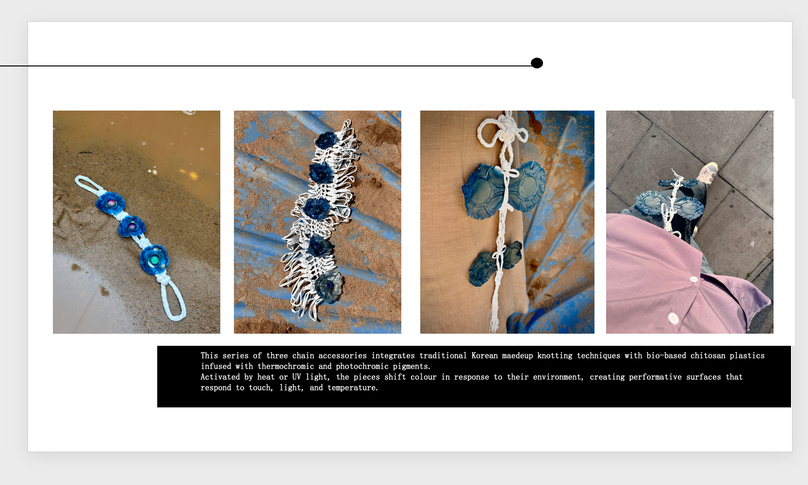 My Final Major Project, "What Do We Know About the (Un)known?", is a conceptual, sustainability-led textile exploration that investigates material agency through a posthumanist lens. Emerging from personal dislocations - solo travel in Korea and the rupture of my bathroom during renovation - the project frames the unknown not as absence, but as a generative condition where matter and meaning co-emerge. Working with fish scales and chitosan-based bioplastic (Korea) and PTFE tape (Bathroom), I transformed each material through casting, spinning, dyeing, pigment activation, and slow textile processes such as archival needlework and Korean knotting. These embodied methods foreground material responsiveness and challenge the subject–object binary. The resulting works position textiles as onto-epistemological sites - spaces where knowing and being arise through making - and invite a multisensory, open-ended encounter with the unknown. Sustainable practice becomes relational and speculative, with materials acting as co-constitutive agents in shaping knowledge and lived experience.