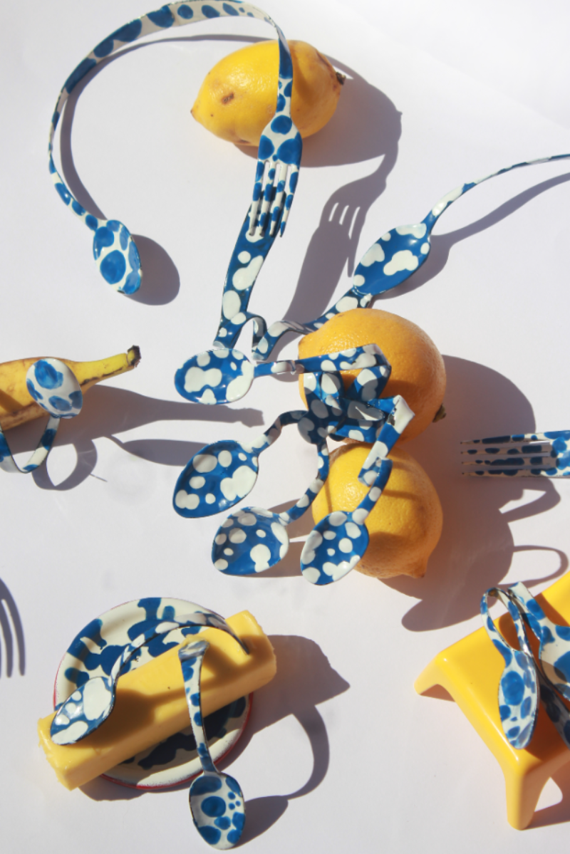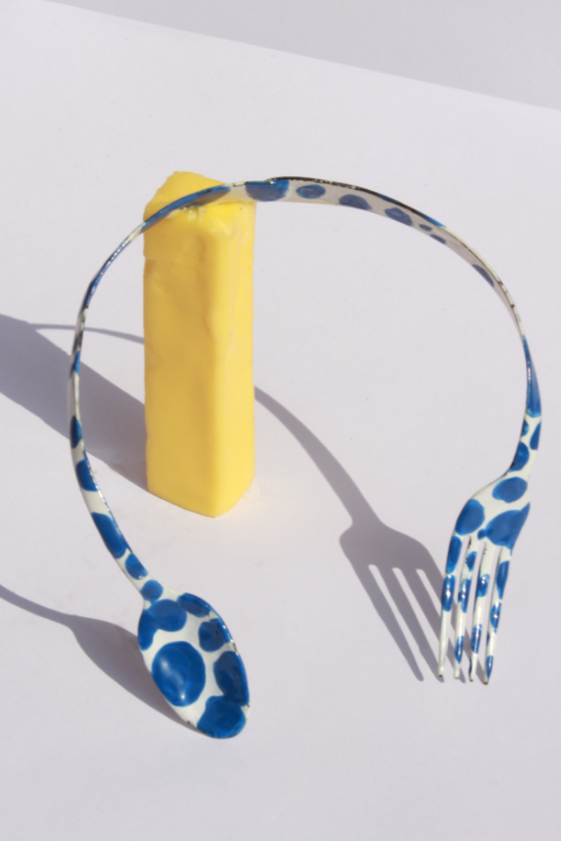 The kitchen has always been the heart of my home. When I was a child, one of my earliest rebellions was against table manners. These rules just didn't resonate with me. As I grew older and began studying Fashion, I became more mindful of my daily habits and the waste I was generating, including every disposable spoon and fork I threw away. That is how I began searching for eternity and found it in the beauty and endurance of enamel. I began experimenting with cutlery and turning them into jewelry pieces for mealtime. My work consistently explores the daily routines we find ourselves trapped in and the dullness they can create. For me, playfulness is a major source of joy, knowledge, and self-discovery.