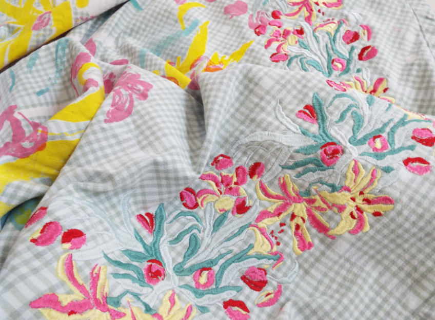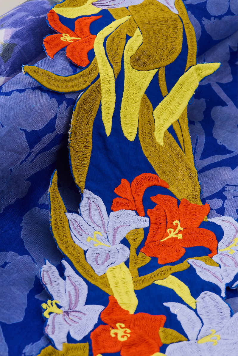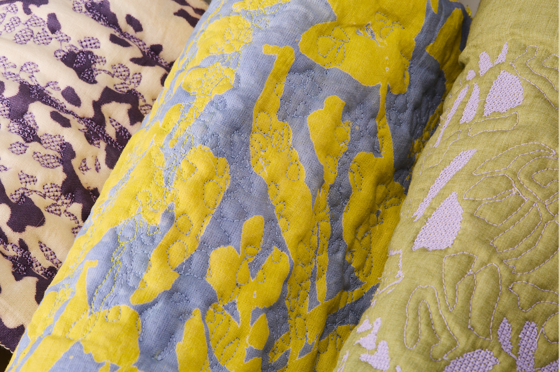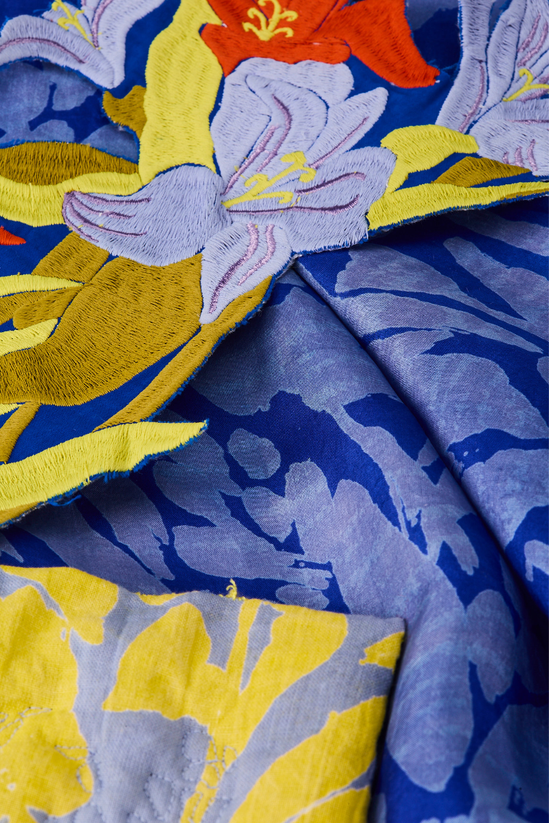 I am a Level 6 Textile Design student, speciallising in Print and embellishment. My painterly design style is highlighted throughout my prints which explore bold, bright and playful colour compositions. I enjoy pushing the boundaries of hand printing processes and experimenting to create innovative outcomes. I also work within embroidery and embellishment such as quilting and embroidered trims that accompany my prints within each collection.