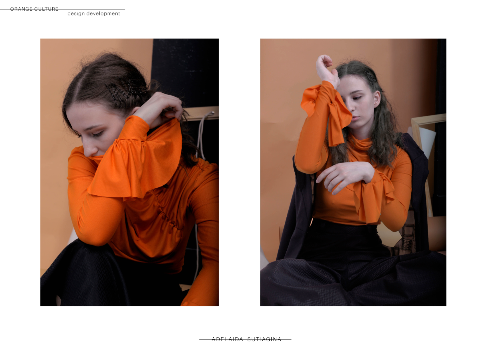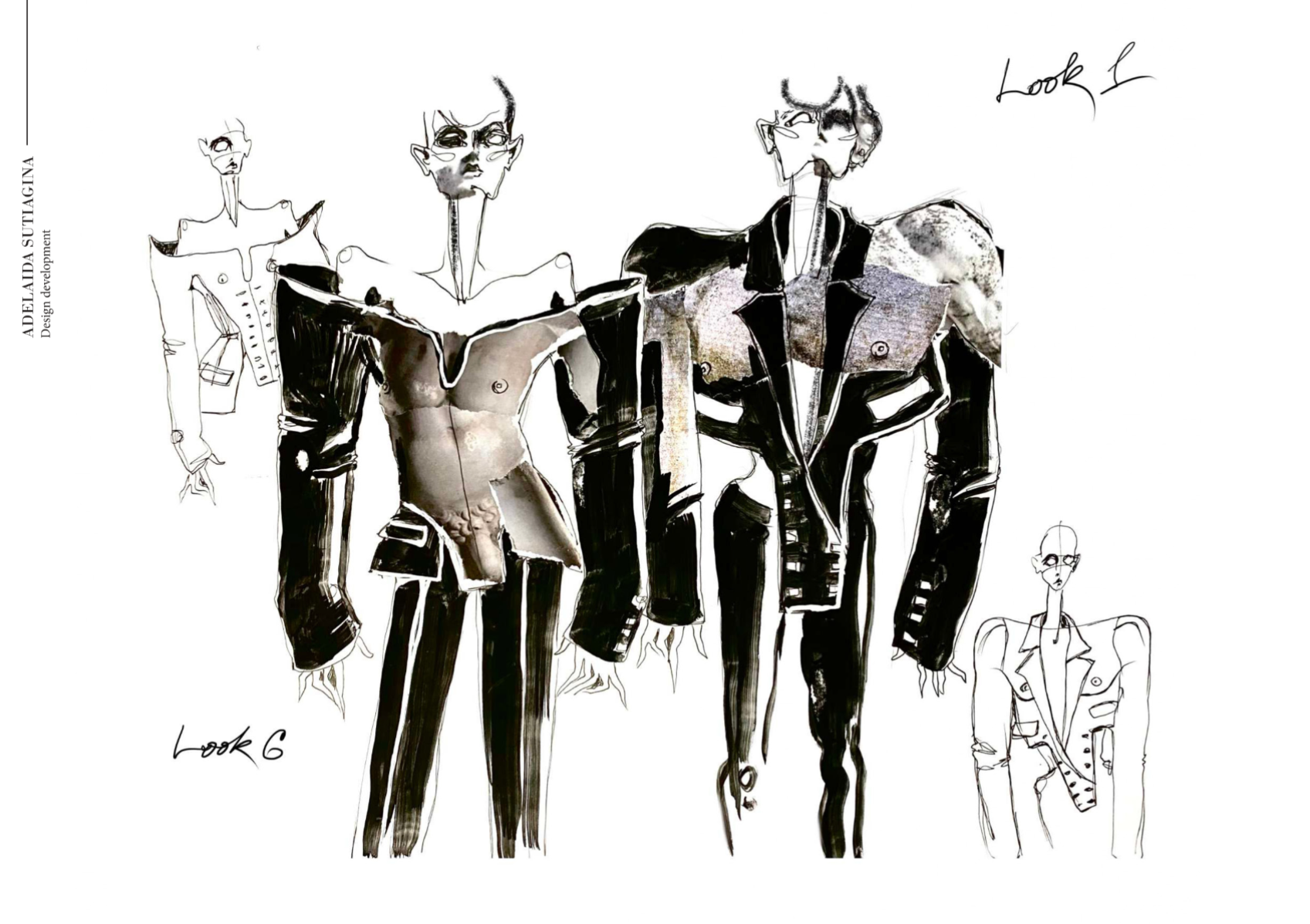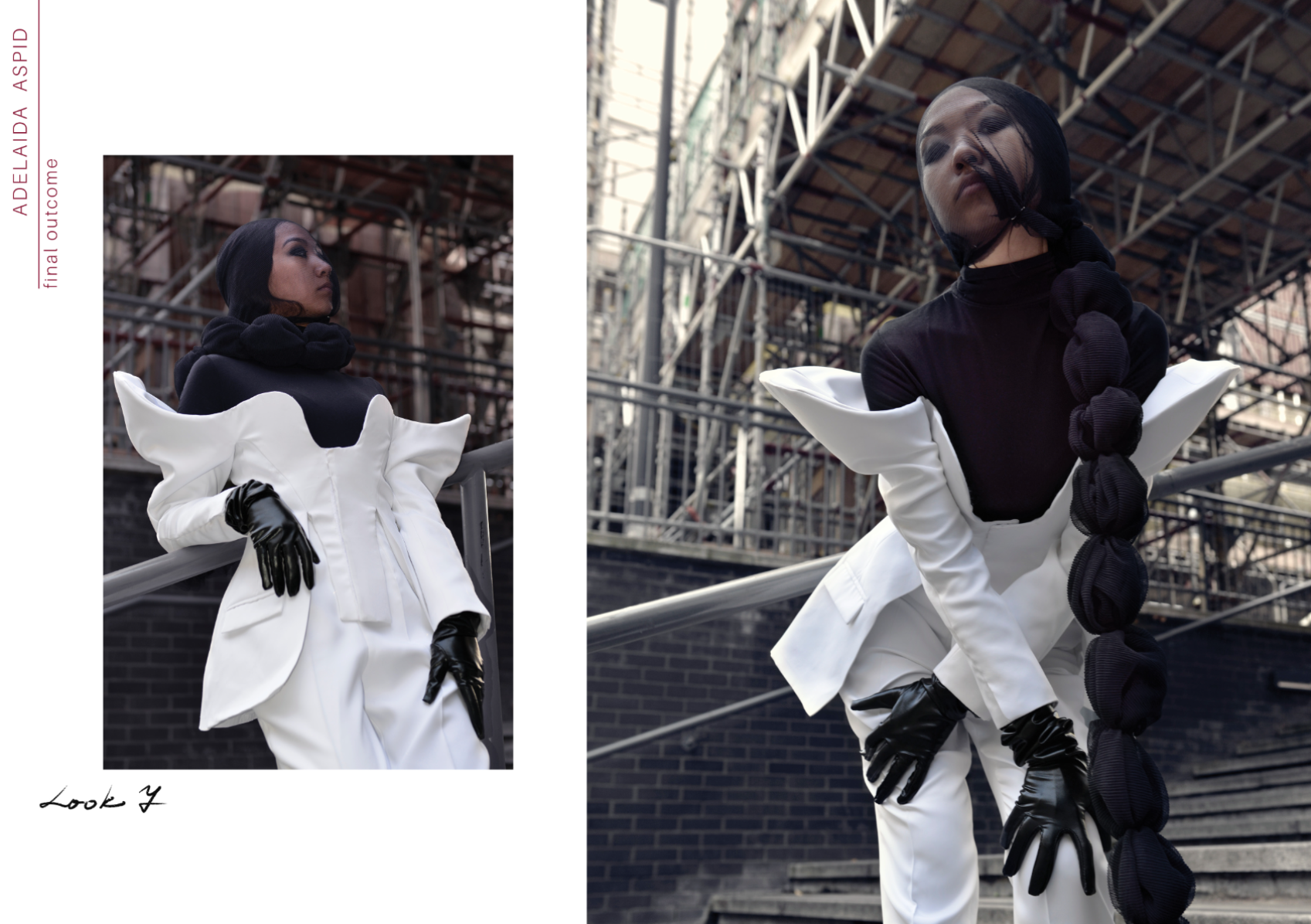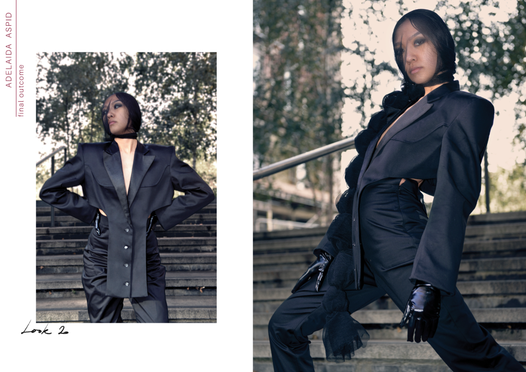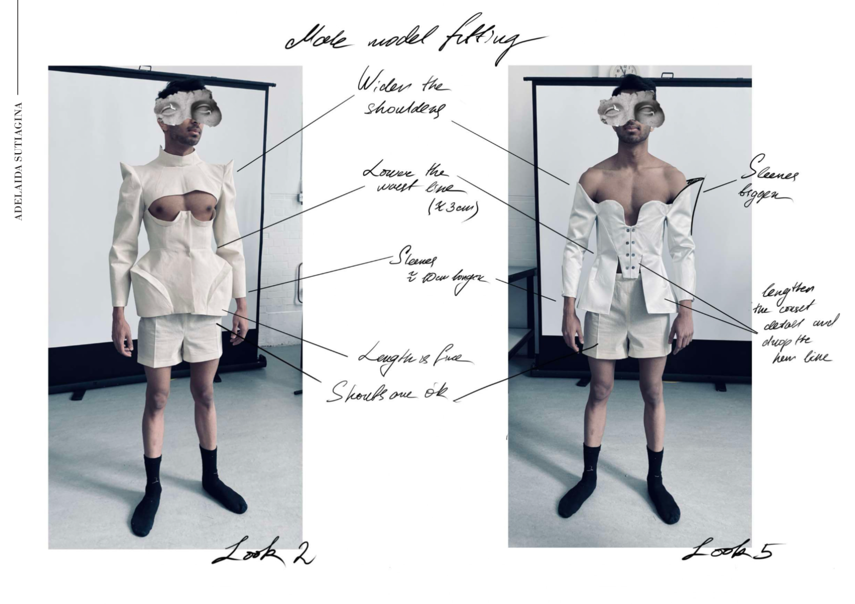 This project is based on the world of insects. Variety of chitin shell elements of bugs inspired silhouettes and details of the first felted line. The idea of lightweight and delicate insect’s wings hiding beneath them is referenced in the second. It manifests itself in the choice of fabric (translucent silk chiffon) and pattern of gathered parts of garments. The combination of the two represents a fragile balance, beauty between seemingly diametric poles underlying nature.