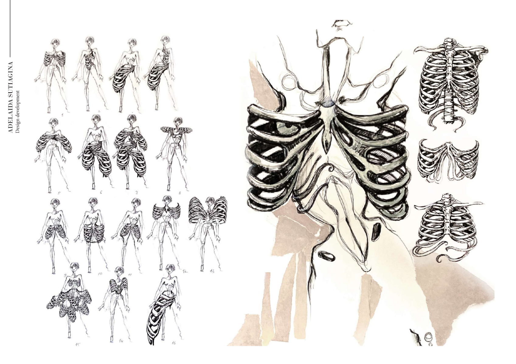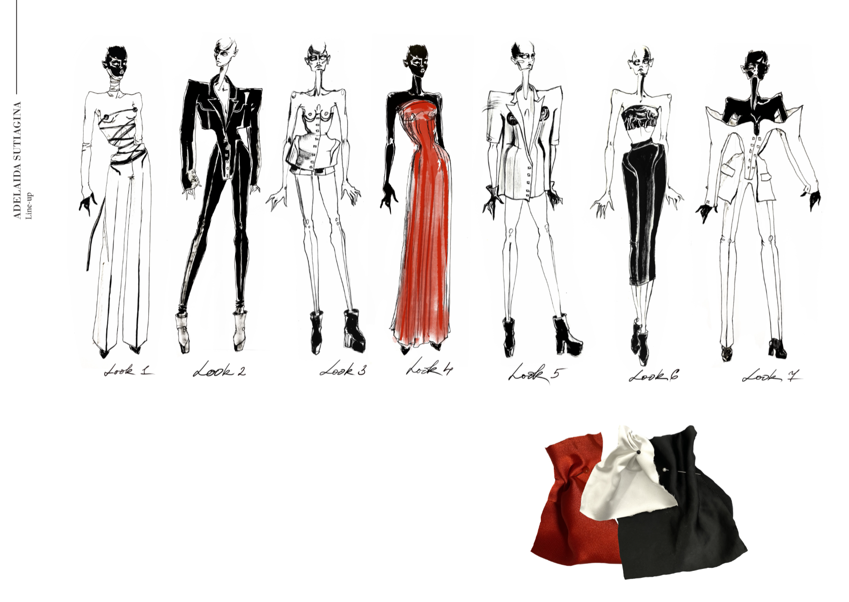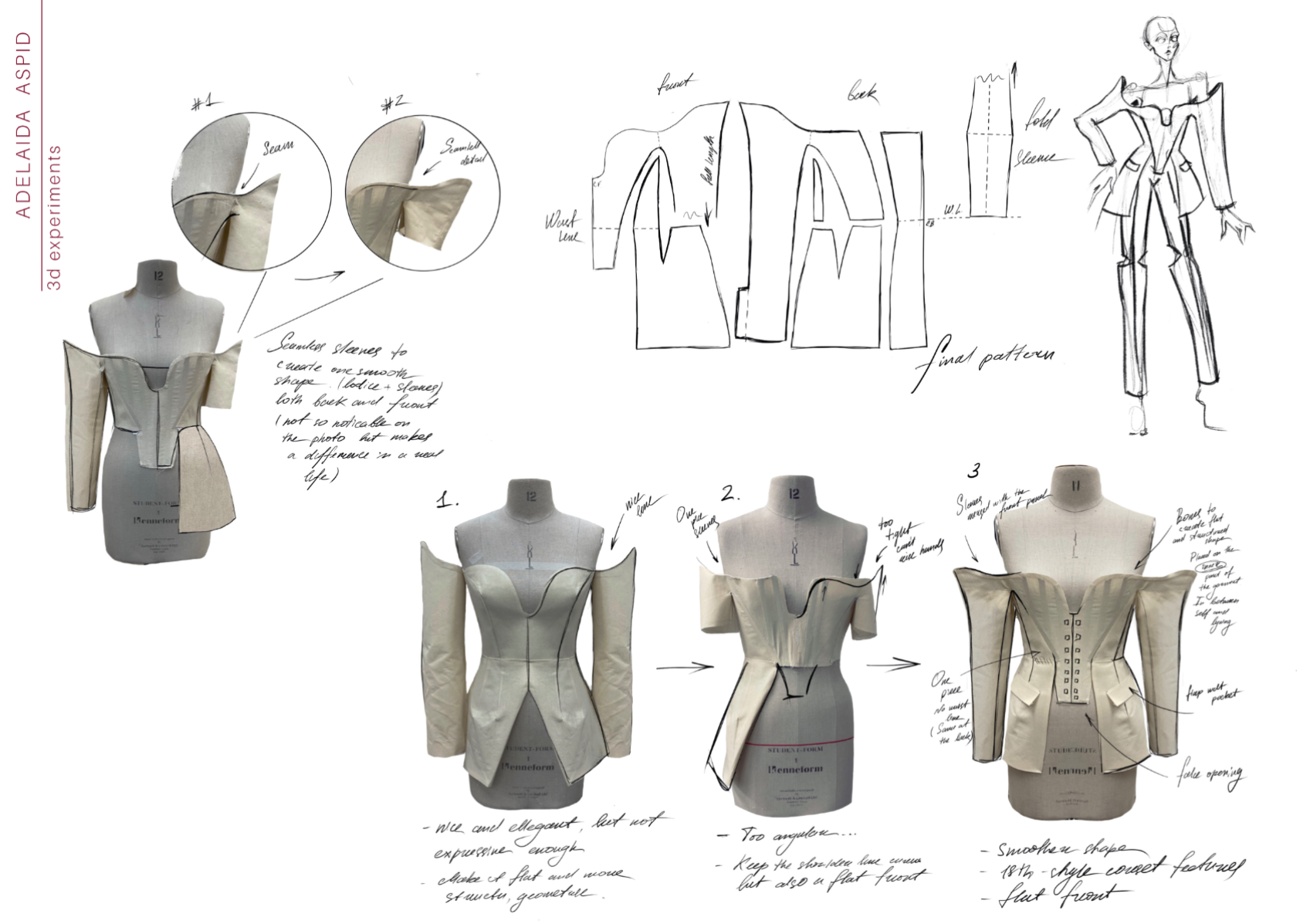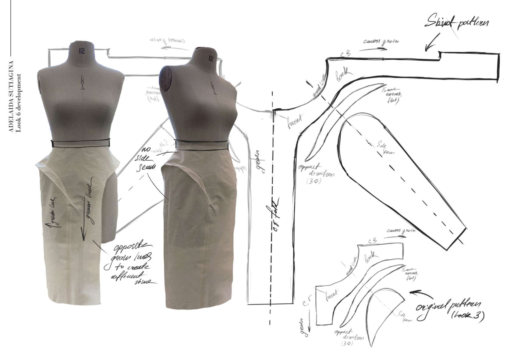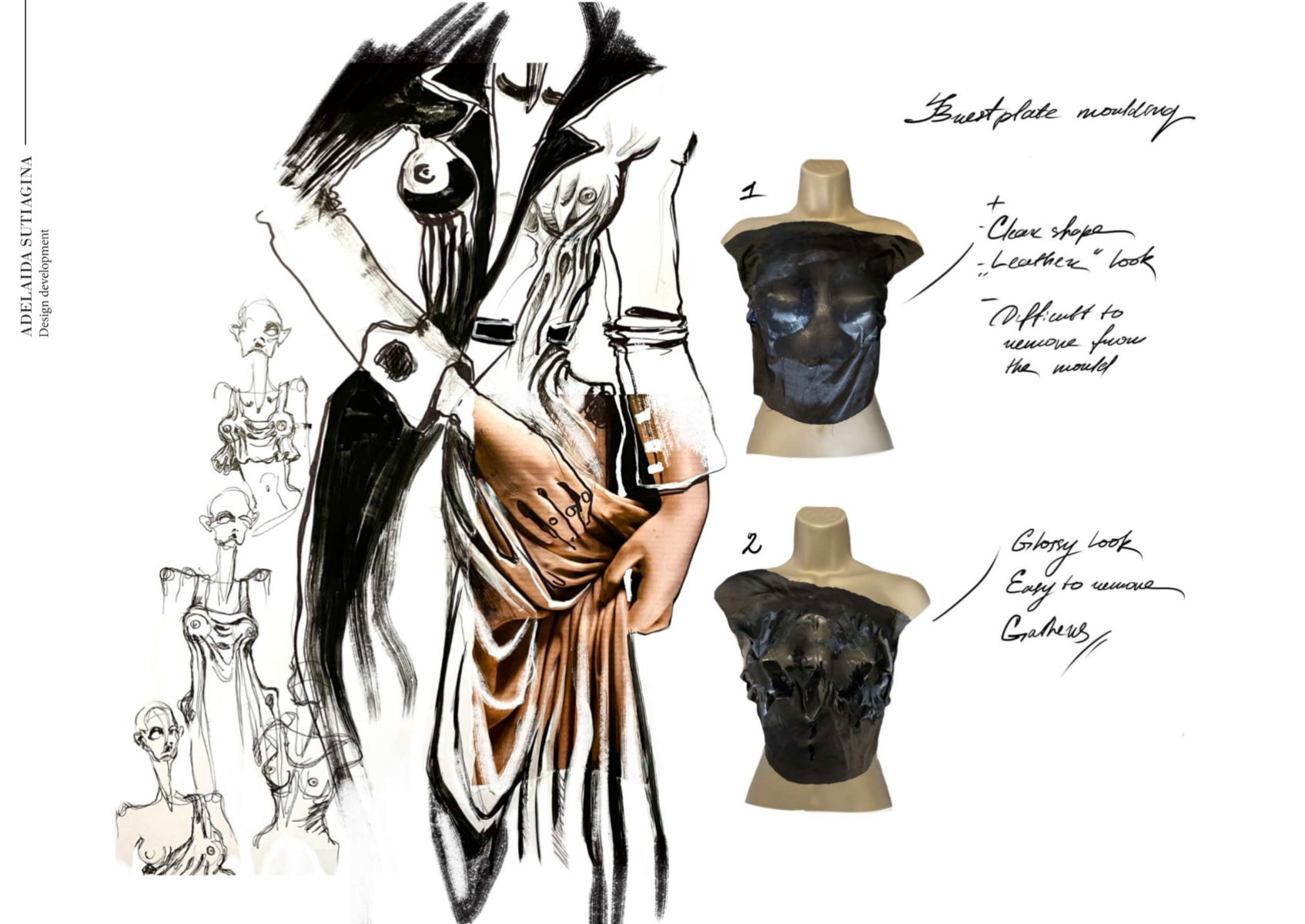 This project is based on the world of insects. Variety of chitin shell elements of bugs inspired silhouettes and details of the first felted line. The idea of lightweight and delicate insect’s wings hiding beneath them is referenced in the second. It manifests itself in the choice of fabric (translucent silk chiffon) and pattern of gathered parts of garments. The combination of the two represents a fragile balance, beauty between seemingly diametric poles underlying nature.