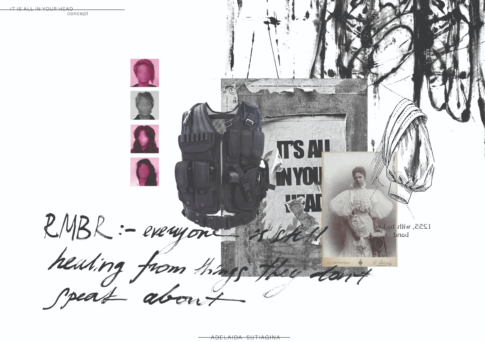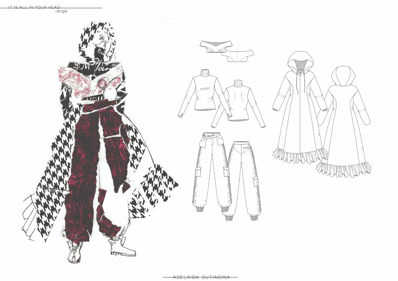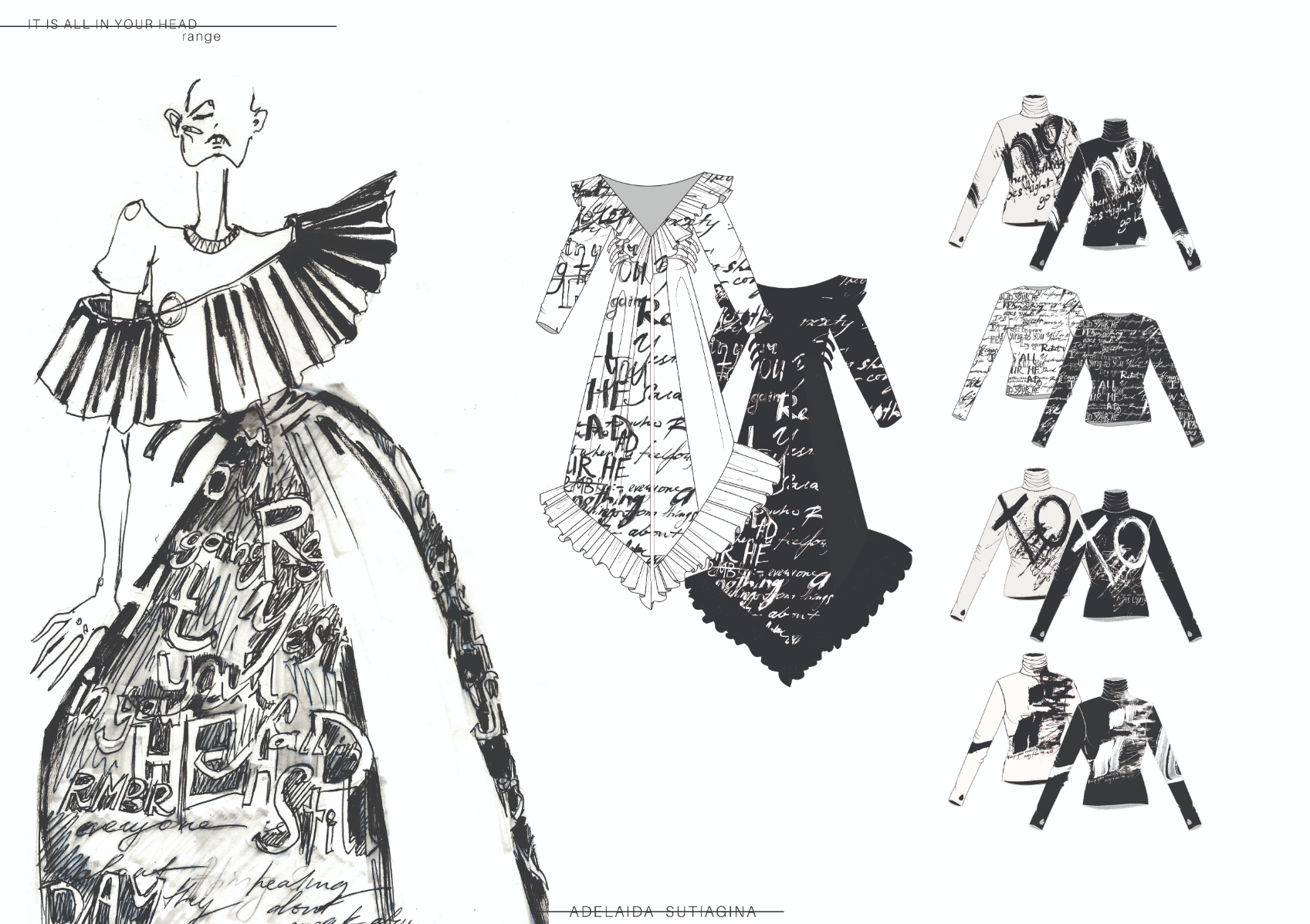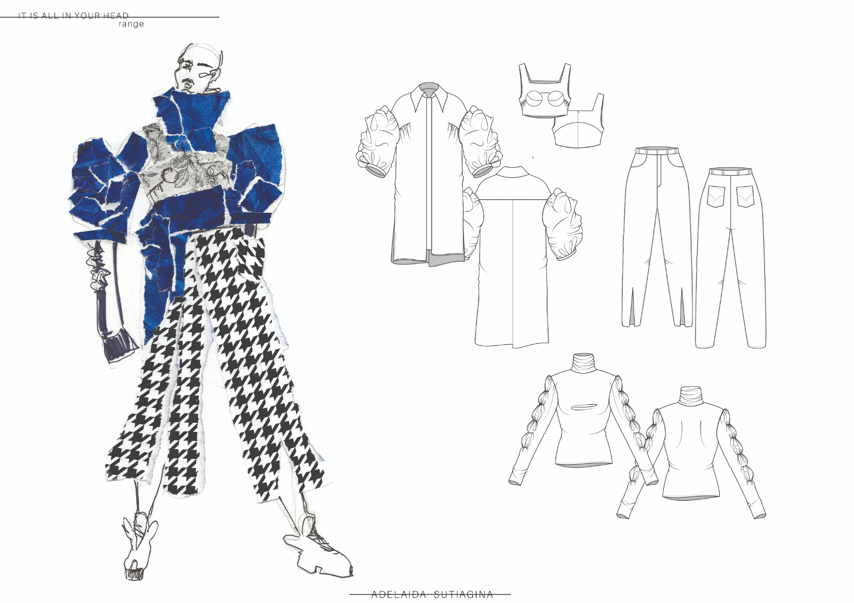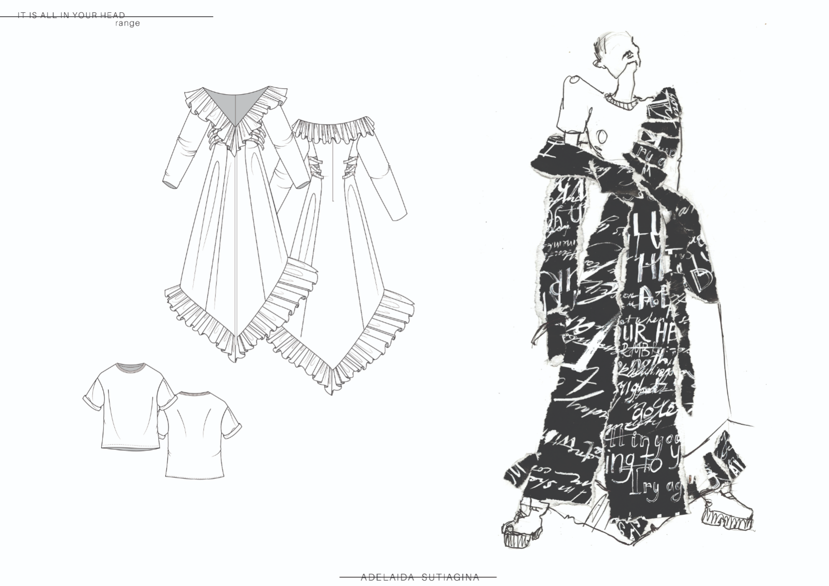 Social Responsibility is a key point of 21 century fashion sphere. Creation of a mini collection of five looks based on the unique aesthetic of a high street brand Urban Outfitters, using designs as a tool to draw attention to the chosen issues of modern society, was the task of the current project. Clinical Depression is a mood disorder that causes a persistent feeling of sadness and loss of interest. the current project aims at two things: to raise public awareness of the mental disorders issue, and to help individuals already struggling with it to overcome their condition and, when possible, ease some of their symptoms.