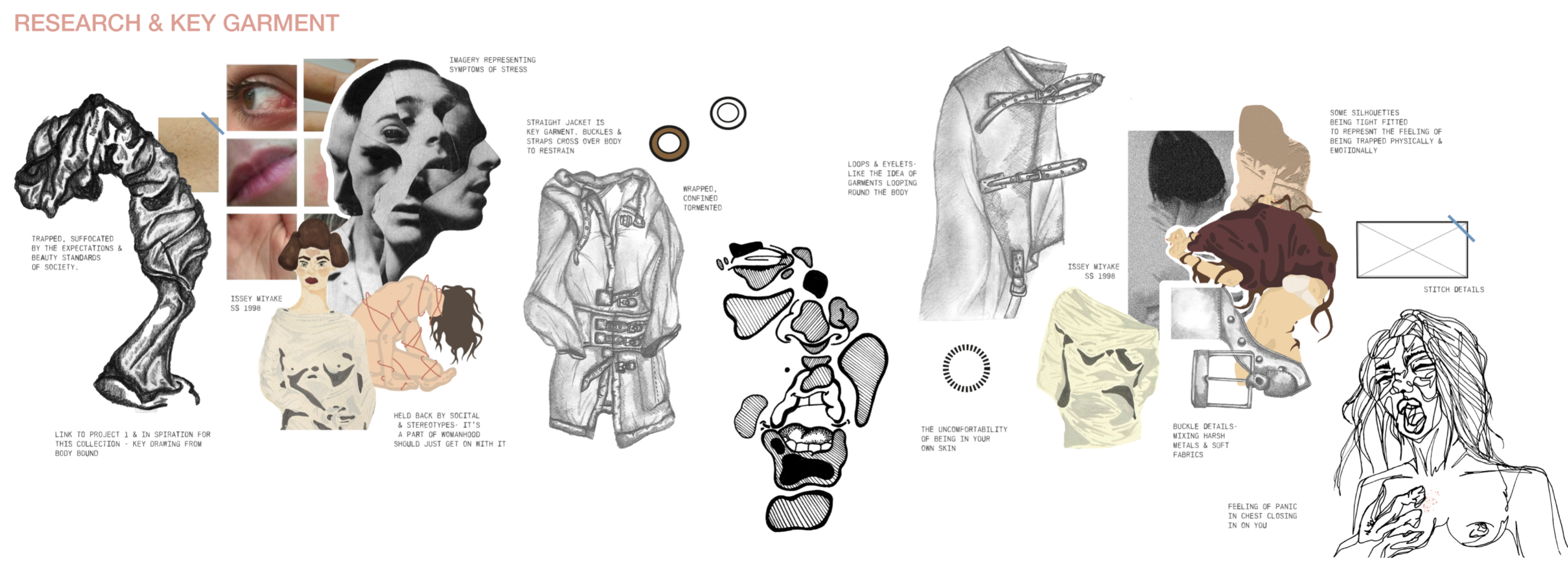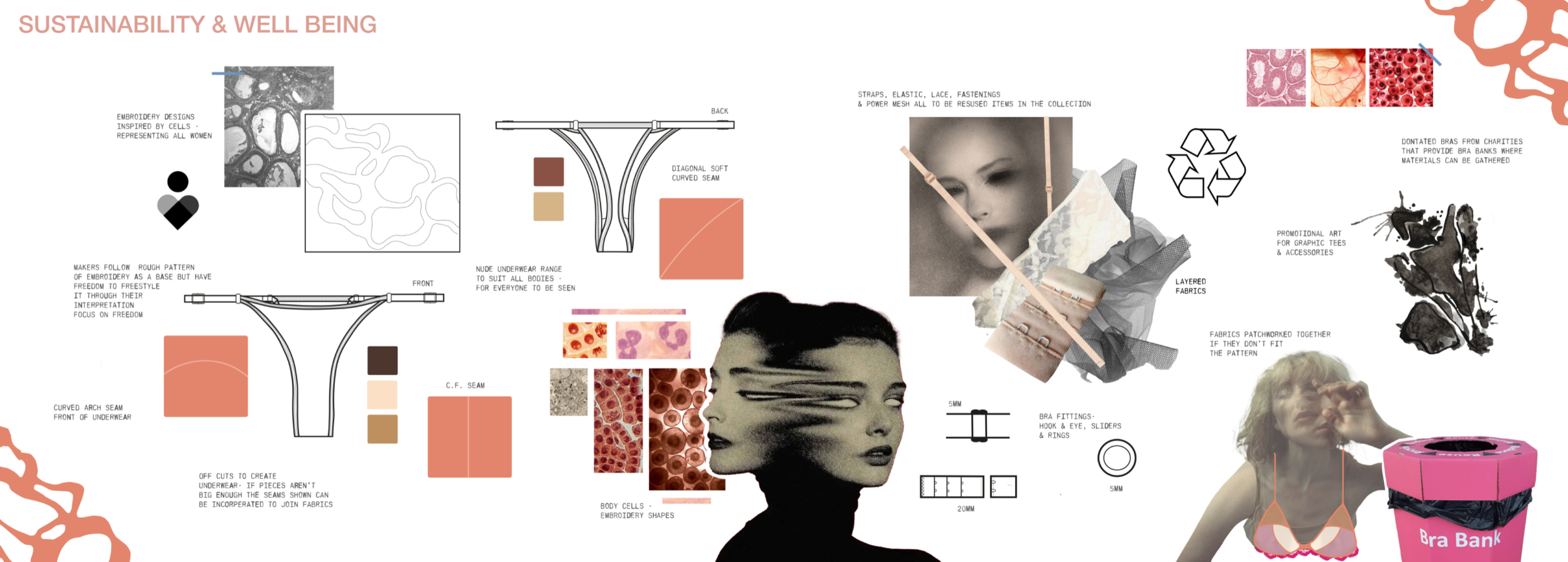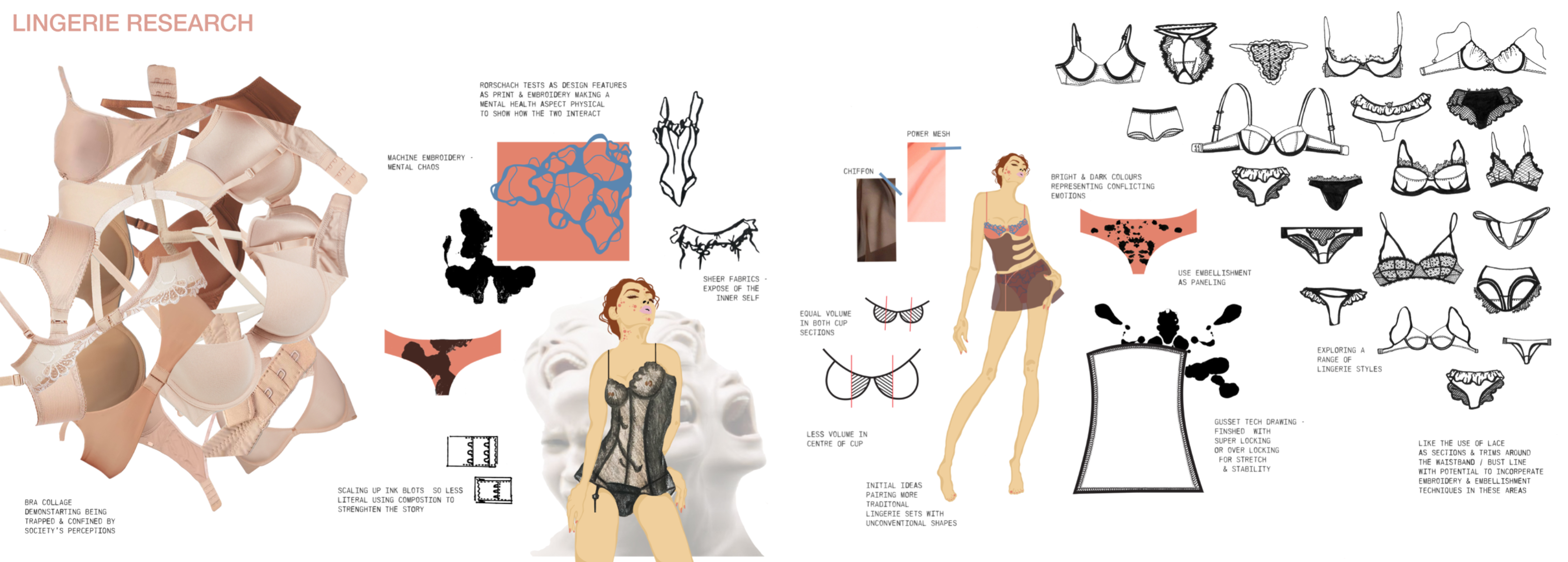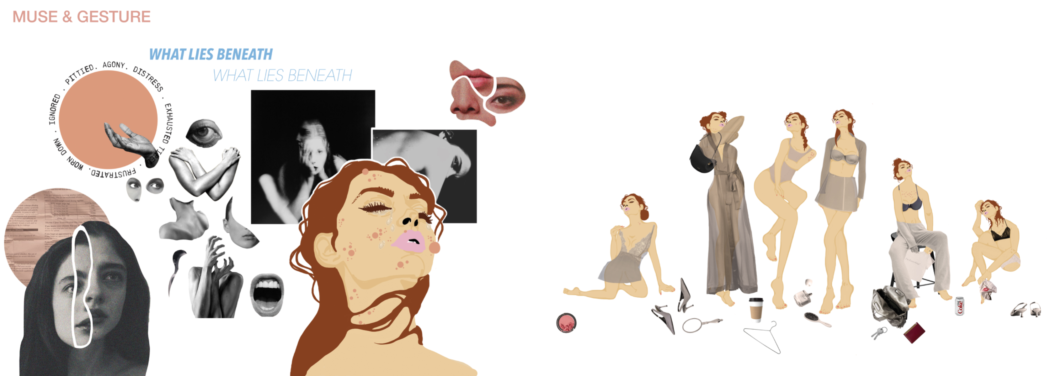 A celebration of the female body through a humanistic lens. Highlighting textures, marks and colours within skin while focusing on silhouette and form, using creative pattern cutting, abstract print, and fabric manipulation. Embracing imperfections, showcasing their inherent beauty as an ode to the experience of femininity.