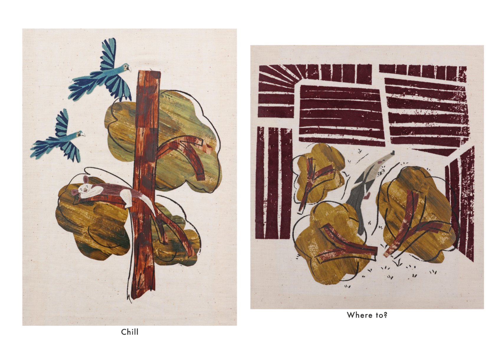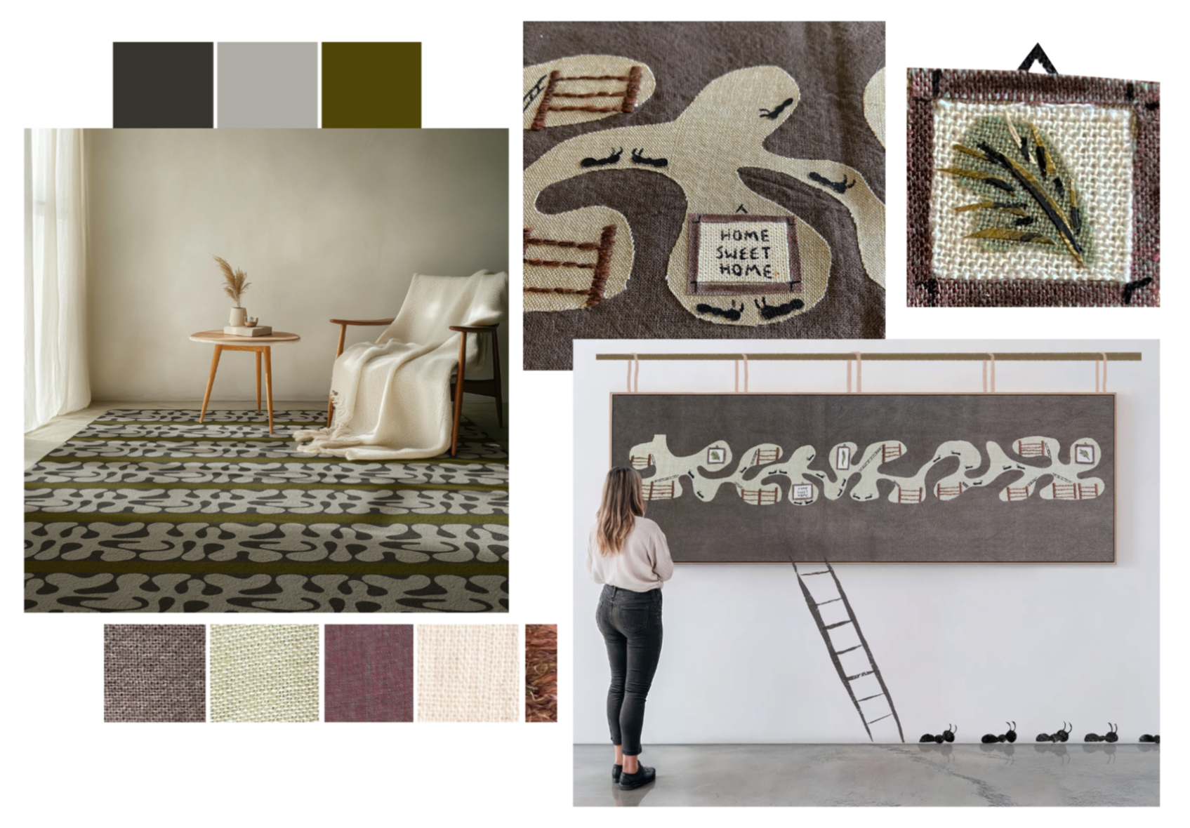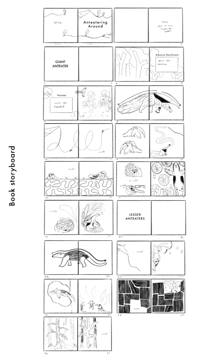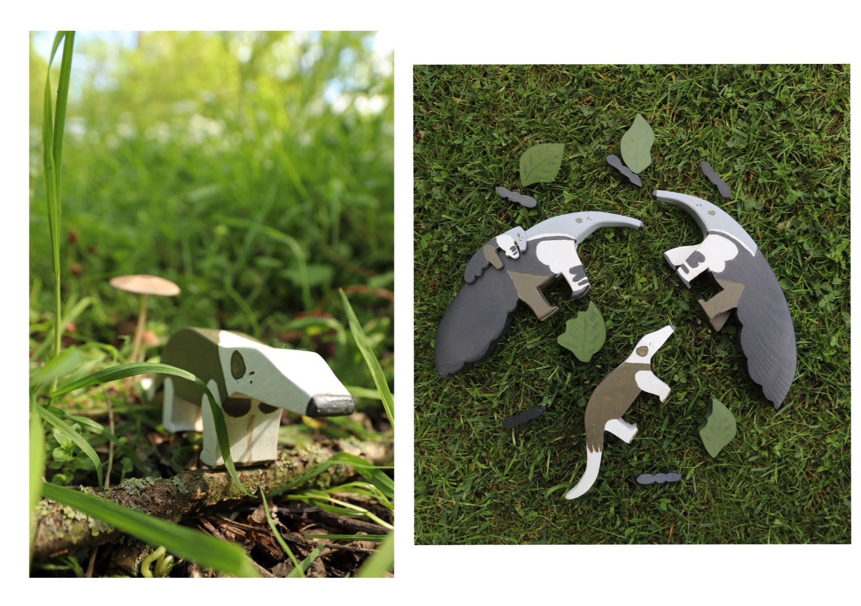 As a designer Amy has empathy for biodiversity and is inspired by the creatures that live among us. ‘Anteatering Around’ is a collection of illustrative, multi contextual pieces. They explore the personality and lives of Giant and Lesser Anteaters along with their habitats and threats. They encourage conversation, create interest and encourage education surrounding the declining species and habitat. This collection is in response to the intensification of our climate crisis and consumer demands of clean, sustainable products. People are also losing their connection with nature and the importance surrounding it. The collection has been carefully considered to encourage these aspects, using clean as possible methods, 100% clean materials, no dyes and include educational aspects. Through these means it meets both goal 13 (climate action) and 14 (life on land) of the United Nations Sustainable Development Goals. Amy is a multi-disciplinary designer with a unique illustrative style that evolves around storytelling. She has used a variety of hand techniques. Fabric and paper collage has been combined to create detailed, characterful motifs. Hand embroidery has been added for texture and screen printing has been applied to translate her sketchy digital mark making. 100% naturally dyed and undyed fabric and yarn has also been used, demonstrating to consumers what colours nature can produce. The materials and colours are also gender-neutral, which are not trend specific meaning the designs can be enjoyed year-round by everyone. ‘Anteatering Around’ is a multi-contextual collection, designed for both adults and kids allowing for close bonding and conversations. This specific collection contains artwork, fabric, toys and a reference book which are all for the home. Ultimately this project will be part of a bigger Amazon Rainforest collection where each animal, insect and bird is celebrated in the same manner.
