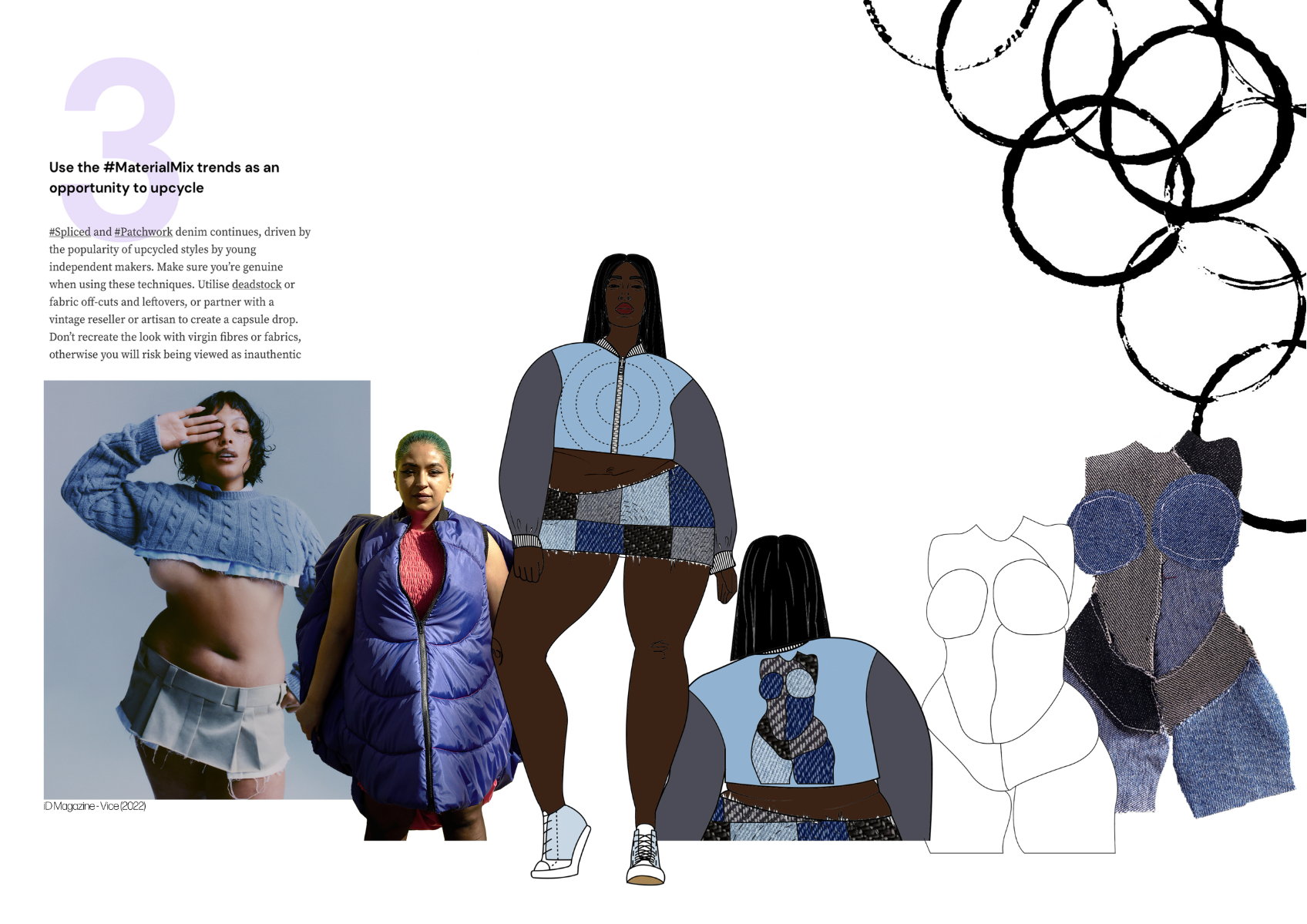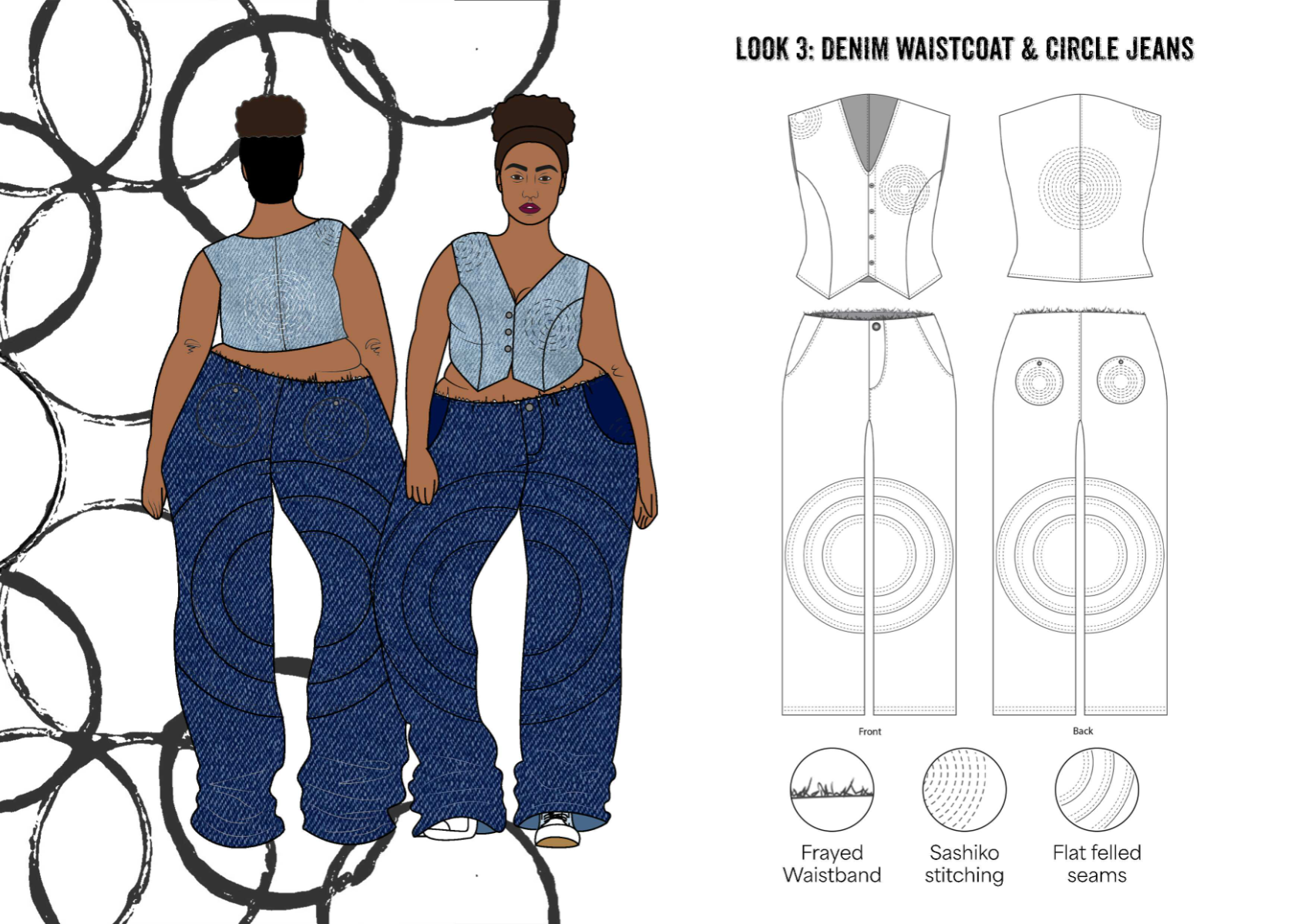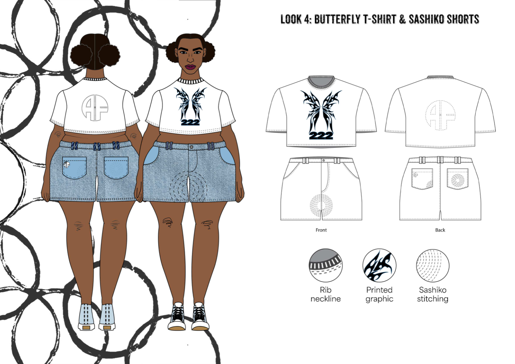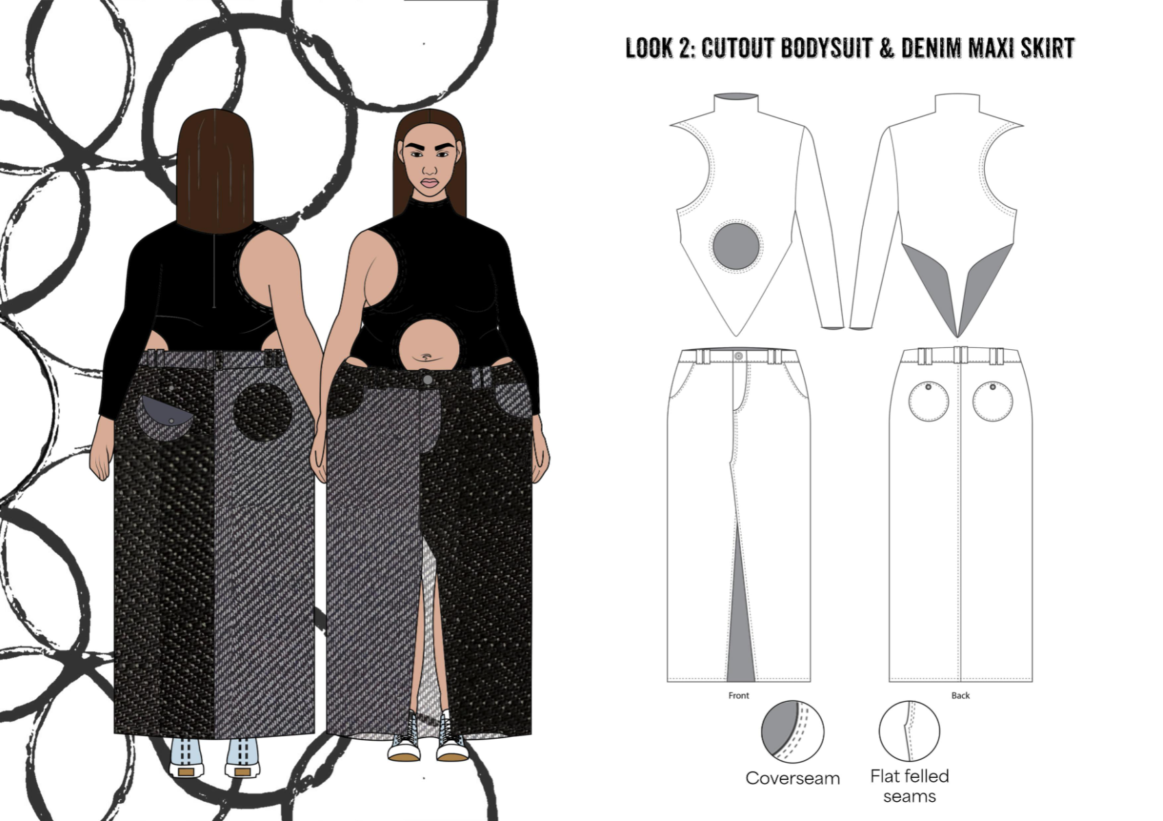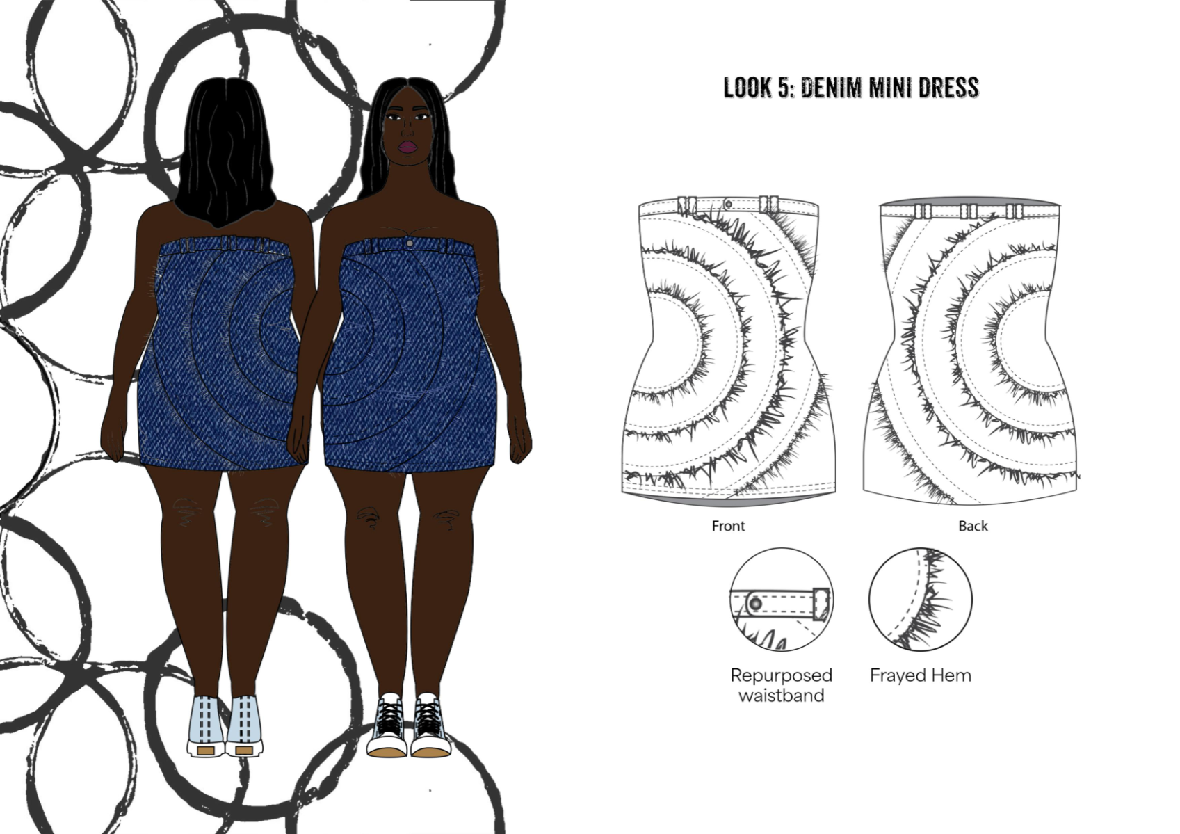 As an extension of my Final Major Project, I created a streetwear collection aimed towards plus-sized women & Gen-Z. My streetwear collection focuses on using upcycled denim in order to create a sustainable brand, which I believe is lacking in the current market, especially for plus-sized women.