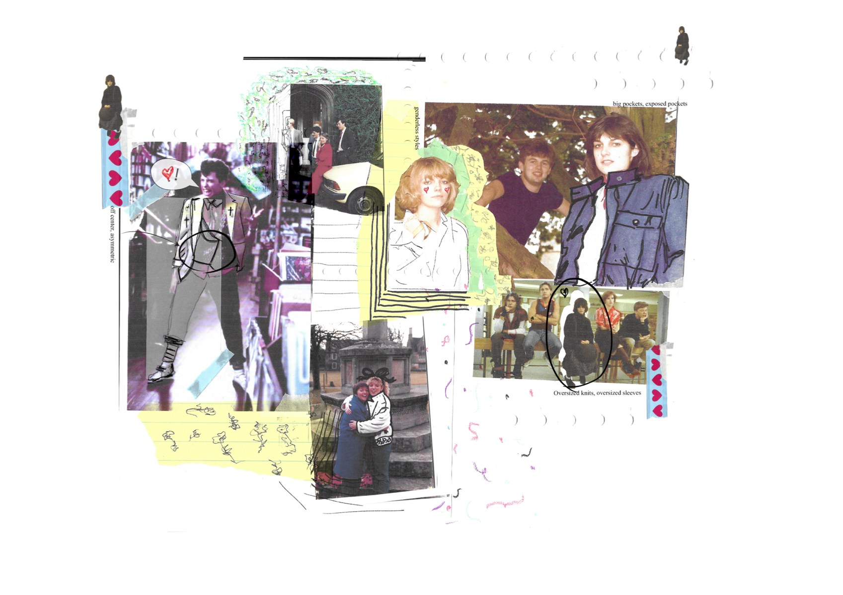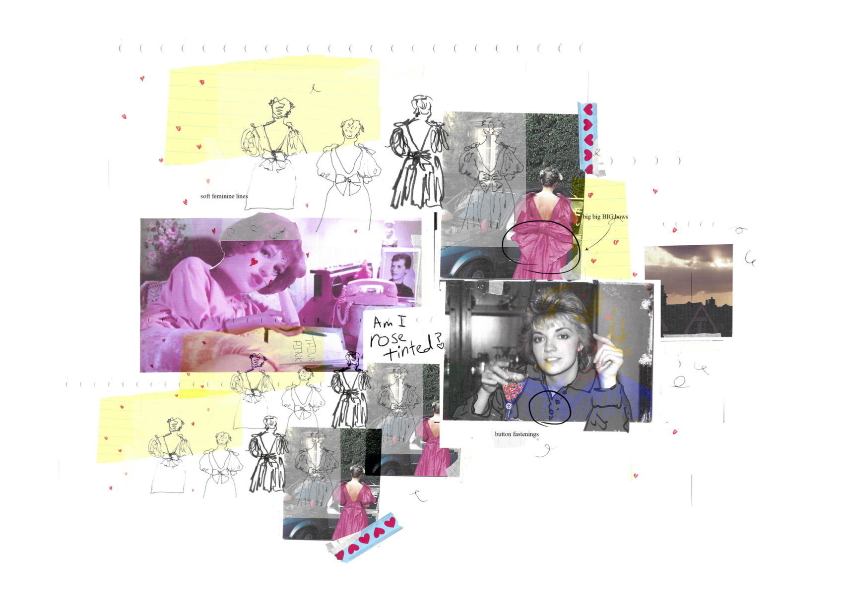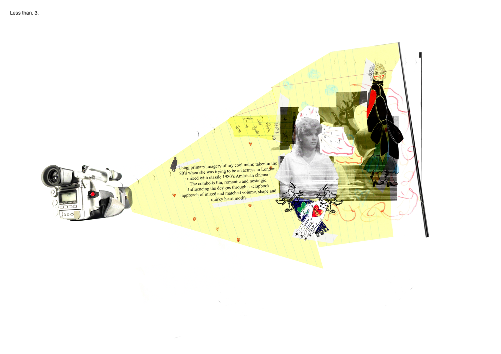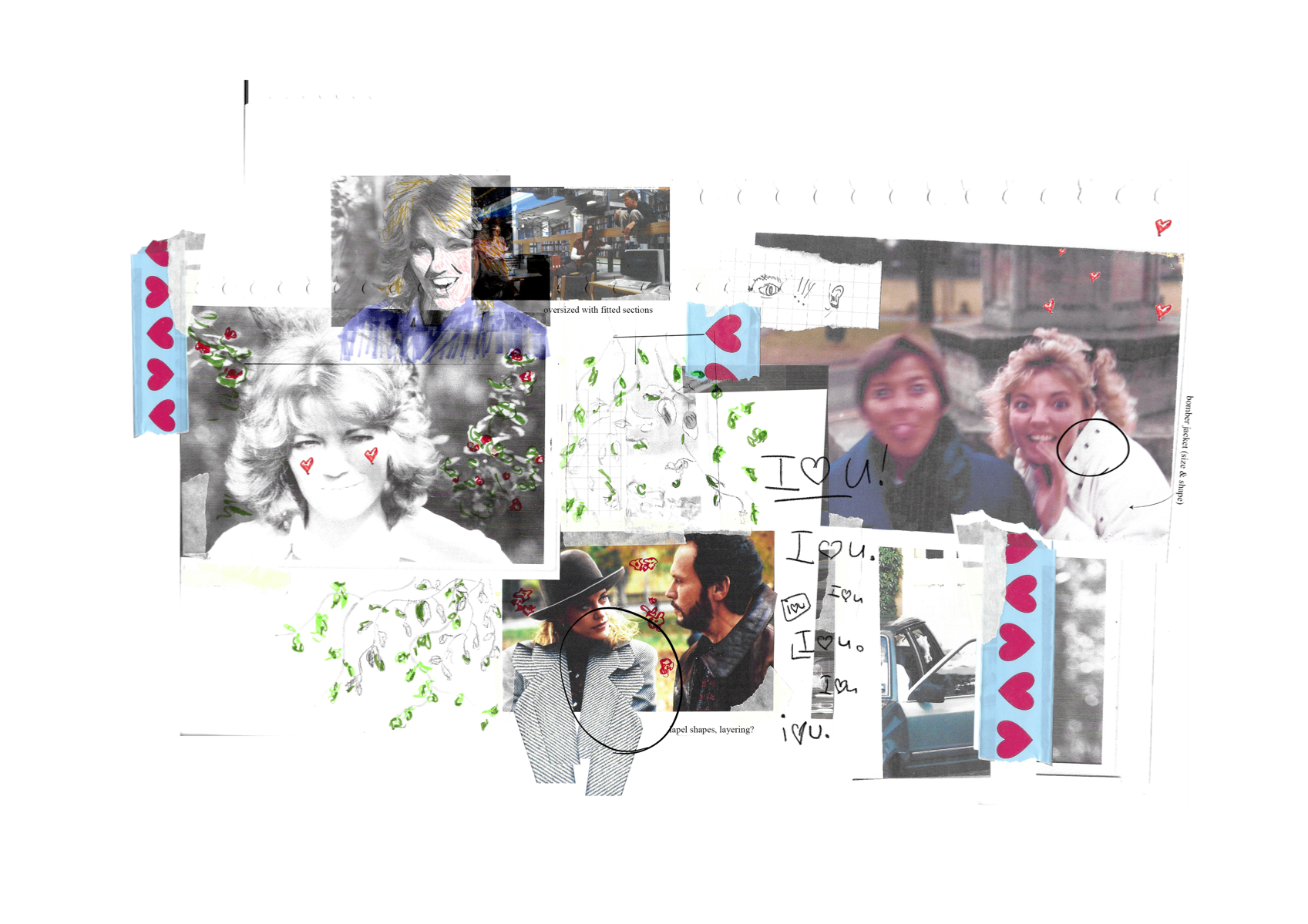 Using primary imagery of my cool mum; taken in the 80's when she was working as an actress in London mixed with classic 1980's American cinema. The combo is fun, romantic and nostalgic. Influencing the designs through a scrapbook approach of mixed and matched volume, shape and quirky heart motifs.