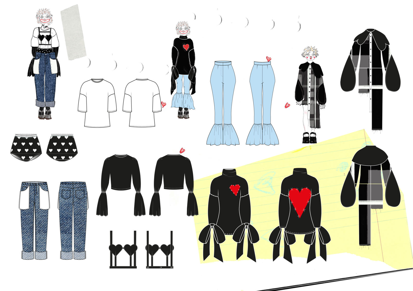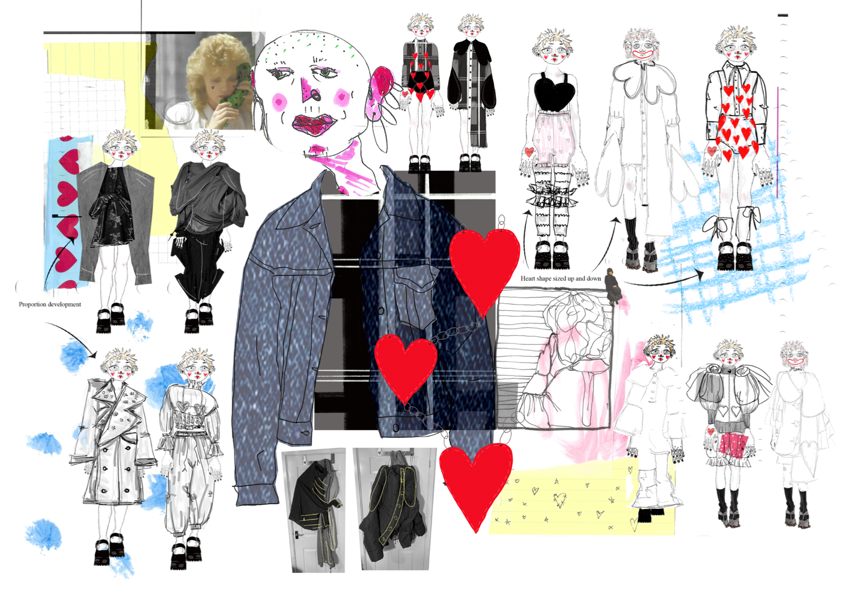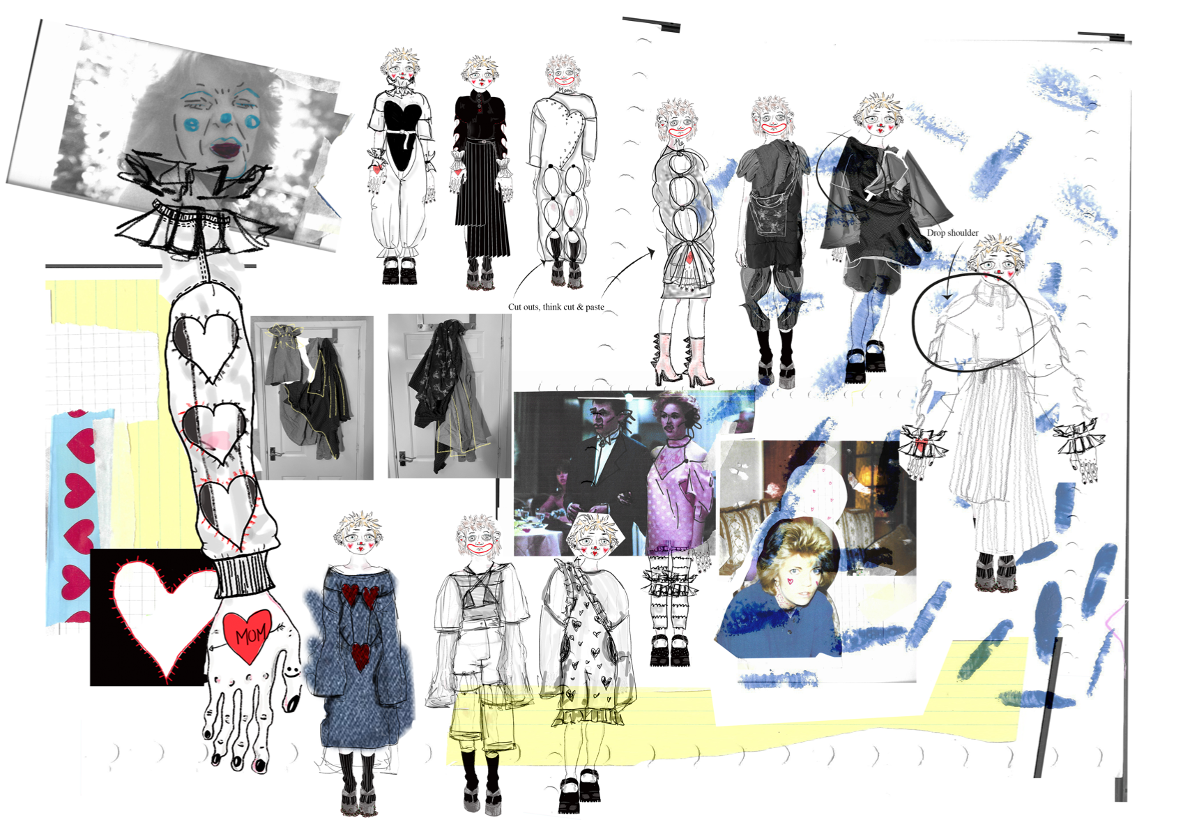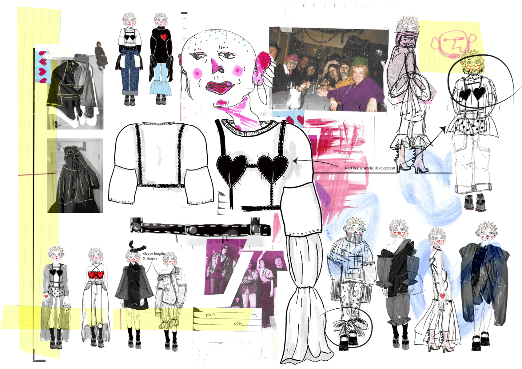 Using primary imagery of my cool mum; taken in the 80's when she was working as an actress in London mixed with classic 1980's American cinema. The combo is fun, romantic and nostalgic. Influencing the designs through a scrapbook approach of mixed and matched volume, shape and quirky heart motifs.
