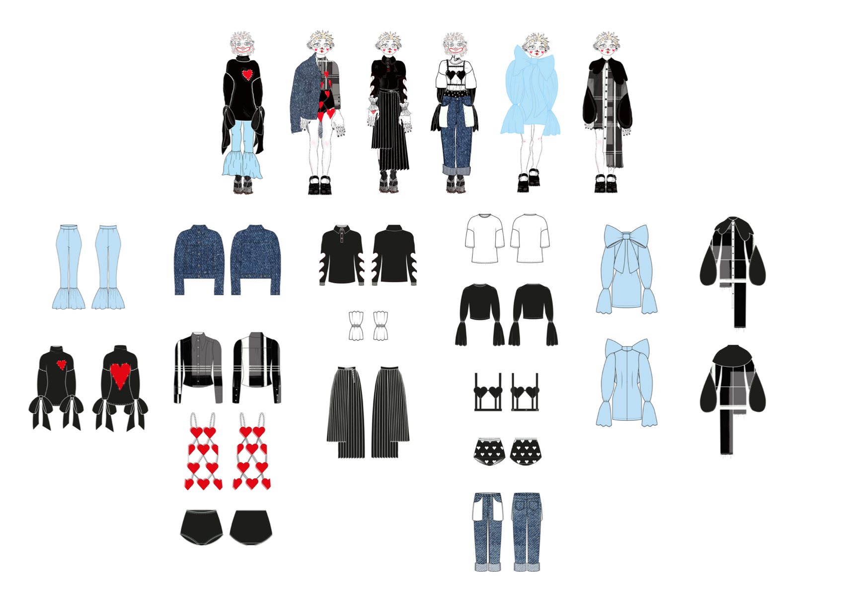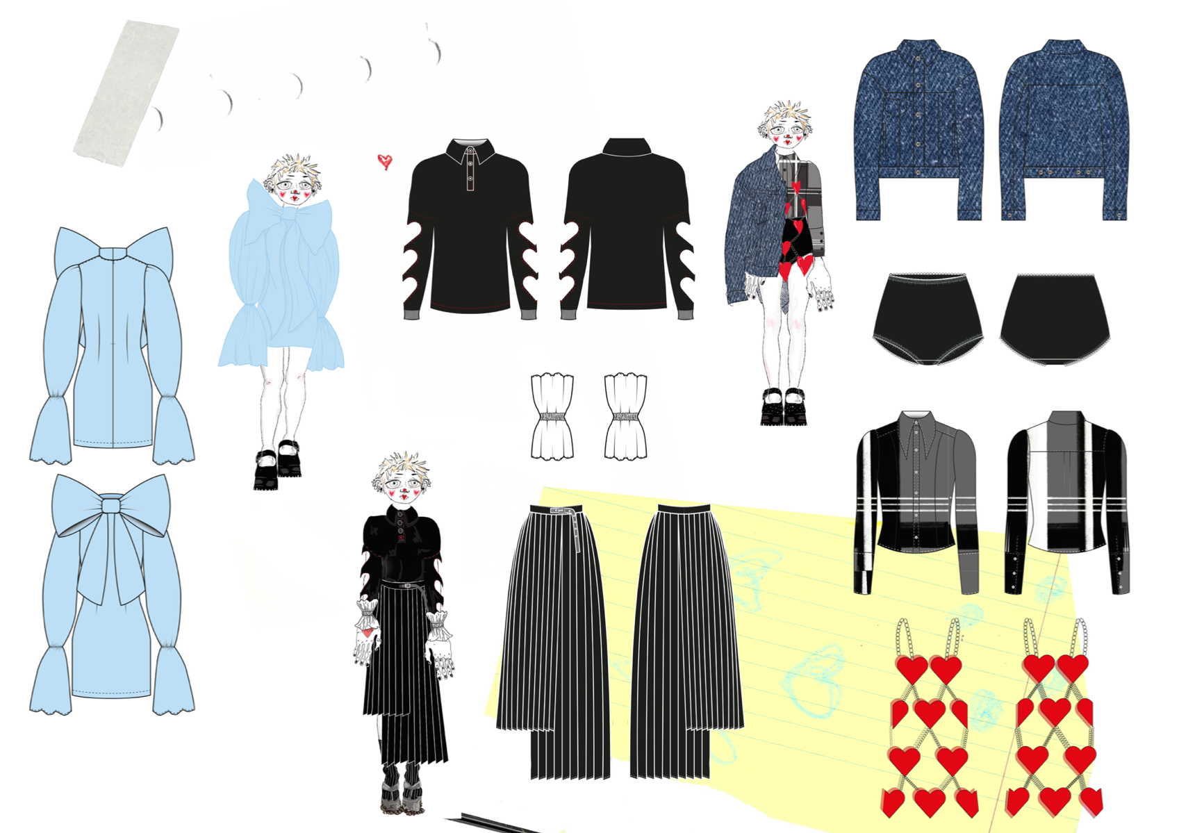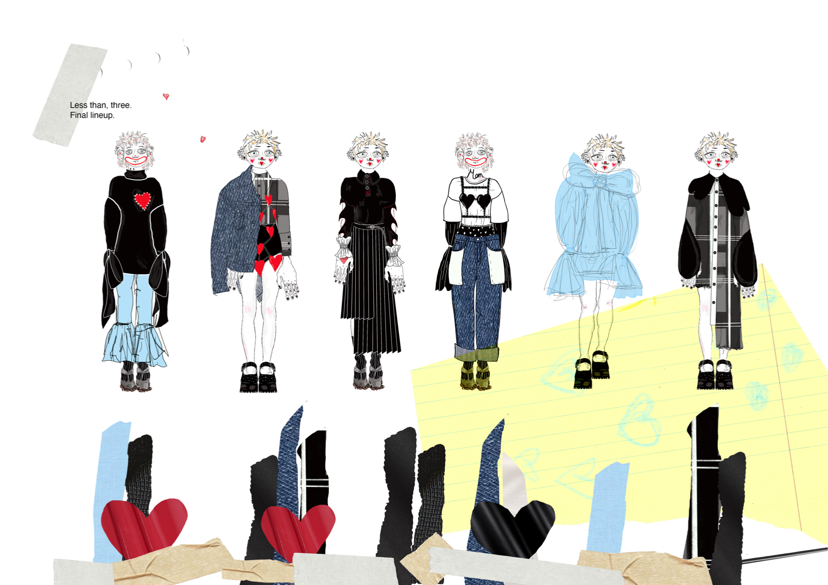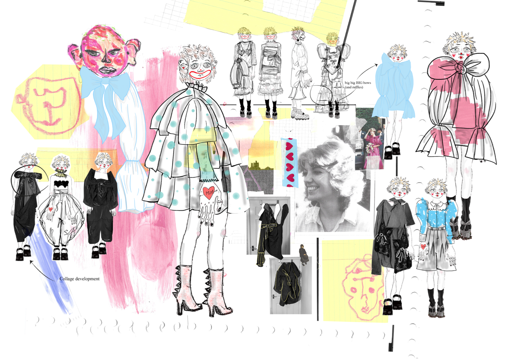 Using primary imagery of my cool mum; taken in the 80's when she was working as an actress in London mixed with classic 1980's American cinema. The combo is fun, romantic and nostalgic. Influencing the designs through a scrapbook approach of mixed and matched volume, shape and quirky heart motifs.