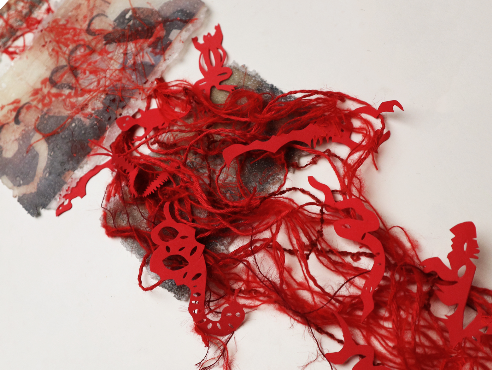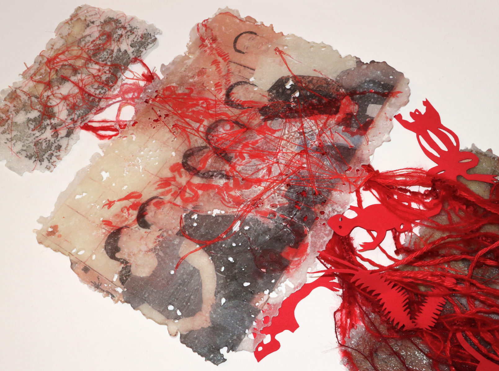 Bad Blood questions family identity and blood ties. In China, home and family are often blurred, but for me this home means horror and hidden pain. Using pâte de verre, I create thin, fragile glass sheets—fuzzy, hole-filled, like my memories. By varying temperatures, grains, and adding materials, I evoke impressions of softness, burning, or stitched scars. Needles and threads pierce holes, violent yet binding, representing blood ties. Ceramic pigments form blurred patterns of the five poisons: toad, centipede, scorpion, gecko, snake — symbols of toxic, alienated kinship. I reveal trauma with playful, sarcastic resistance.