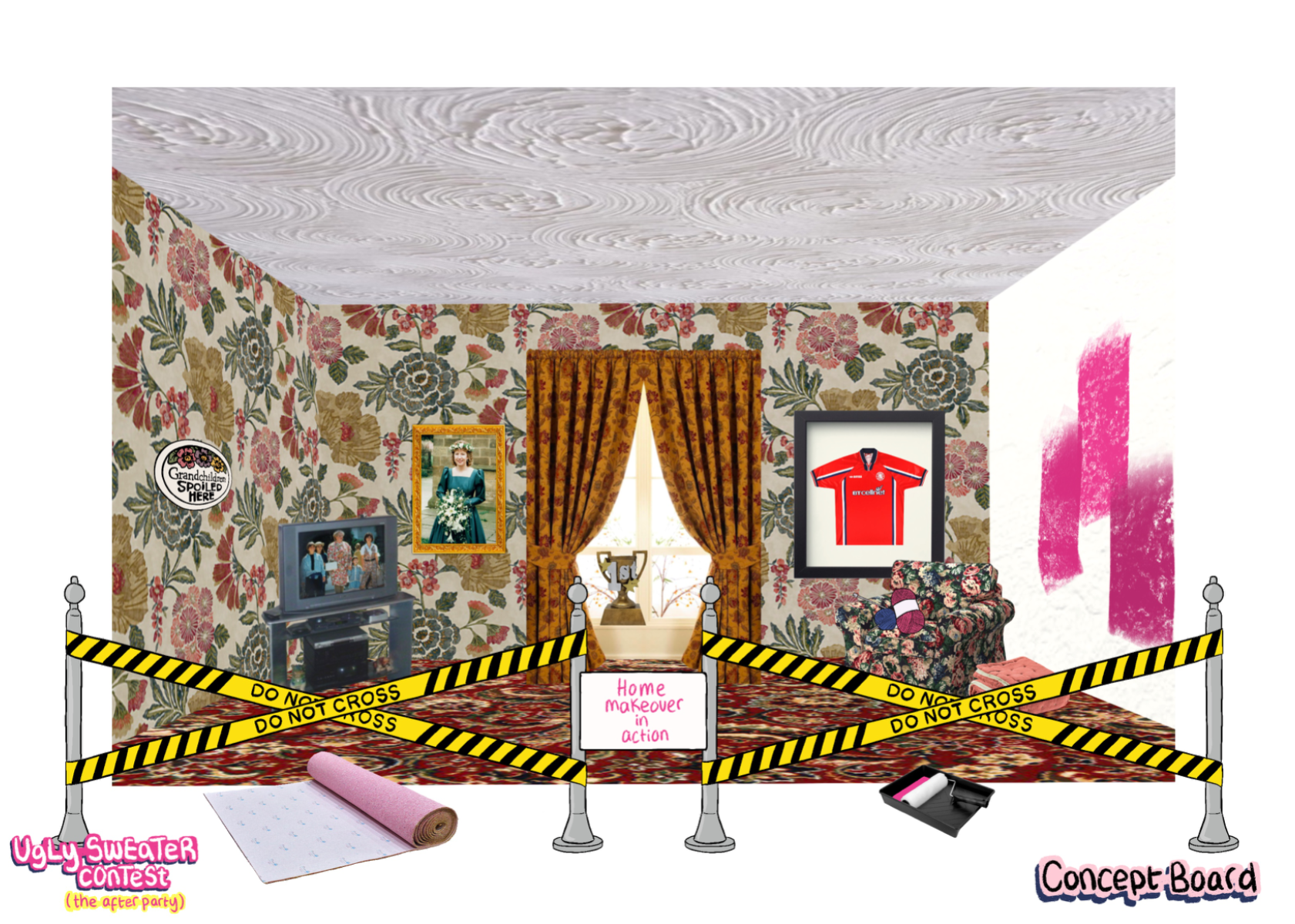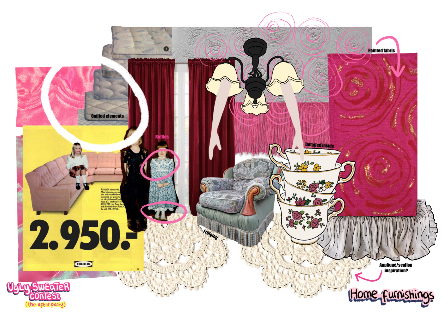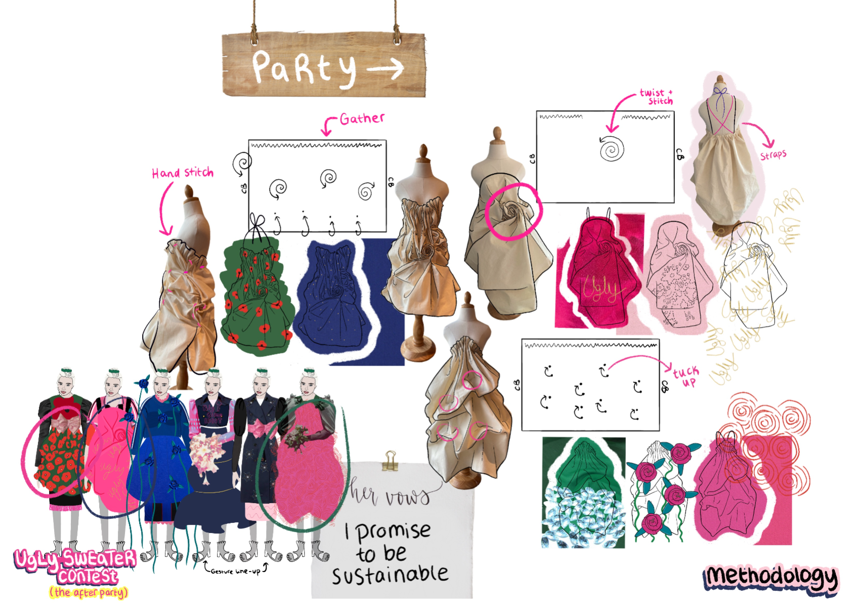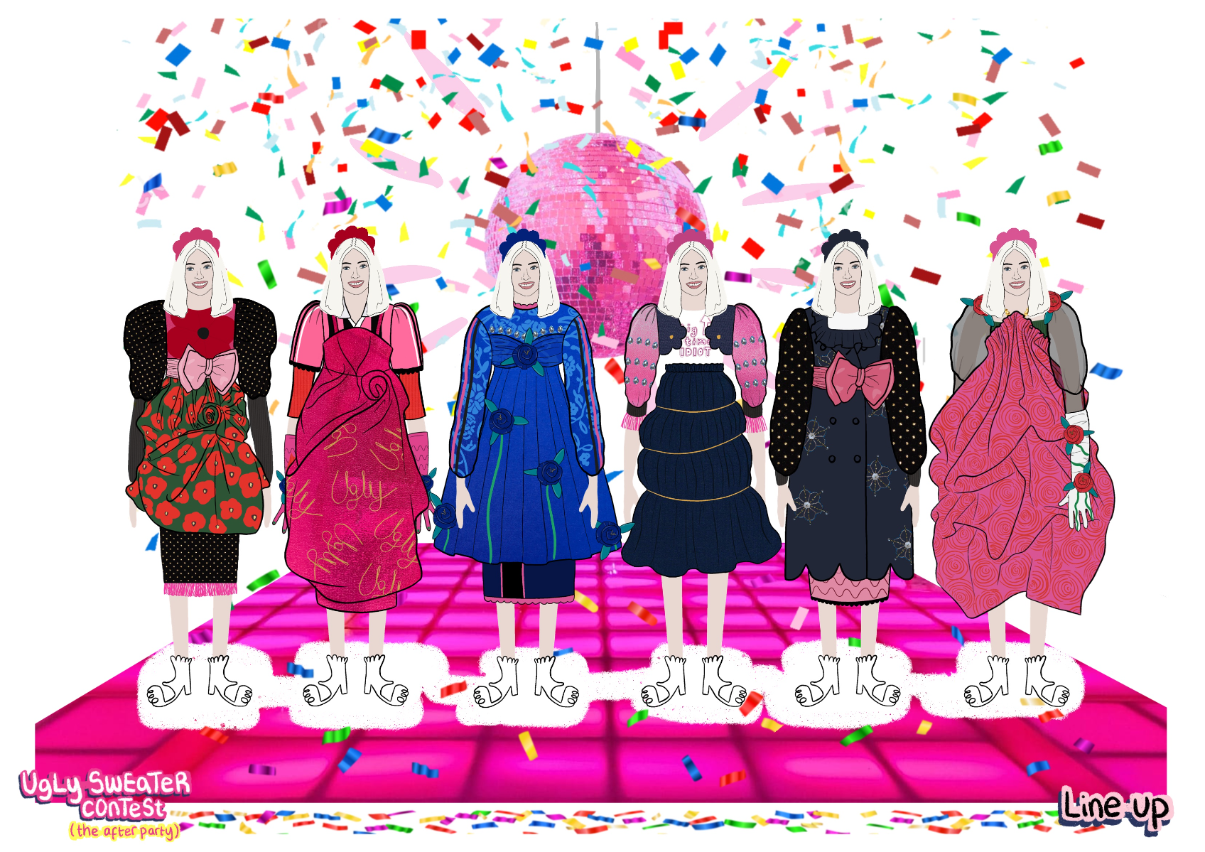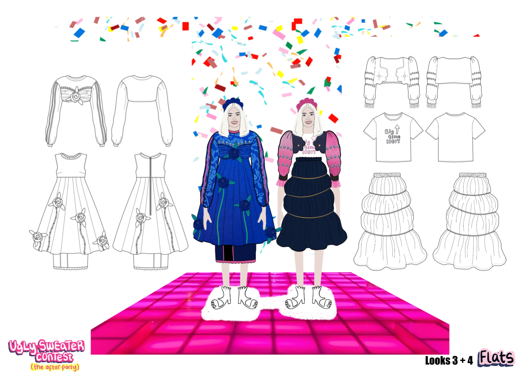‘Ugly Sweater Contest’ (the after party)' is an AW22 womenswear collection, ultimately inspired by 90s elements, such as bridesmaids dresses, home furnishings, and football shirts. This collection takes 'ugly elements', such as OTT sweaters and clashing florals, and transforms them into 'after party' ready looks, suitable for girls who love to stand out!