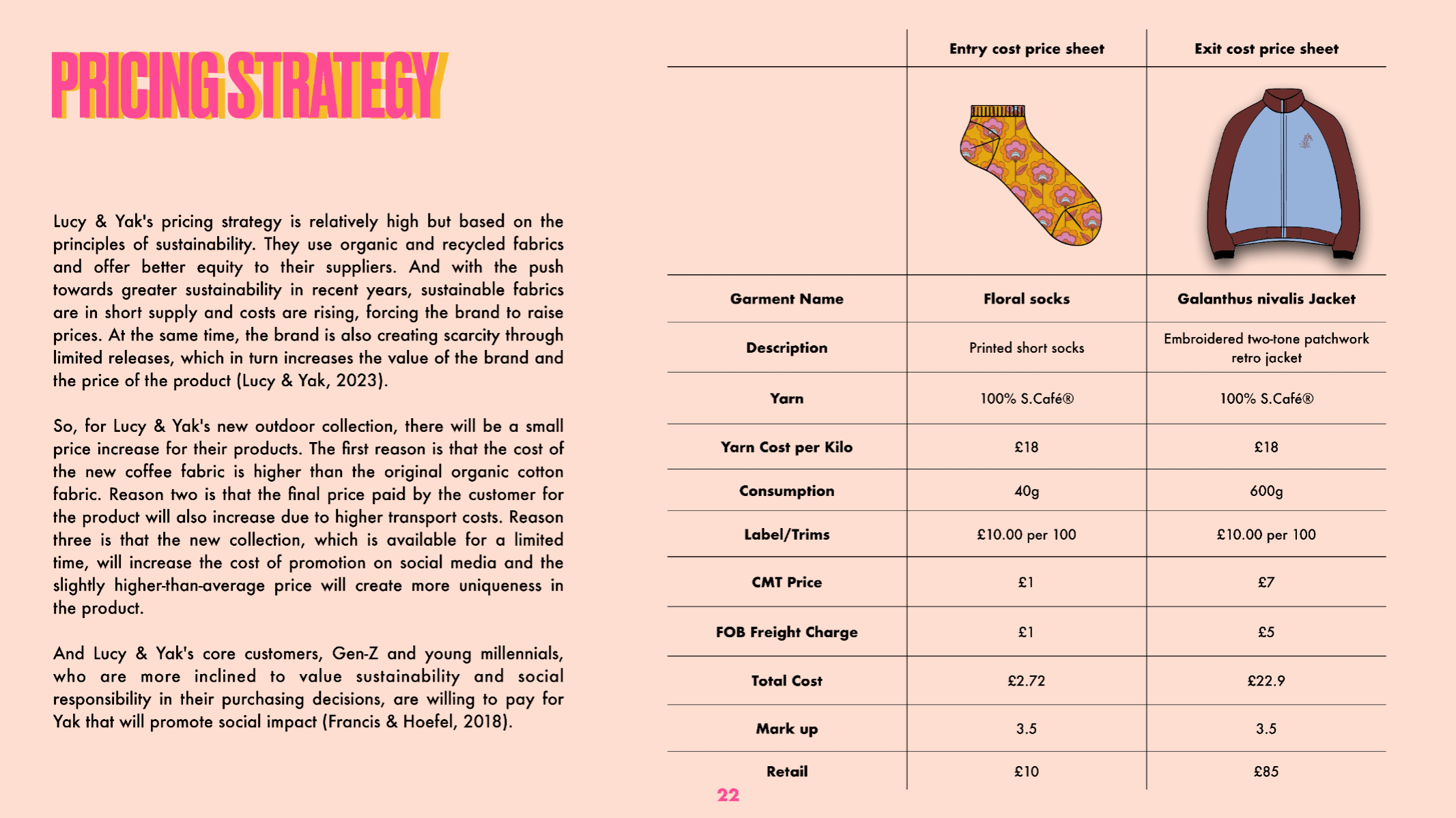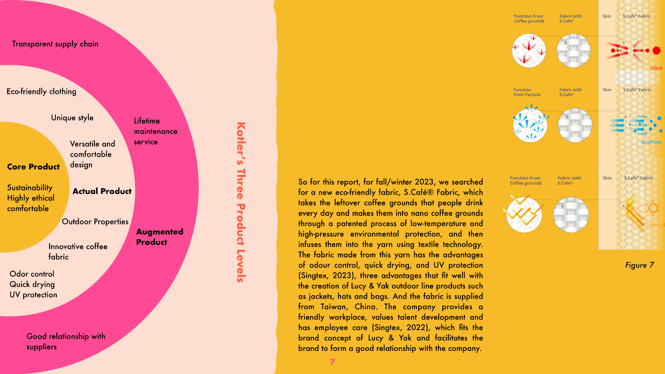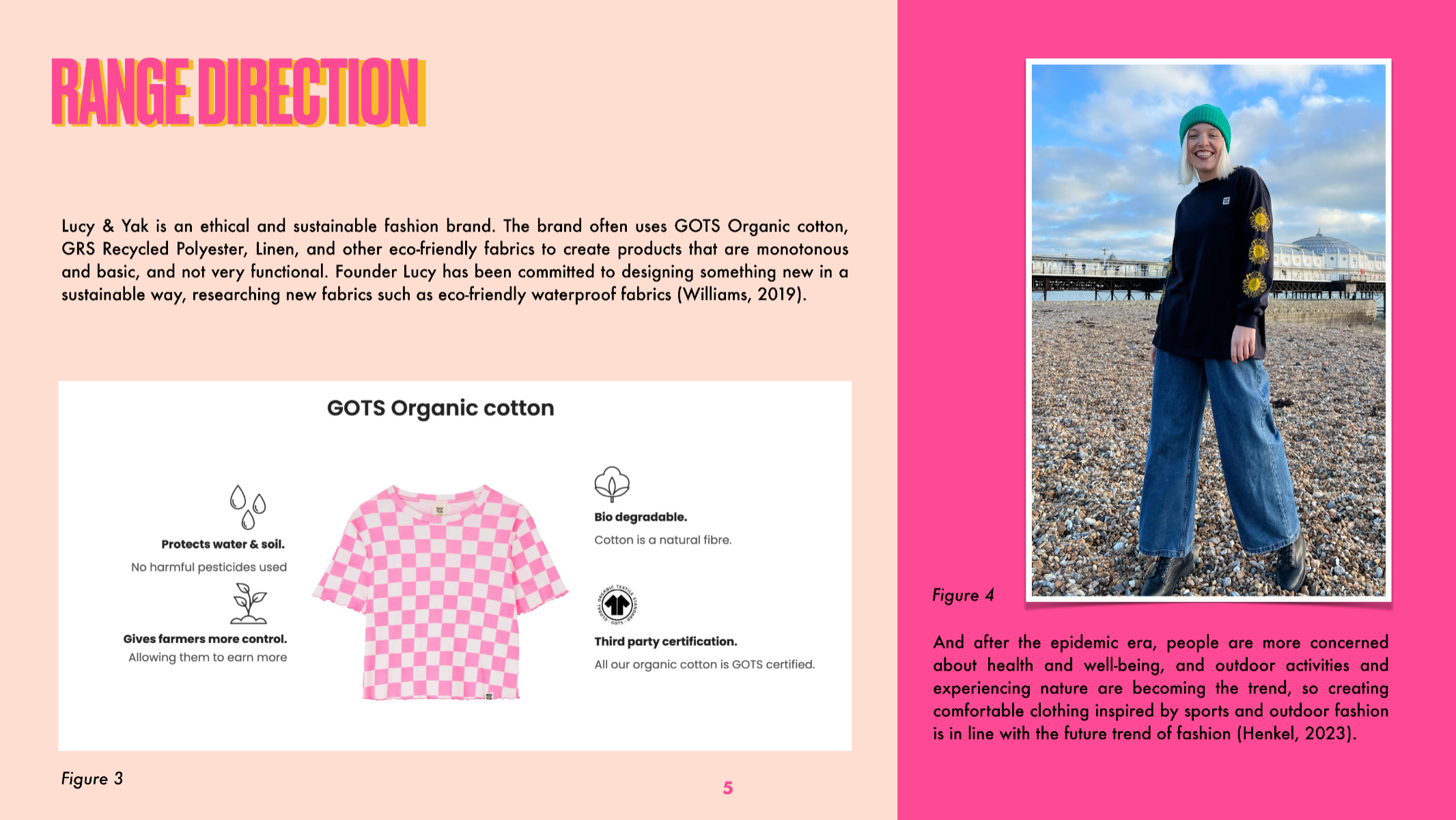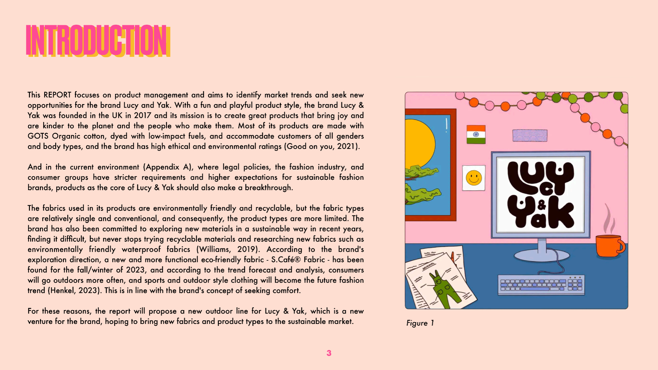 This project explores product management strategies for Lucy & Yak’s Autumn/Winter 2023 collection, focusing on launching a new sustainable outdoor line made from innovative S.Café® fabric. Through comprehensive market analysis, range planning, trend forecasting, and supply chain design, the report proposes a functional and ethical product expansion aligned with Gen Z consumer values and future fashion trends.