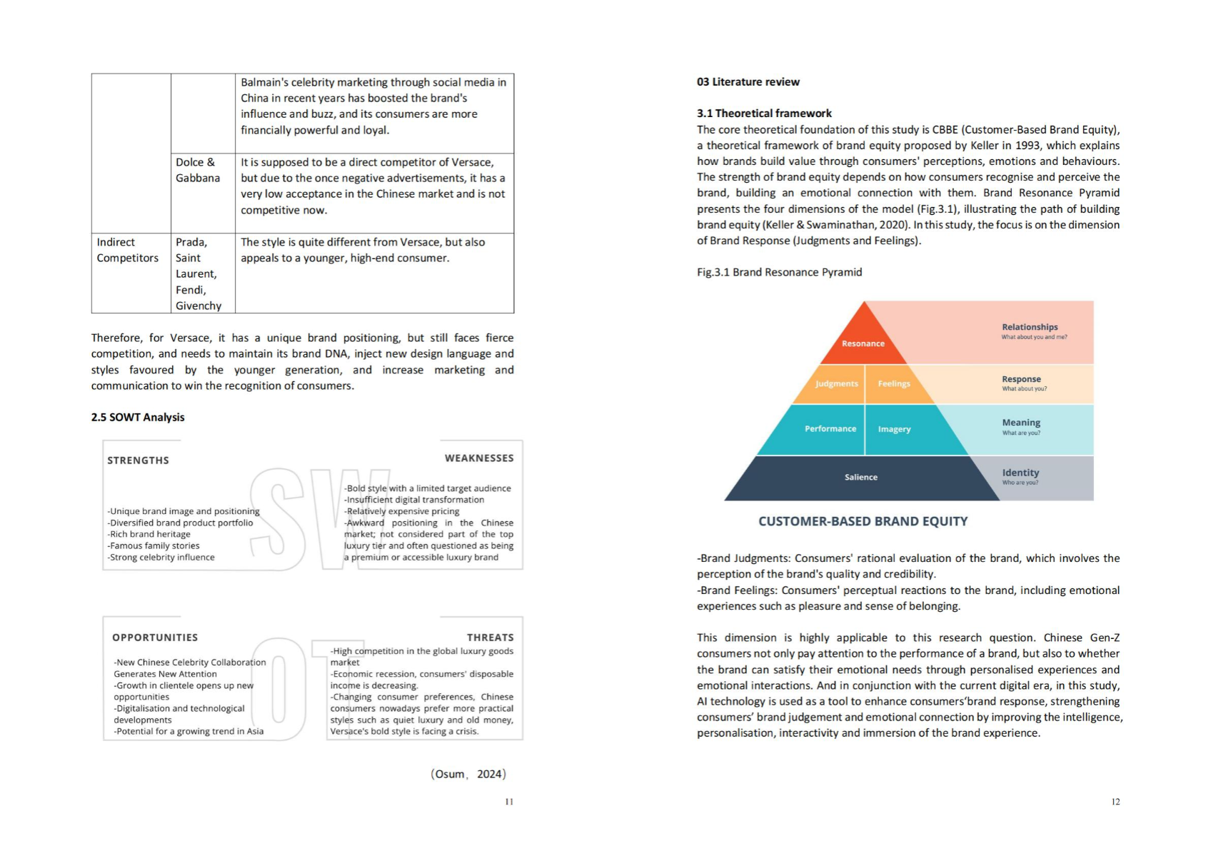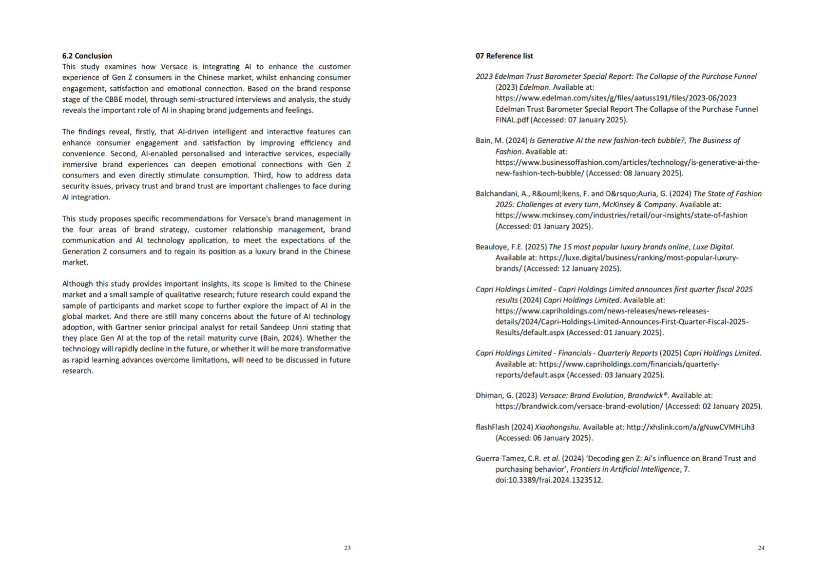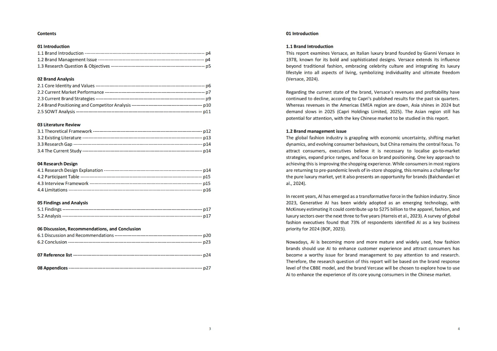 This study investigates how Versace can integrate Artificial Intelligence (AI) to enhance customer experience among Chinese Gen Z consumers. Using the CBBE framework and semi-structured interviews, the research analyses how AI-driven personalisation, interactivity, and immersive experiences influence brand judgments and feelings. Findings show that AI can improve efficiency, engagement, and emotional connection, while challenges remain around data privacy and trust. The study provides strategic recommendations for brand positioning, customer relationship management, communication, and AI implementation in the Chinese luxury market.