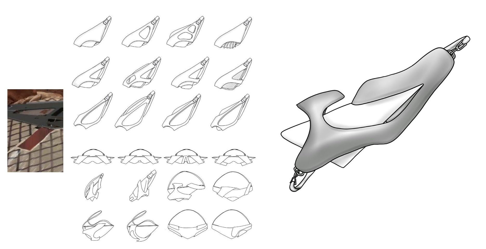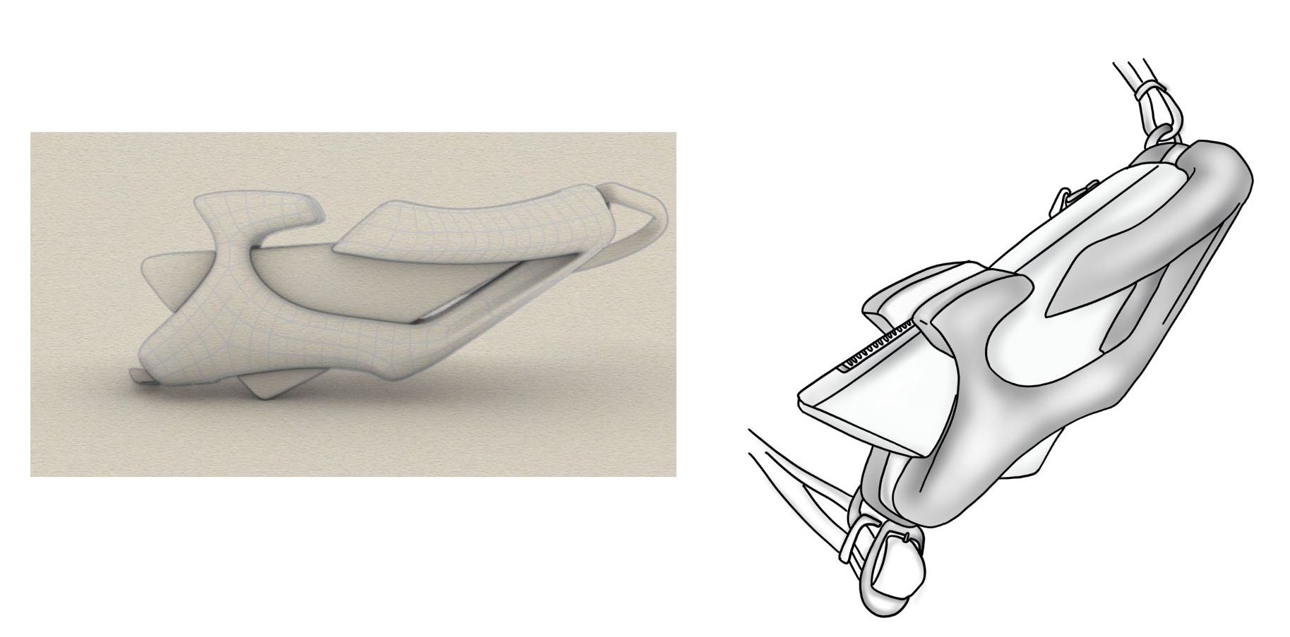 This collection visually represents a planetary life cycle of exploration, evolution, and adaptation. It begins with elemental stabilization of the environment. Followed by emergence of flora, transforming the atmosphere and enabling adaption of complex life. For my exploration sling bag I used Rhino3D to model the bag cage with an ergonomic hinge closure system for easy access.