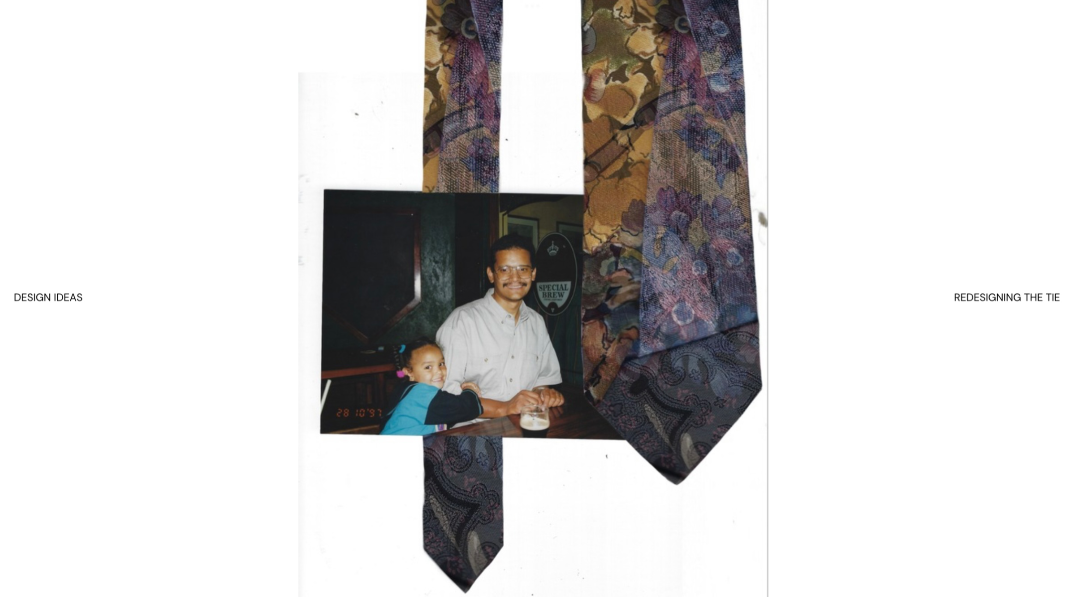 Dedicated to my father, Moidean. Born in Zimbabwe 1967, growing up on the farms and travelling through the bush, my father had a humble childhood. Leaving school at 15, beginning his apprenticeship on the mines, my father spent the nights of his youth in the 80s and early 90s driving in his pink Beatle, to the town hall discos (where he met my mother), dressed in his suits with these audacious ties that have travelled with him all the way to Scotland , now buried in his wardrobe. I’ve always loved his ties and the stories that come along with them. This piece pays homage to the act of story telling in our families and the little puzzle pieces that come along to understanding where we came from