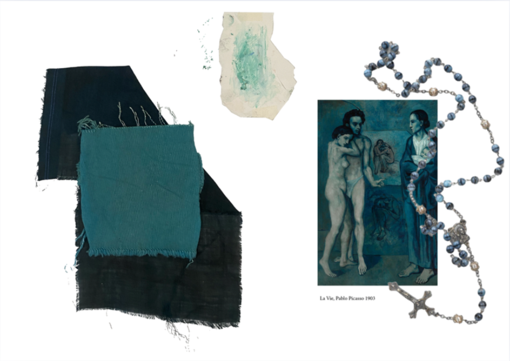 The Making of God is a reflective piece that explores my internal struggles with God and Christianity. Studying the early Renaissance paintings and the great painters of colour, M. Rothko and J. M. W. Turner, and the poet, artist and theologist William Blake. I delve into how colour and texture can be used to emote certain feelings and create a religious experience for the audience, the art of telling a story with no words. Exploring techniques such as dyeing, shibori and polychromatic printing to create emotive colour and manipulating them with wax and digital print transfer to imitate the old cracked religious paintings, Bishops clothing and bio-materials to create my own crucifix. Through this project I also learn how to meditate through my practice, allowing myself to make mistakes, not overthinking or perfecting but reflecting through each moment and trusting the process. Allowing myself to feel, almost creating a religious ritual in my work. In this process I begin to wonder if this work is a conversation with the Lord himself. You’ll see imagery of harsh dark colours, fading light, the crumbling of the crucifix, and myself trying so desperately hard to hold onto whatever faith I have left at my own pain and expense. Because the painful realisation I’m coming to terms with through this project is that though I may no longer be of faith, I still carry Him with me. The Lord is forever bound and woven within me. It is the question of how do you believe in a god that you deeply despise? How do you find peace in that?