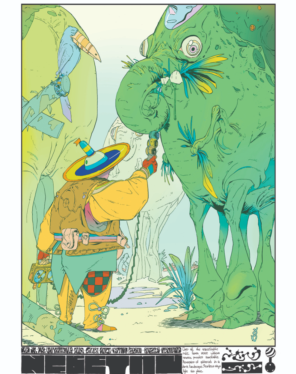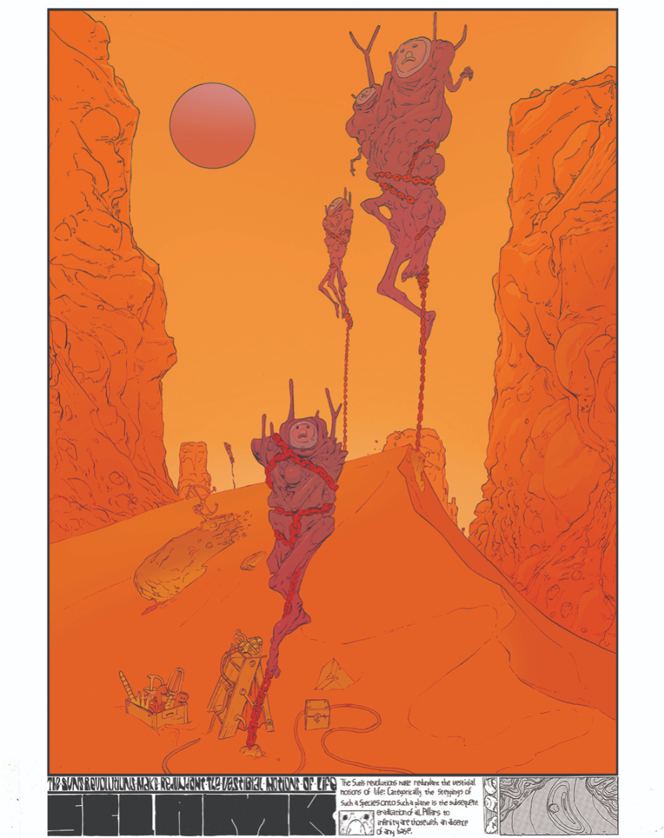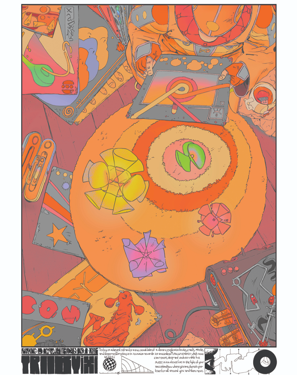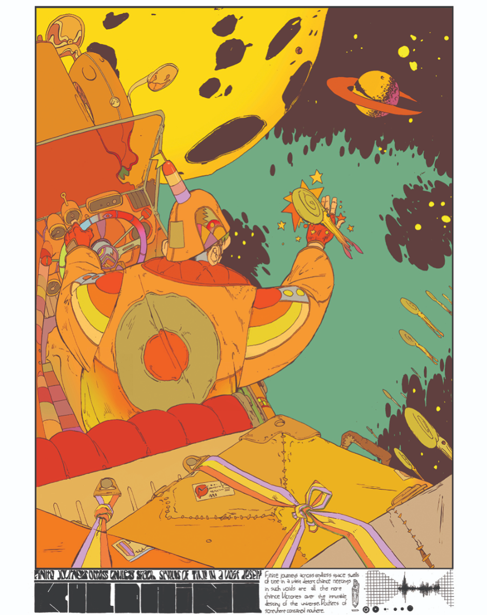 A series of interpretably sequential pieces that aim at strange, unique, and sometimes serene scenes with the intentional incorporation of graphic design elements that play on a parallel narrative. Ultimately becoming a series of illustrations having a shared style, color logic, and story that share shapes with one another when arranged horizontally.