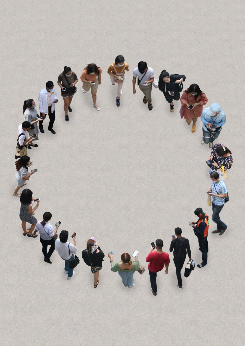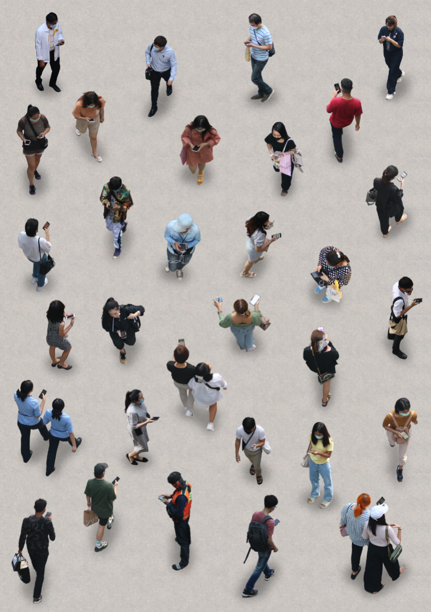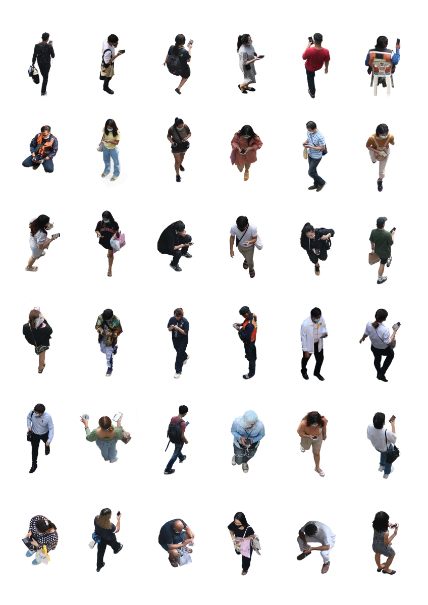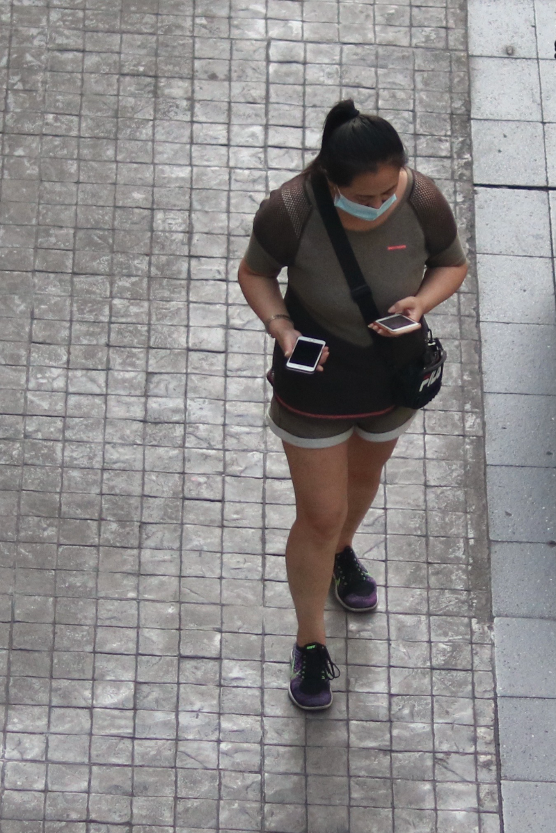 While I was walking around in the center of the city to take street photos in Thailand, I came up with a game where I have to capture pictures of people who are on their phones as much as possible within a limited amount of time from the sky train station. It is very easy to spot them because they are everywhere, showcasing how much people rely on their phones almost every second in their daily lives. They all have the same posture and walk cycle when using their phones to the point that they look like controlled robots, completely engrossed in their devices and seemingly oblivious to everything else around them.