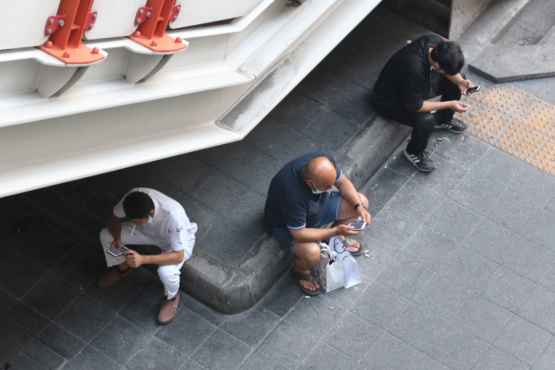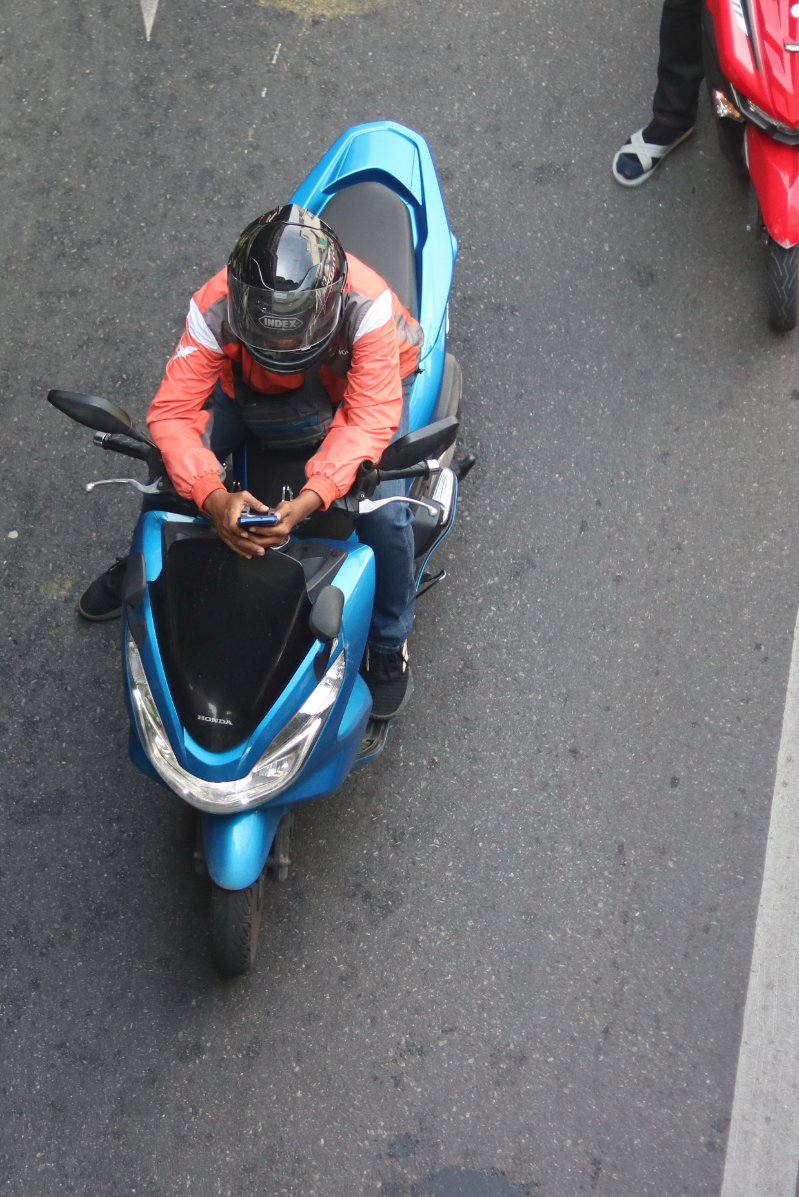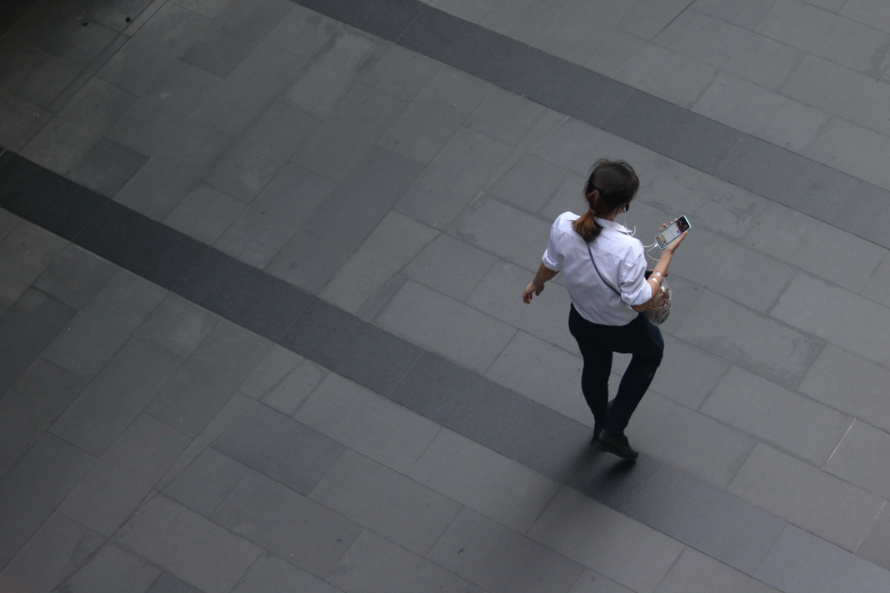 While I was walking around in the center of the city to take street photos in Thailand, I came up with a game where I have to capture pictures of people who are on their phones as much as possible within a limited amount of time from the sky train station. It is very easy to spot them because they are everywhere, showcasing how much people rely on their phones almost every second in their daily lives. They all have the same posture and walk cycle when using their phones to the point that they look like controlled robots, completely engrossed in their devices and seemingly oblivious to everything else around them.