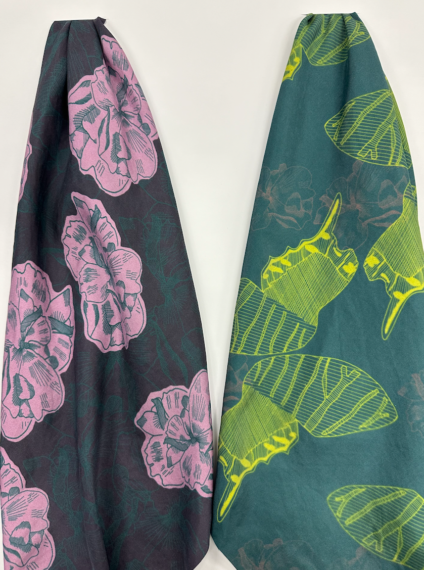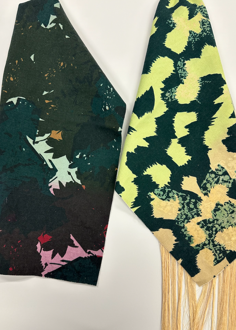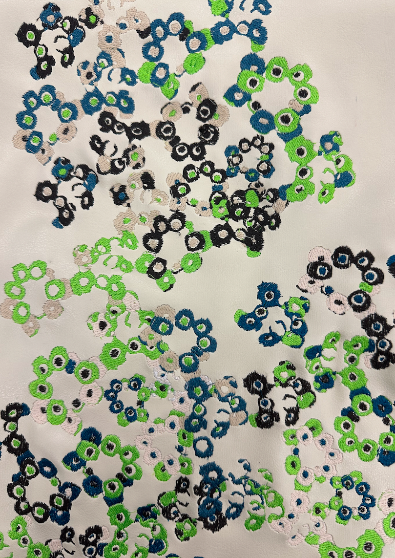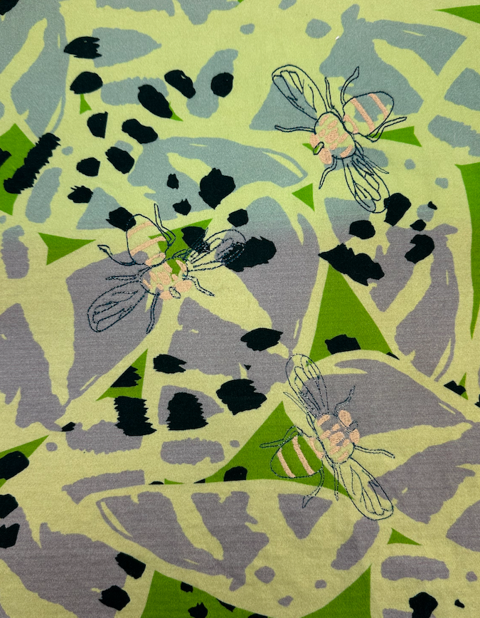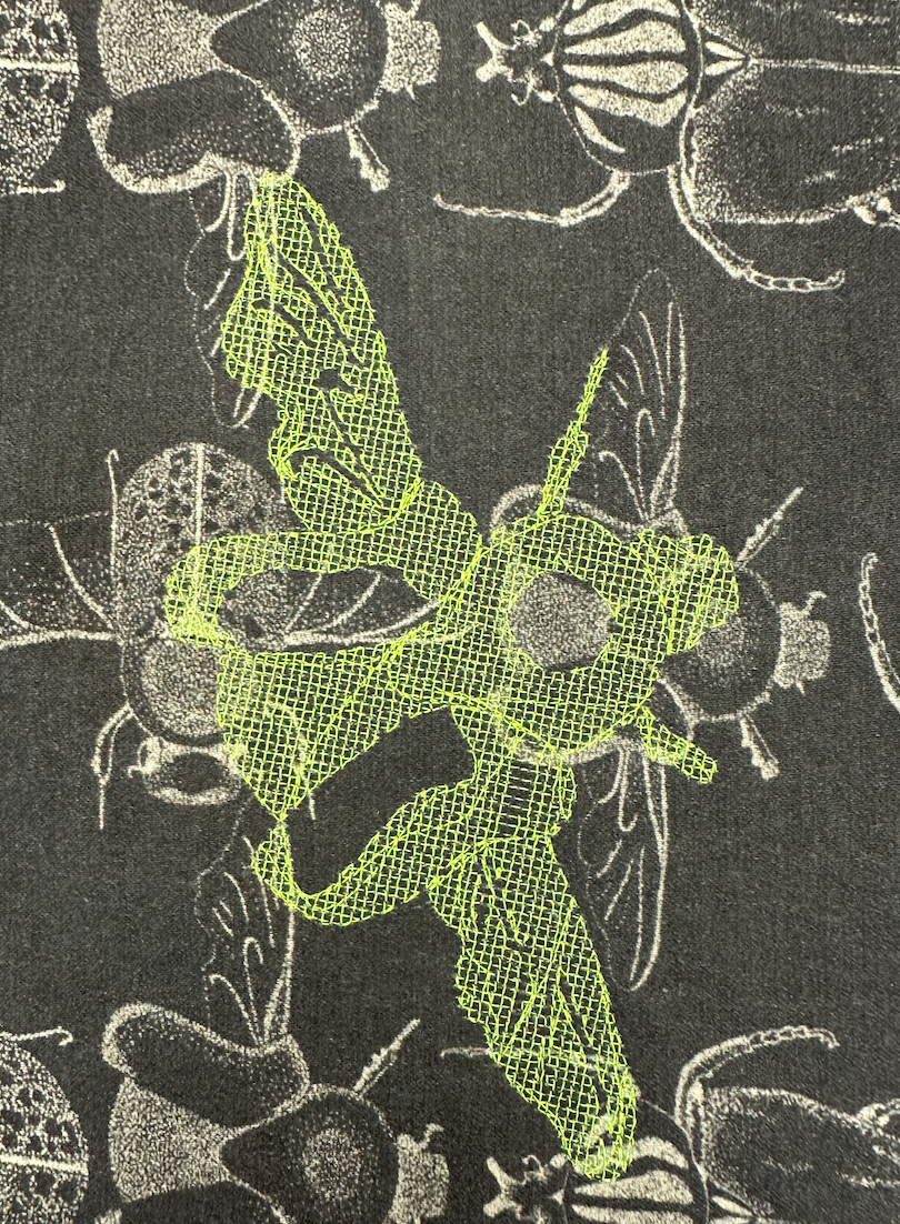 Botanical Bugs explores a unique take on florals, focusing on abstract shapes and mixed media. Showcasing digital print designs, CAD embroidery, laser etch and cut to create a cohesive collection for womenswear.