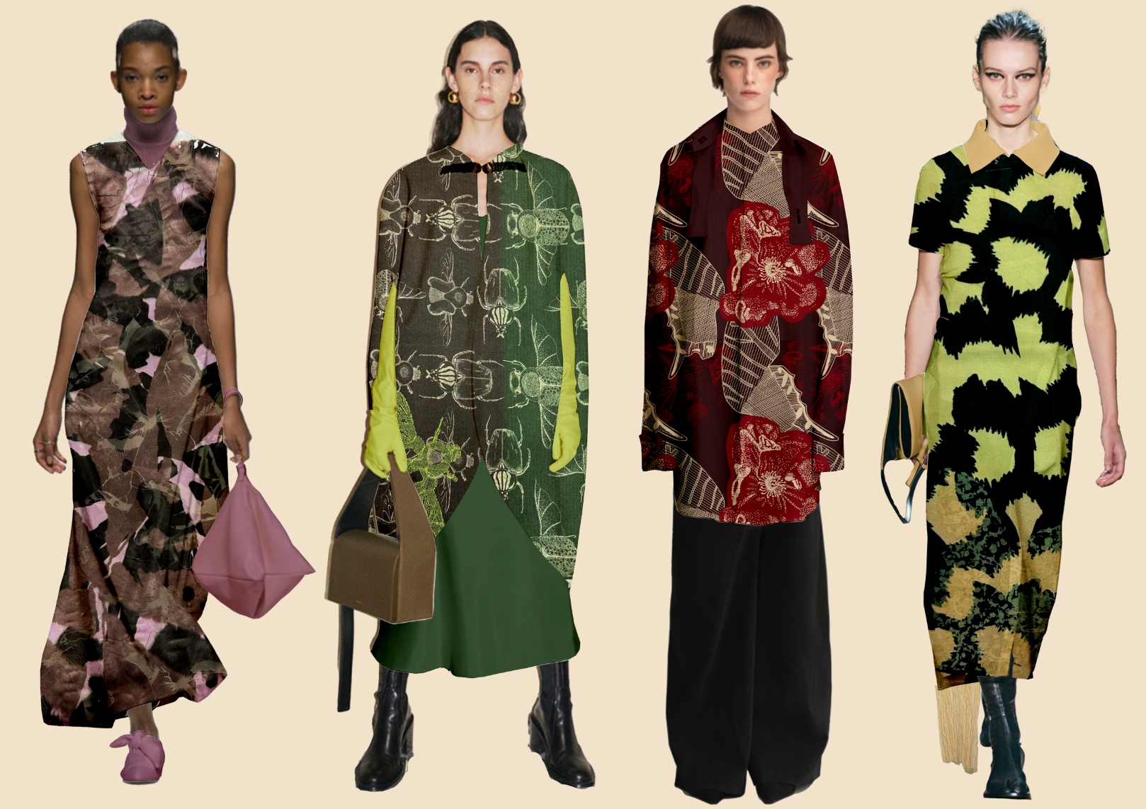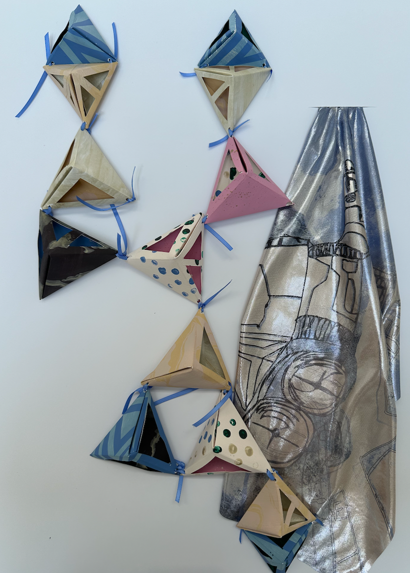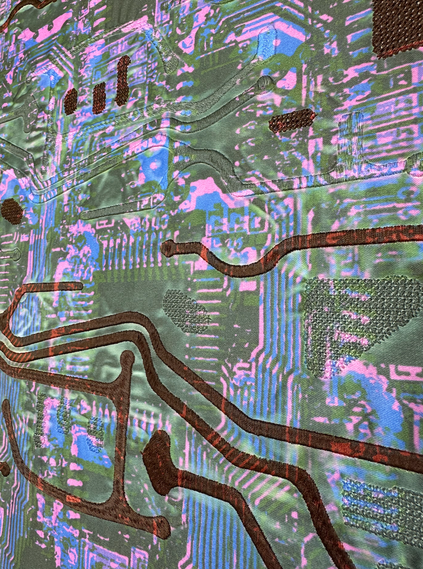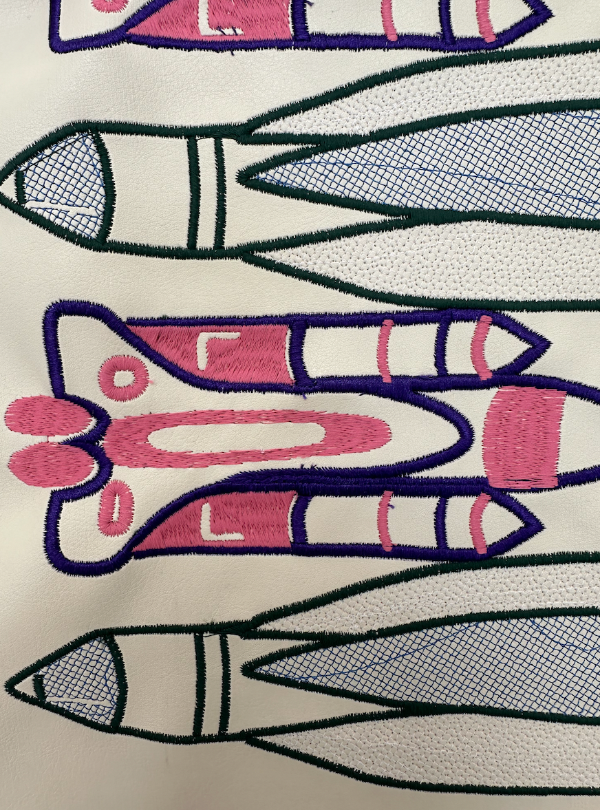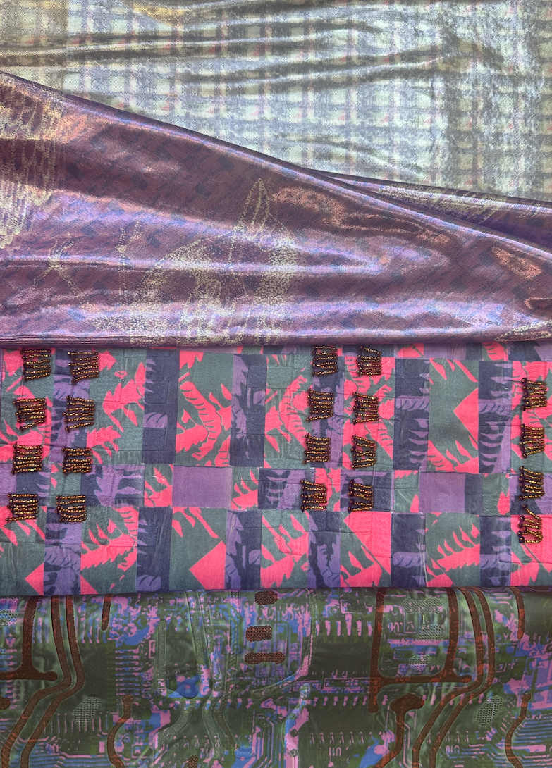 Botanical Bugs explores a unique take on florals, focusing on abstract shapes and mixed media. Showcasing digital print designs, CAD embroidery, laser etch and cut to create a cohesive collection for womenswear.