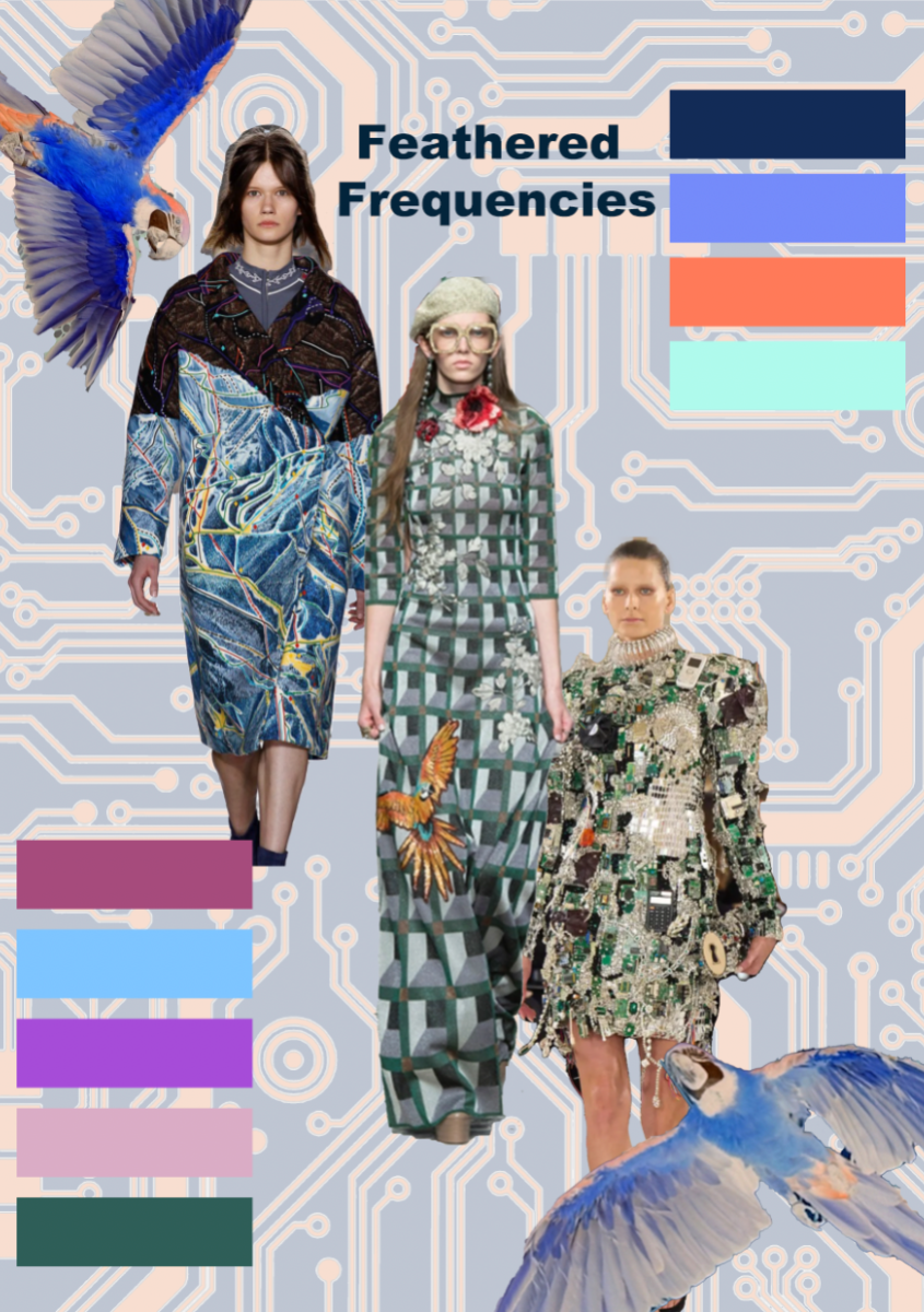 Feathered Frequencies is my Final Major Project which explores different ways of communication. For example through technology past and present such as using birds in the olden days to pass notes. My collection is rich with bold digital prints, CAD embroidery, hand embellishment and laser etch. I love mixing different techniques together to create bold and unique collections to portray my fun take on textiles. TEX+ Submission: https://vimeo.com/1081302652/67afb3440f?ts=0&share=copy