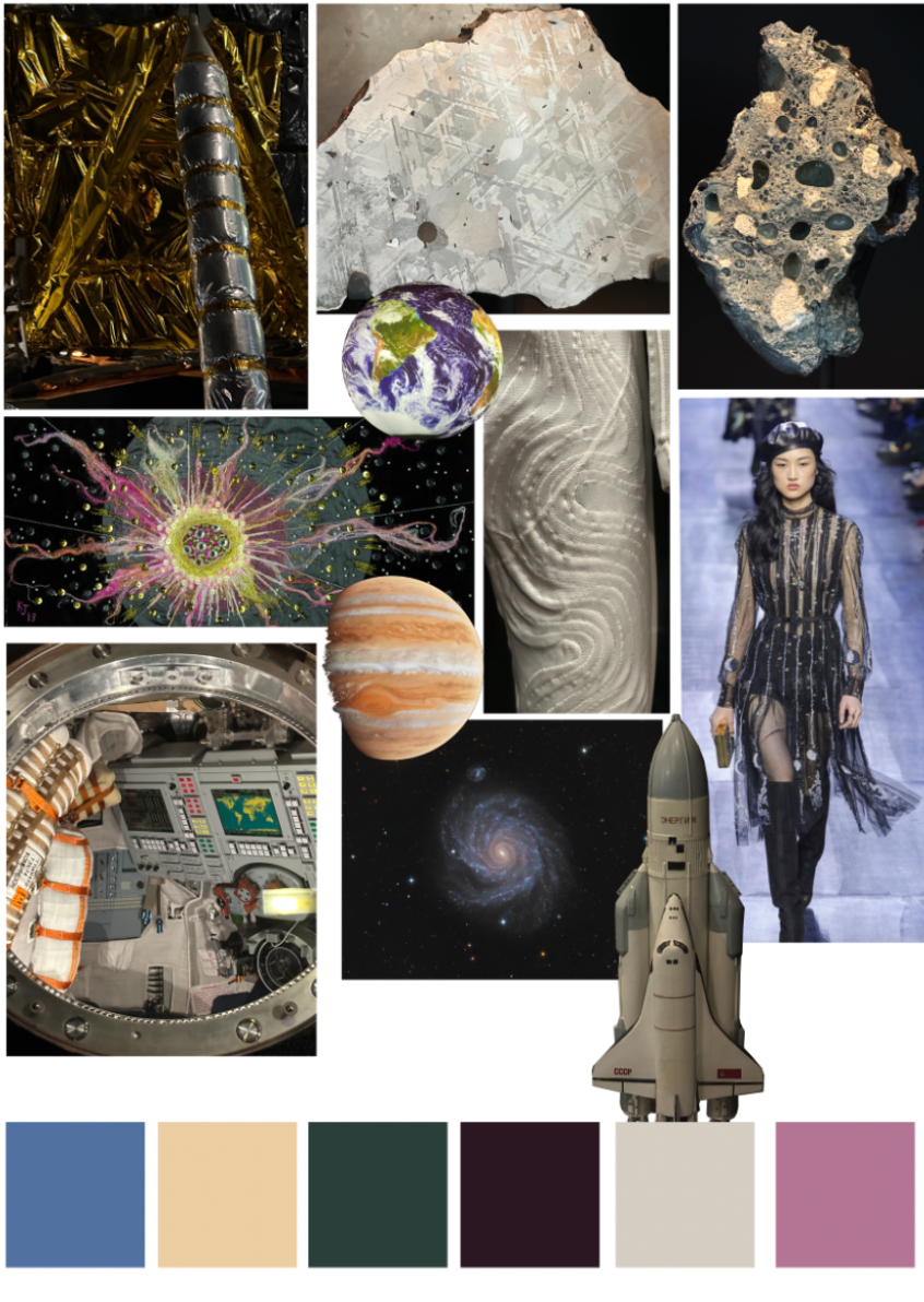 My ' Outer Space ' collection is designed for a unisex runway context. I was inspired by a space exhibition at the Science Museum in London. My project explores a mixed media approach focusing on different weights of fabric such as light synthetics to denims and leatherettes. The techniques my collection showcases are screen printing, laser cut and etch, CAD embroidery, embellishment, digital print and beading.