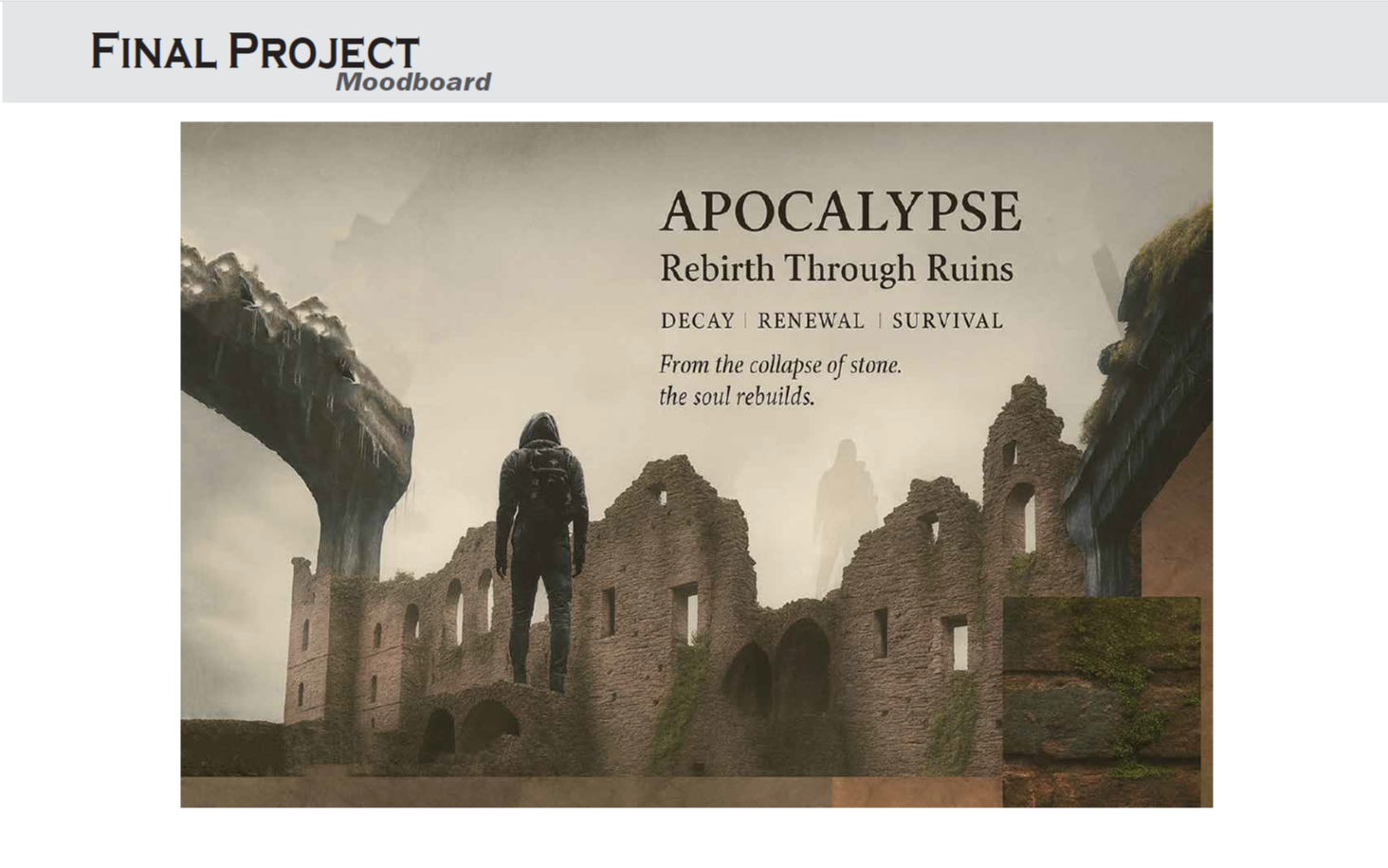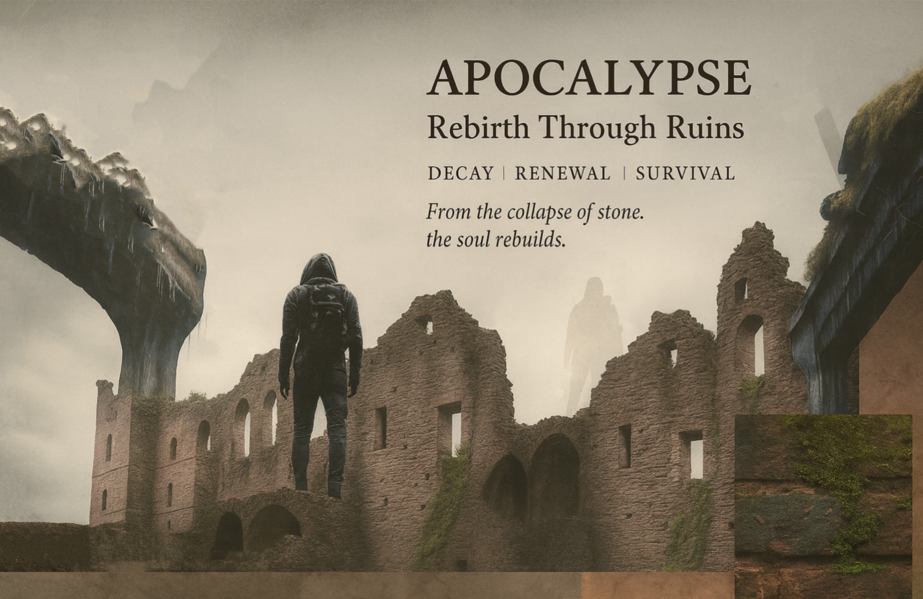 This collection explores the duality of destruction and renewal through a poetic lens. Inspired by decaying architecture, forgotten civilizations, and the resilience of nature, it examines how beauty emerges from loss. The garments reinterpret structural remnants—fractured silhouettes, layered textiles, and weathered surfaces—to evoke the tension between fragility and endurance. Subtle details such as frayed edges, oxidized embellishments, and moss-toned accents symbolize nature reclaiming what was once human-made. Rooted in sustainability and emotional storytelling, the collection celebrates rebirth through decay—a reflection on humanity’s ability to rebuild with grace, transforming ruins into a testament of survival and hope.