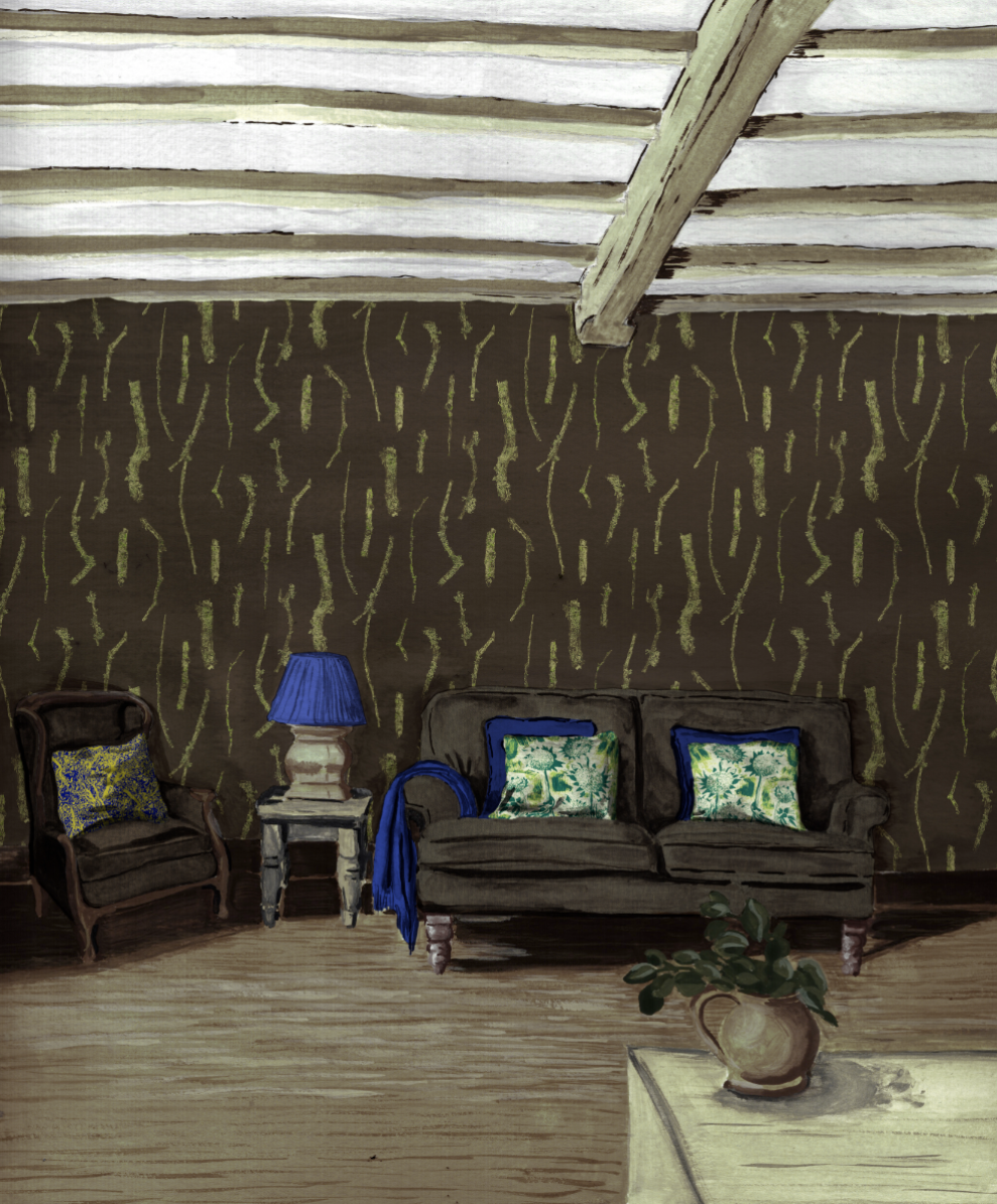 Summer's drought was devastating for wildlife and made the landscape look more akin to Provence than rainy Blighty. 'In the Sticks' is an interior textile and pattern collection celebrating what we have and noting this change, finding those moments of peaceful respite in the shade.