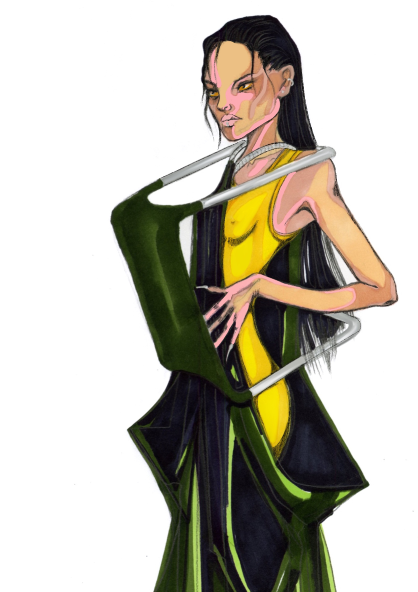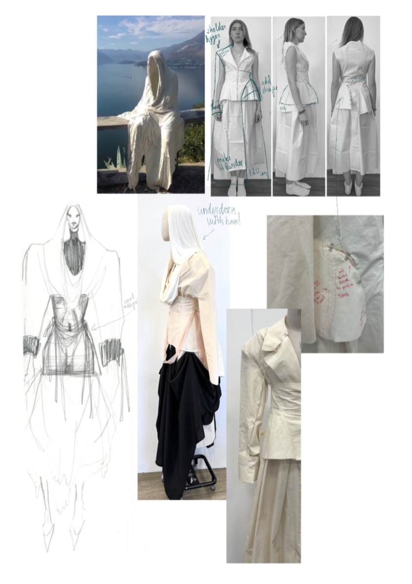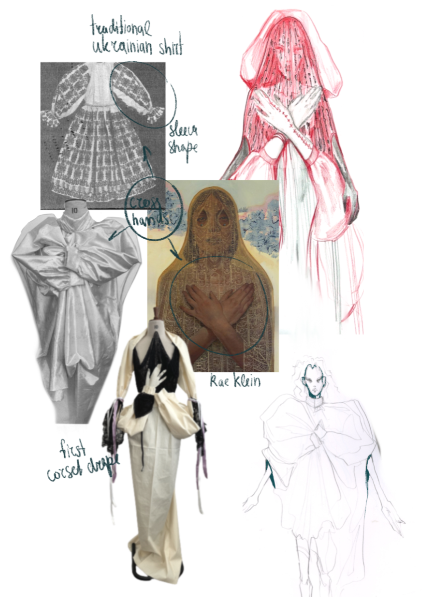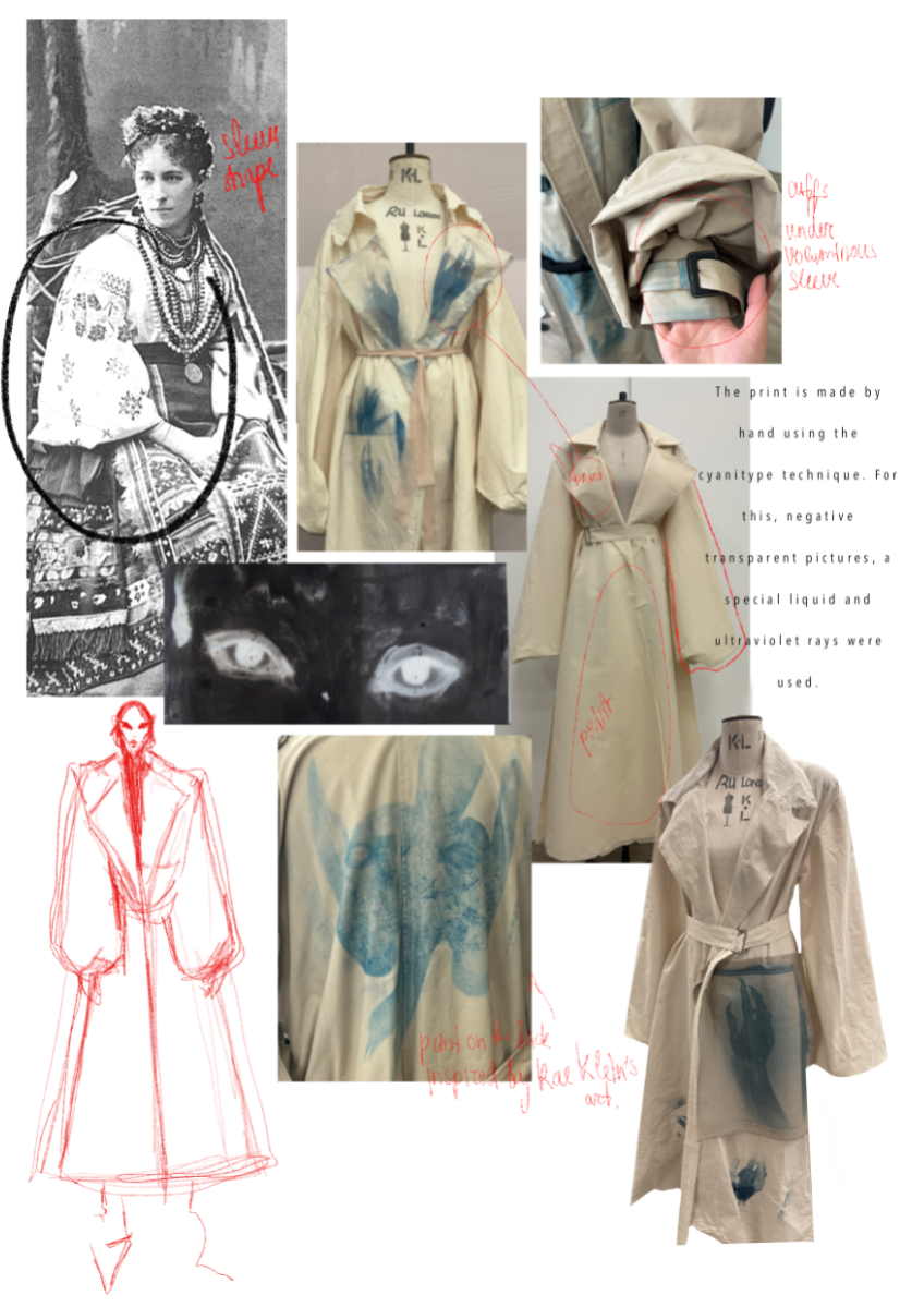 Ukrainian fashion designer Ivanna Diadyk is deeply informed by nature, spirituality, and the desire to honour Ukrainian culture. Growing up in Kyiv, Ivanna studied Fashion Design and Art, forming a strong foundation of knowledge in Art History and design techniques. Moving to London in 2021 to pursue a BA in Fashion Design at Regent’s University, Ivanna continued developing her creative skillset. She started utilising natural dying and printing methods and environmentally friendly materials into her work. Since 2022, the ongoing war in Ukraine has resulted in mass instability and a deep sense of powerlessness for Ivanna and her people, many of whom had to flee the country for safer ground. With this, Ivanna’s designs and sources of inspiration shifted. She began incorporating symbolism and silhouettes that pay homage to Ukrainian traditions. But beyond this, she now endeavours to create garments that provoke profound feelings of freedom and empowerment for the wearer.
