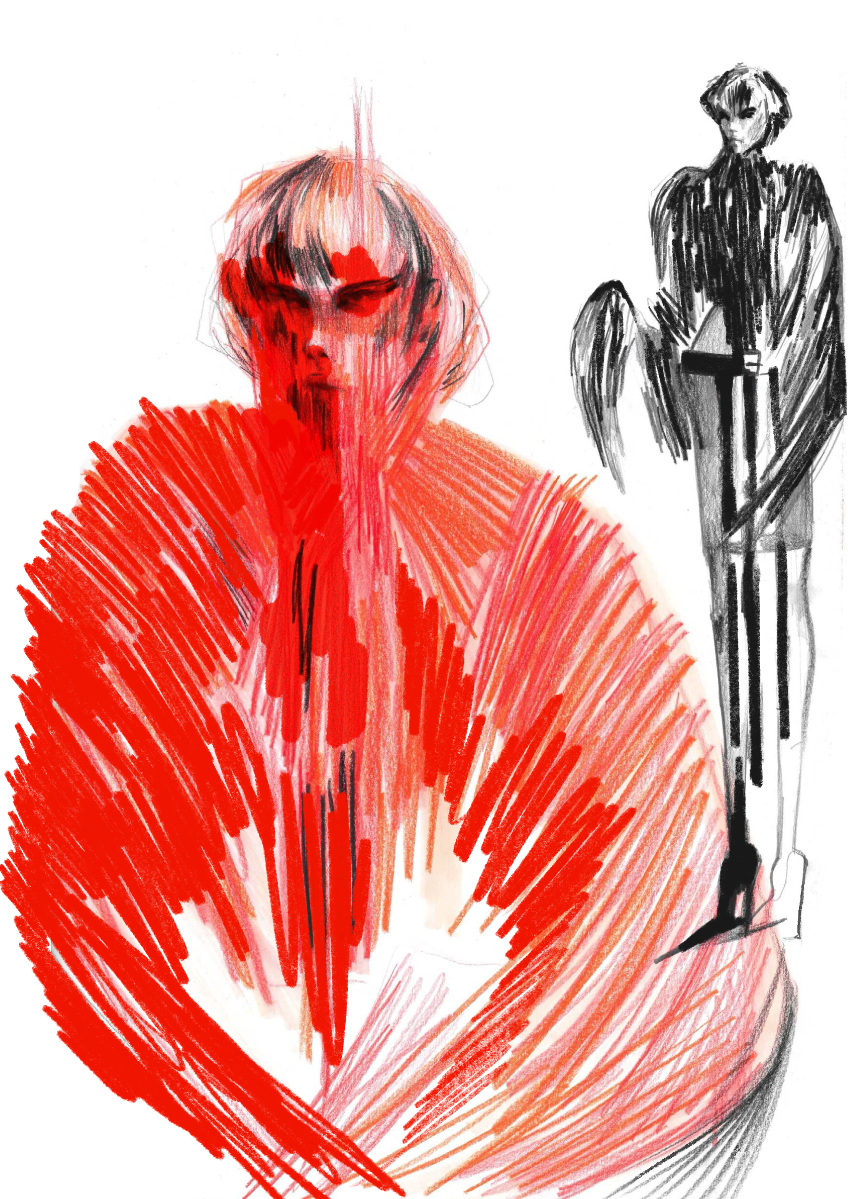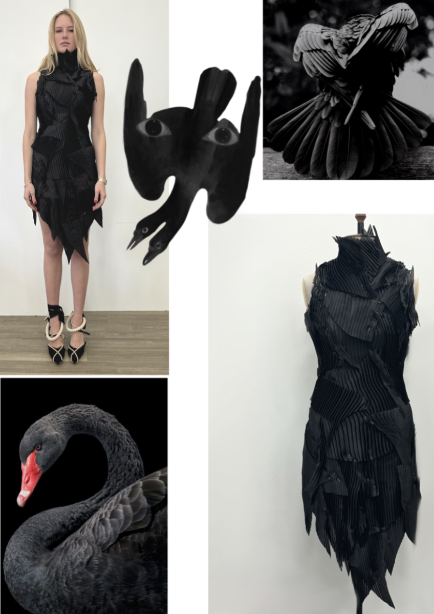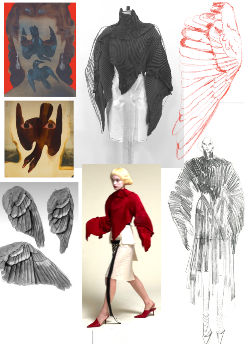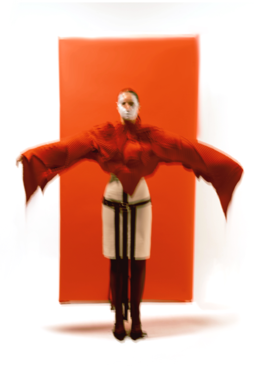 This collection is a tribute to transformation. Inspired by the feathers, forms, and flight of birds, it explores the tension between strength and delicacy, chaos and grace. Each look is sculpted in pleated fabric, designed to echo the movement of wings and the quiet power of breath. Crafted entirely by hand, the garments carry symbolic shades of red, black and beige – colours drawn from Ukrainian cultural heritage, each one speaking of protection, rebirth, and resilience. Nezlamna is not just about adornment – its about presence. It is clothing for women who are both grounded and untamed, spiritual and bold. Every fold holds a fragment of freedom.