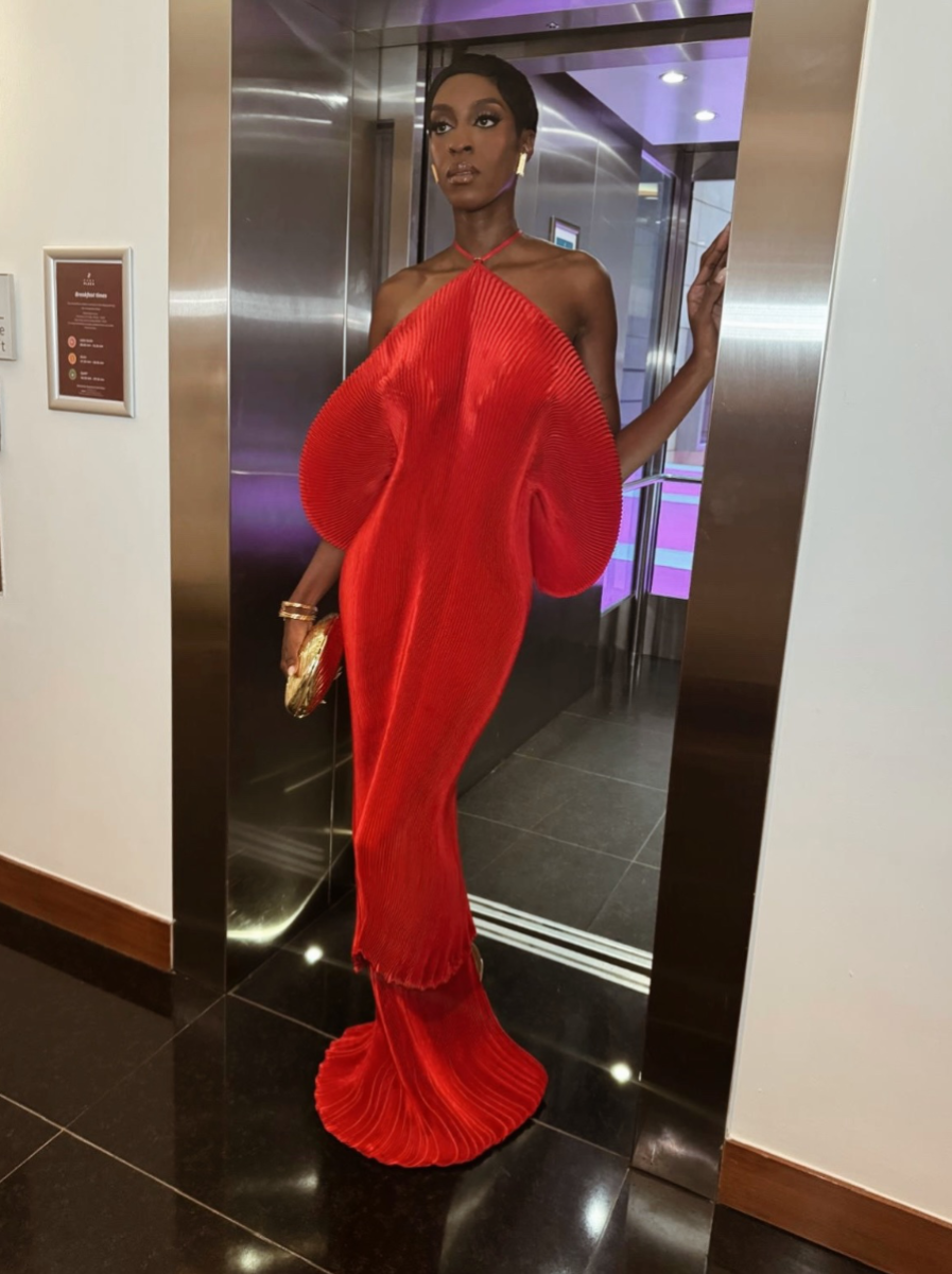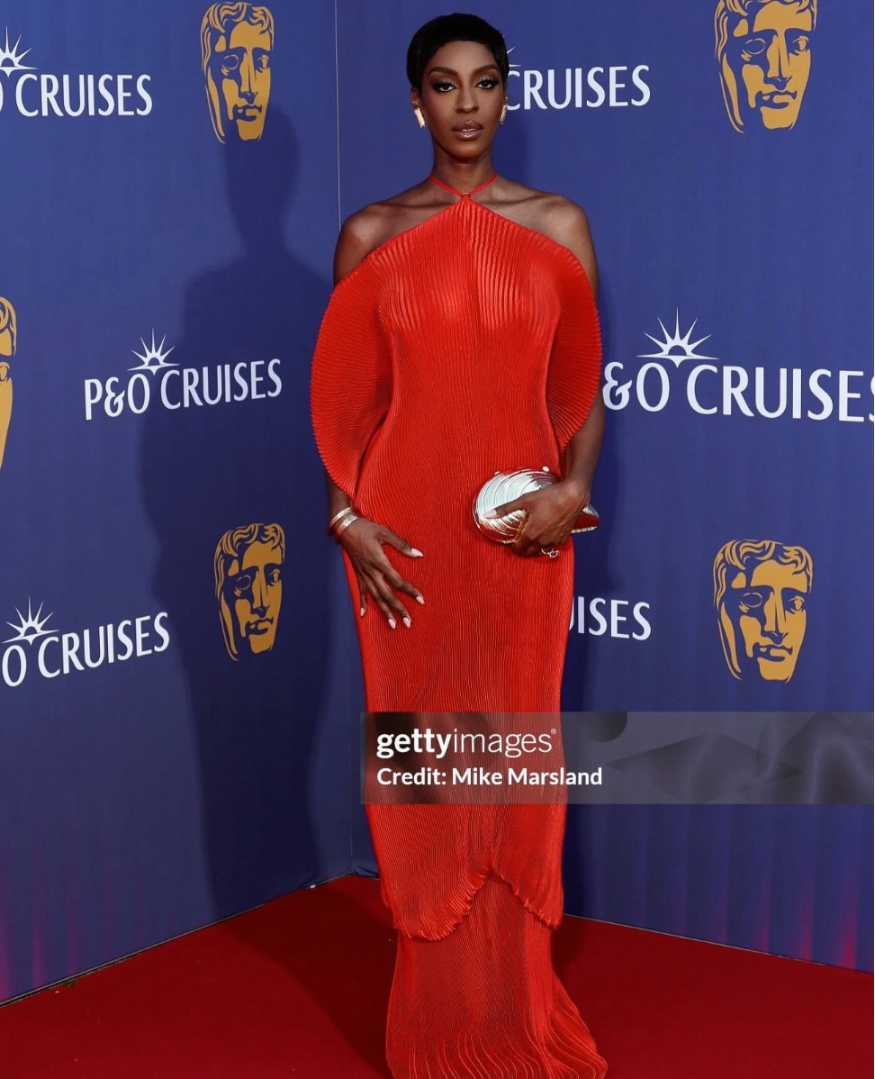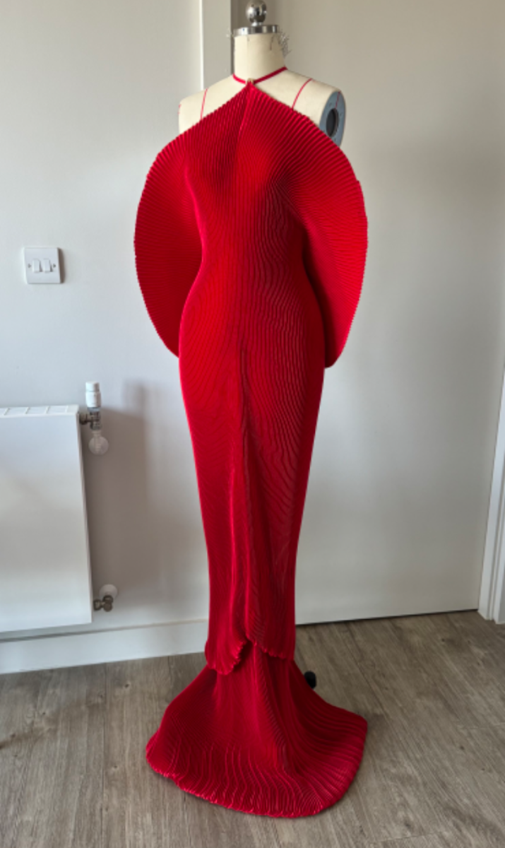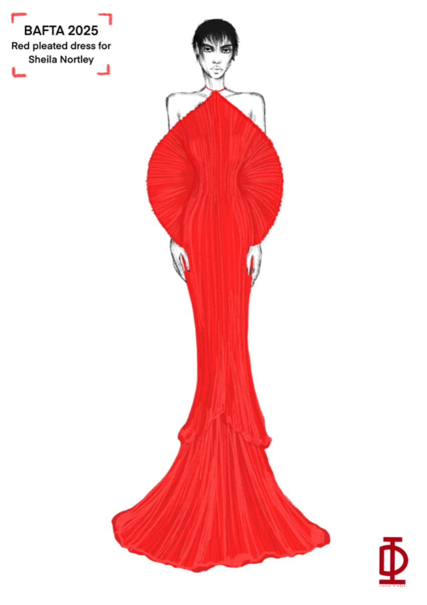 Worn at the 2025 BAFTA TV Awards Custom dress for Sheila Nortley – a producer from London and one of the UK’s brightest creative talents behind the camera, with work spanning internationally across film and television. Custom design for Sheila Nortley Created a bespoke silk gown worn by UK producer Sheila Nortley at the 2025 BAFTA TV Awards. The piece was constructed using Ivanna Diadyk's signature hand-pleated technique, combining sculpture and movement in a bold crimson silhouette.