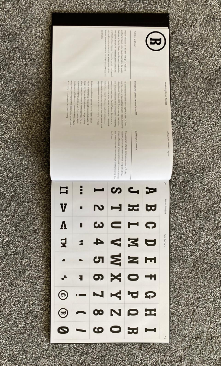 Rocket, a bespoke typeface (Including Type Specimen & Railway Sign) created in collaboration with Dalton Maag. Inspired by my hometown of Rainhill, the typeface reflects the area’s rich railway heritage, most notably the 1829 Rainhill Trials, where George Stephenson’s locomotive Rocket triumphed, marking the start of the Liverpool & Manchester Railway. The design draws on railway tracks and station architecture, blending industrial history with a bold, modern aesthetic.