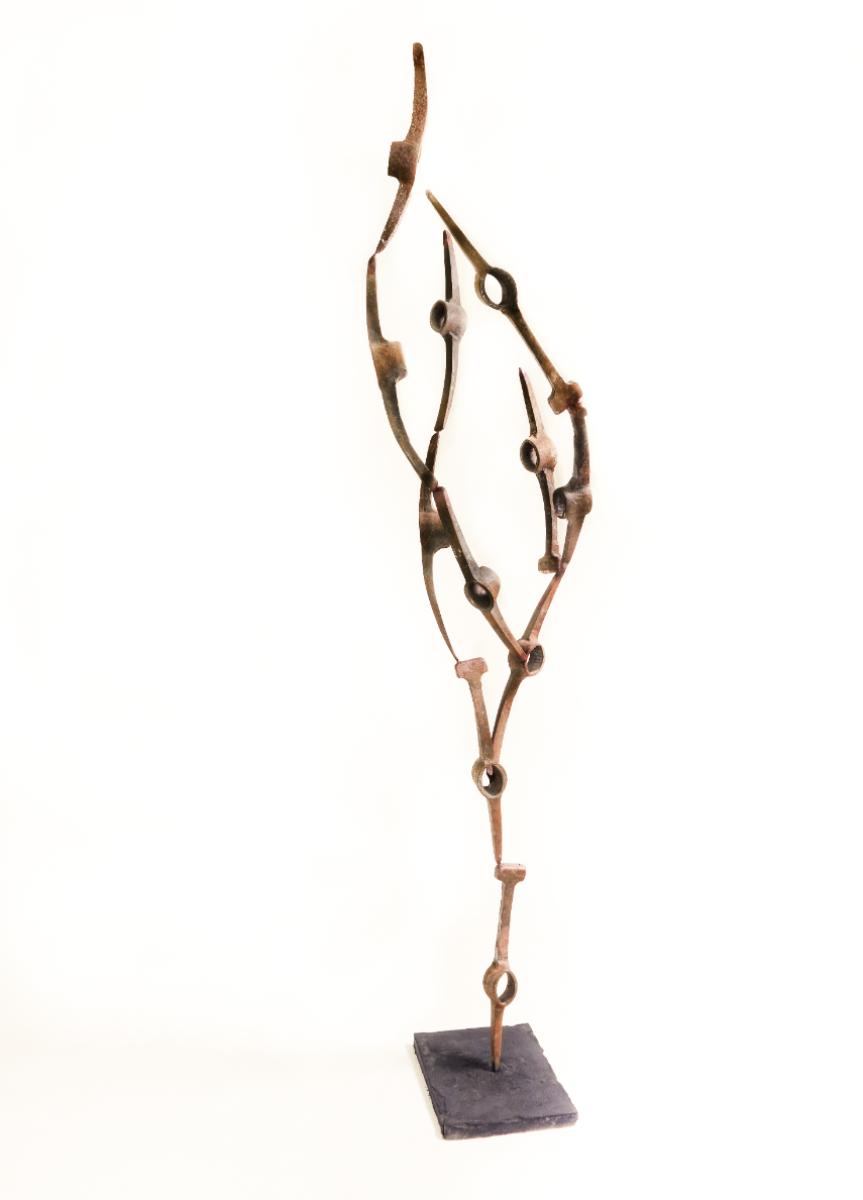 This theme in her practice revolves around the spaces we, as humans inhabit and the memories they hold. She engages with these landscapes by collecting the remains left behind by human impact on the environment. These salvaged materials that are refigured in her artworks carry with them the traces of the landscapes from where she found them. These traces create dialogues within her works that are a continual source for her creative inspiration.