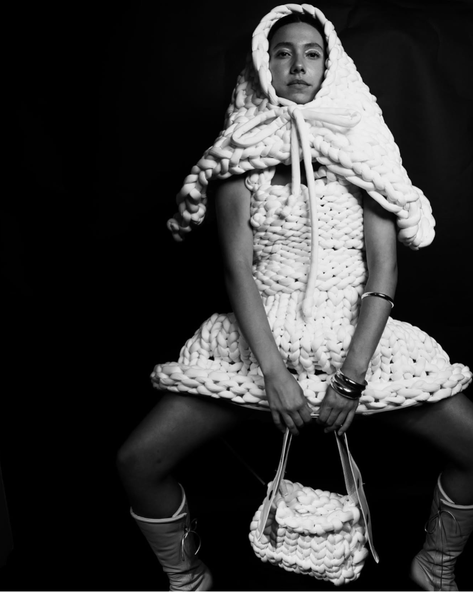 Designed and created a conceptual all white look for my Concept Development course. I decided on the medium of chunky knit and hand knitted the dress and hood. I photographed this shoot as well.