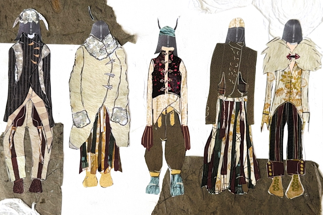 Senior thesis collection inspired by Swedish folklore and the folklore illustrations by John Bauer in the early 1900s. Looking at the silhouette of how he depicts trolls in his illustrations. Älva is a forest fairy, spirit that lives among the trolls in the Swedish winter forest. The trolls taught her how to hunt, forage, knit, and sew for survival in the harsh winters. Researching historical Swedish folk wear, folk stories, traditional Swedish embroidery, and Scandinavian way of life. All materials are sourced second-hand or from a small independent farms for sheep wool and alpaca wool. I use materials that you would see in a Scandinavian home, like a ram skin fur for a chair. I am half Swedish, through my mother, so this project is very personal to me and being able to learn more about my heritage.