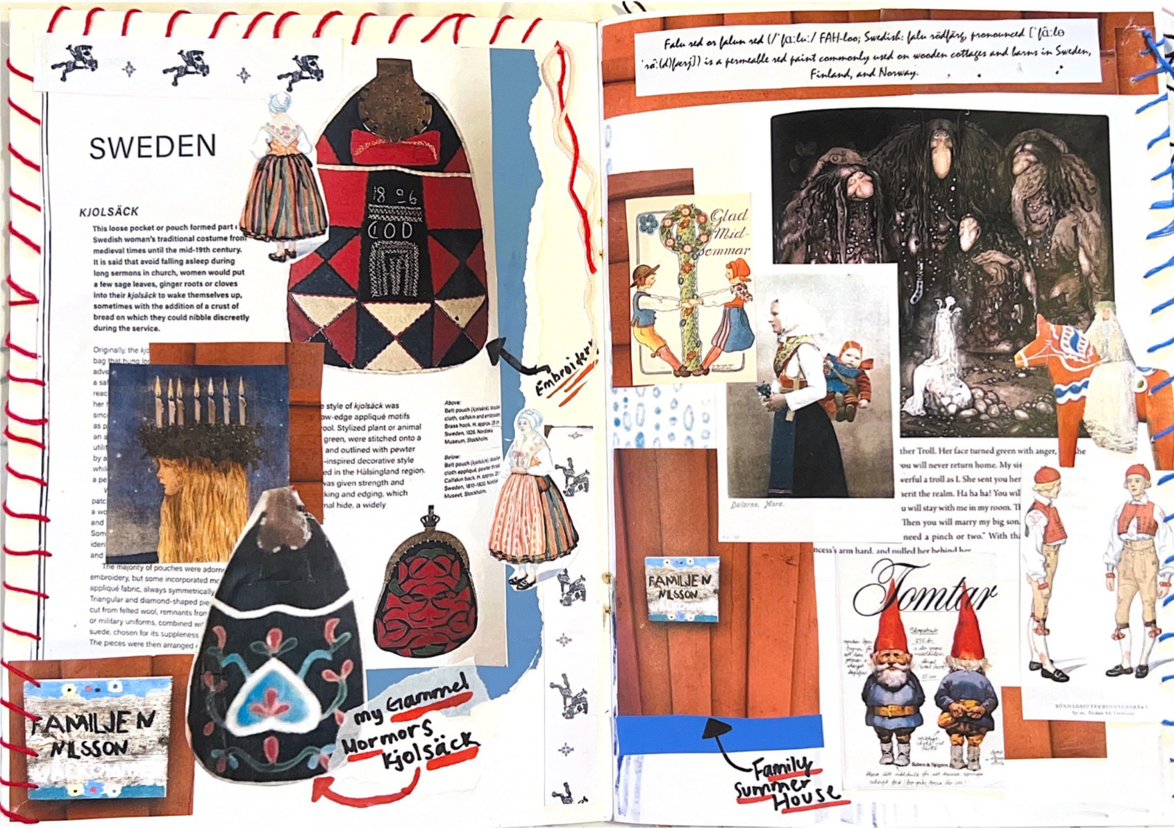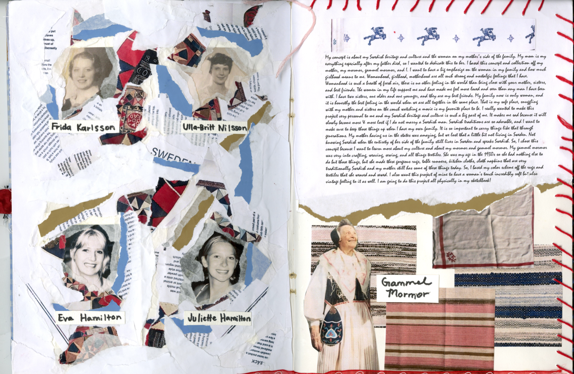 Process book I made while studying abroad in the South of France. Looking into traditional Swedish folk-wear and my great grandmothers folk dress.