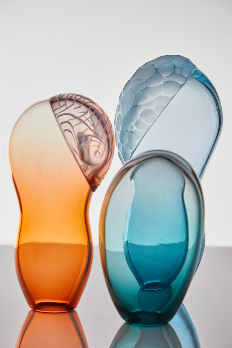 I am an aspiring glass artist; my work represents and expresses my journey of reconnecting with my family. I have drawn on the patterns I see in nature around me, especially being outside on family holidays and the photographs that were sent to me by my Grandad in the Caribbean. My pieces have a story, a meaning, and a personal connection. When working with glass I love to explore many processes in both hot and cold working. I have found ways to further develop layering, colour, and pattern. Through the techniques of cold-working and embellishment, I have emphasised the light inside my glass to highlight the patterns within the forms. I love to incorporate colour and explore how each pigment interacts with another: when a colour has been blended within a single piece or when multiple pieces have been overlapped to give a unique combination and pattern. I want my pieces to communicate my passion for the material and the joy of making.