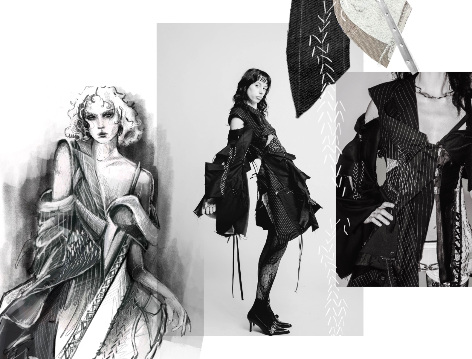 A Graduate Fashion Designer specializing in sustainable womenswear and textiles with work experience in atelier assistance, fashion illustration and womenswear design at luxury labels.