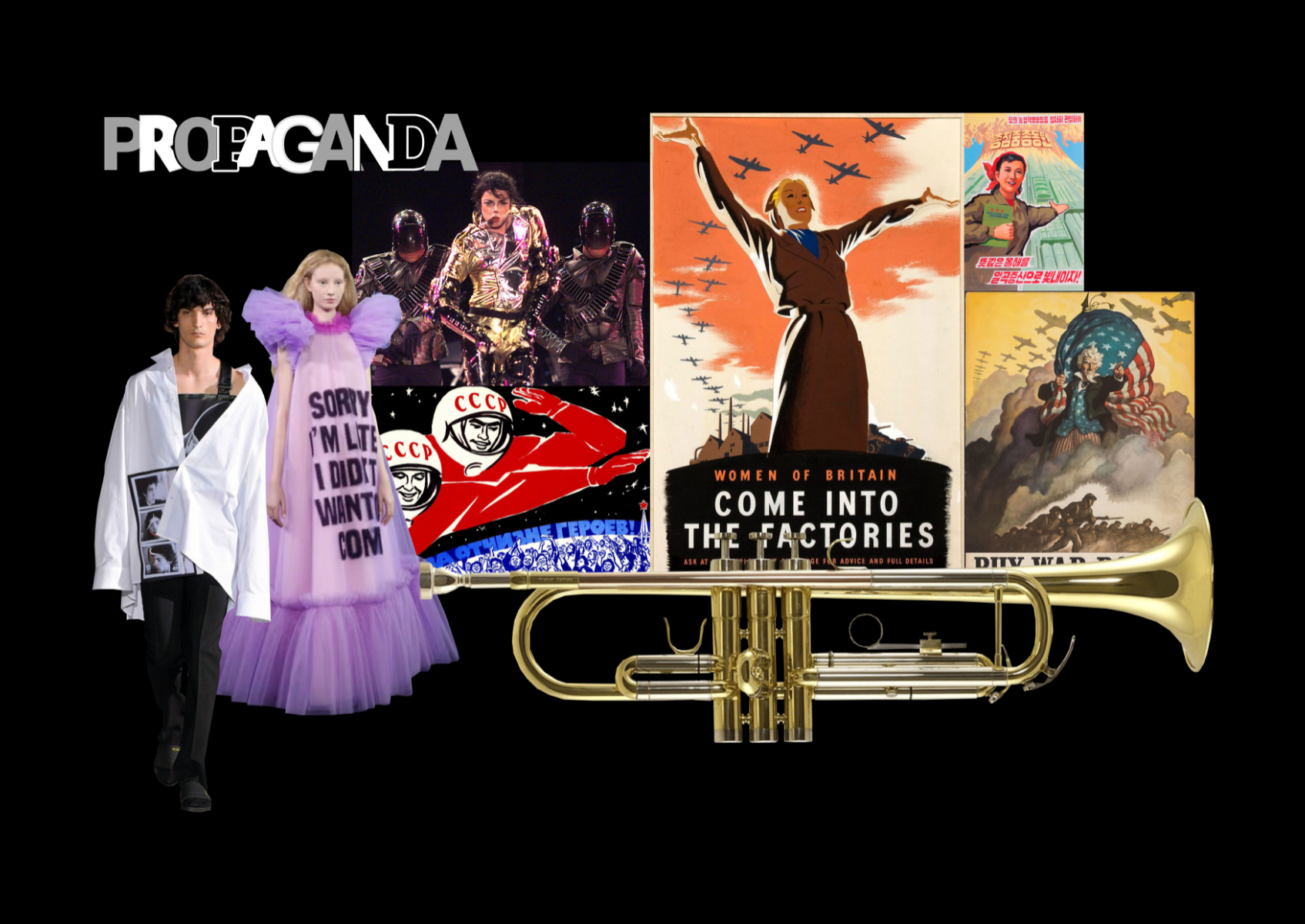 As an international BA textile design student who grew up in Communist China and now lives in the UK, I have personally experienced different forms of propaganda. In this final major project, I want to explore how propaganda shapes societies and emotions and how it affects me as an audience through fashion textile print design. Propaganda, whether Eastern or Western, uses bold imagery with high-contrast colours and emotional messages to control public thought. In China, I witnessed state-driven public political speech and activities under censorship and misleading influencers online, causing Chinese people to hate and anger towards foreign countries and LGBTQ+ groups and the fear of having an opinion on politics. At the same time, in the West, I experienced curated freedom and rising disguised far-right hate posts on platforms like X (formerly Twitter), causing attacks towards minority groups. Both worlds reveal that propaganda always seeks control, often manipulating identity and emotions. Both the Chinese government and X have made me fear how and who is using propaganda, and I want to warn people before they fall into the wrong hands. Inspired by these experiences, I have created this collection through bold, symbolic colours to reflect authority, revolution, anxiety, and attention-seeking, and explore both surrealism and realism with a watercolour illustration to tell a story of how authority controls people through voice and emotional power of national storytelling to commands public action. Through these prints, I aim to raise awareness about how propaganda operates across cultures and encourage independent thinking, using fashion textiles as a medium to provoke thought and resistance. In the end, I hope everyone can be careful with the information they've received from social media, think twice before action, and be more considerate of people who are "different”, and be kind to each other.