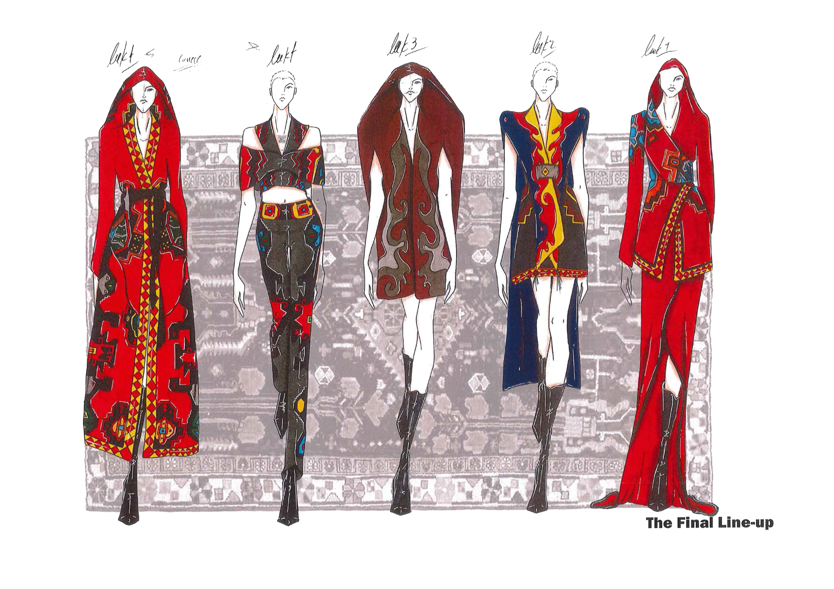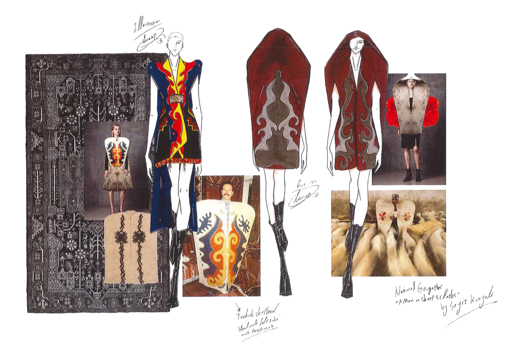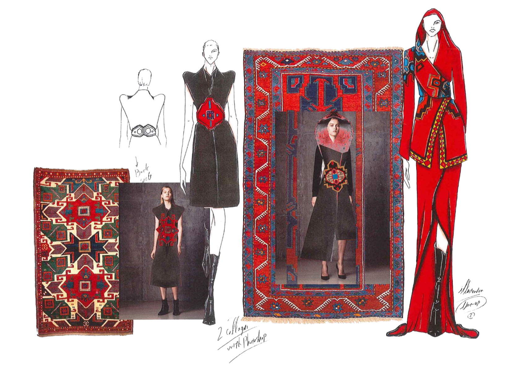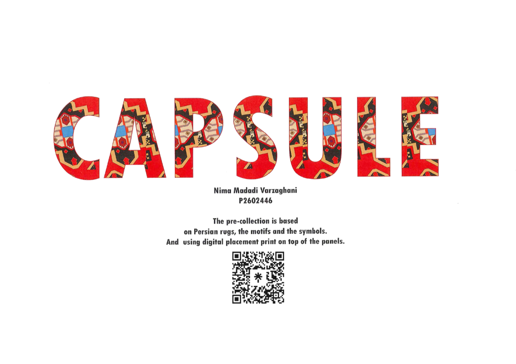 By using Persian rug motifs and symbols as the source of inspiration for design and making digital placement print, and looking at cloths of the Persian ethnic groups, specially shepherd's clothing's for the silhouette and making three piece outfit.