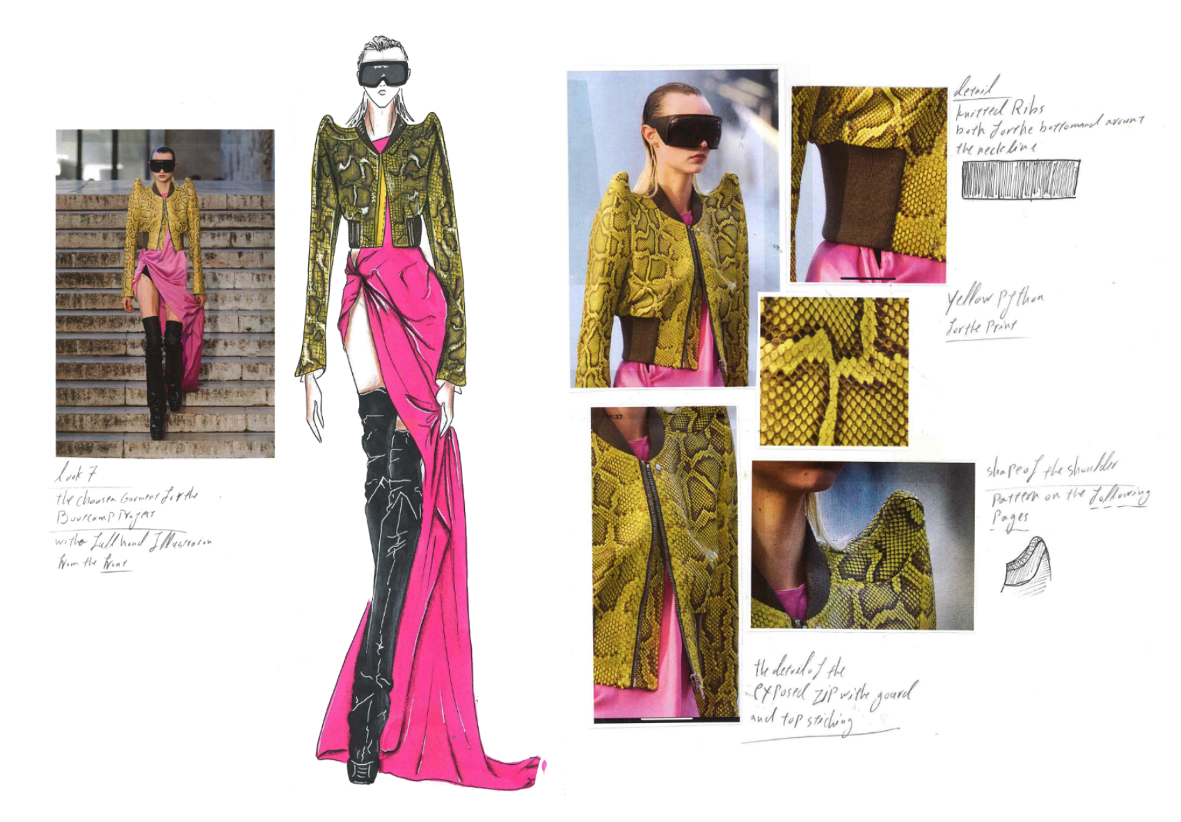 Working on a designer garment from one of the recent collections. Analysing the garment and the construction, understanding the meaning and the purpose of the design, the inspiration behind it, designer's aesthetic and his design process. And RICK OWENS spring summer 2023 "EDFO" look number 7 has been chosen for this purpose.