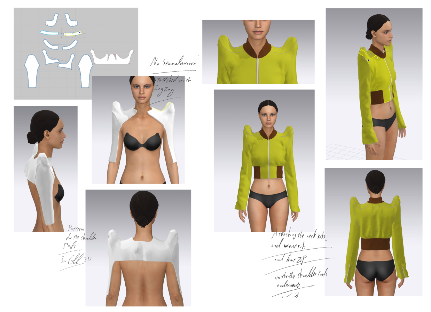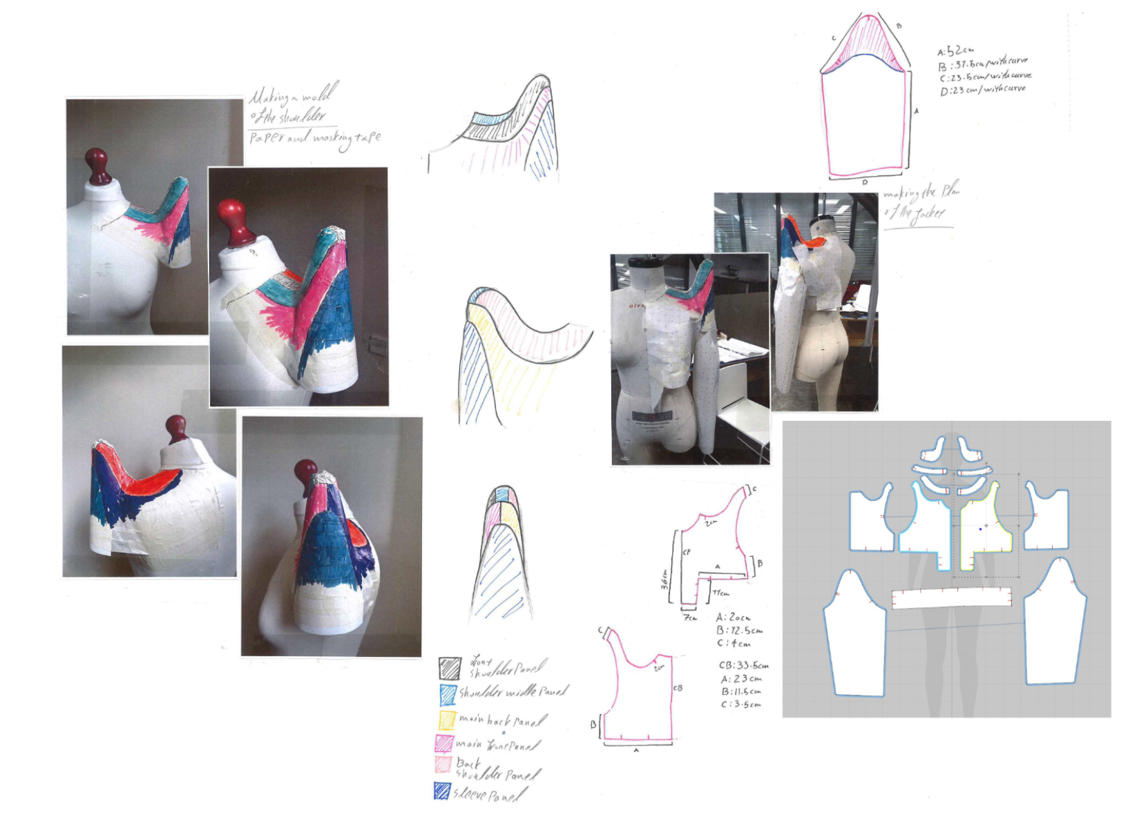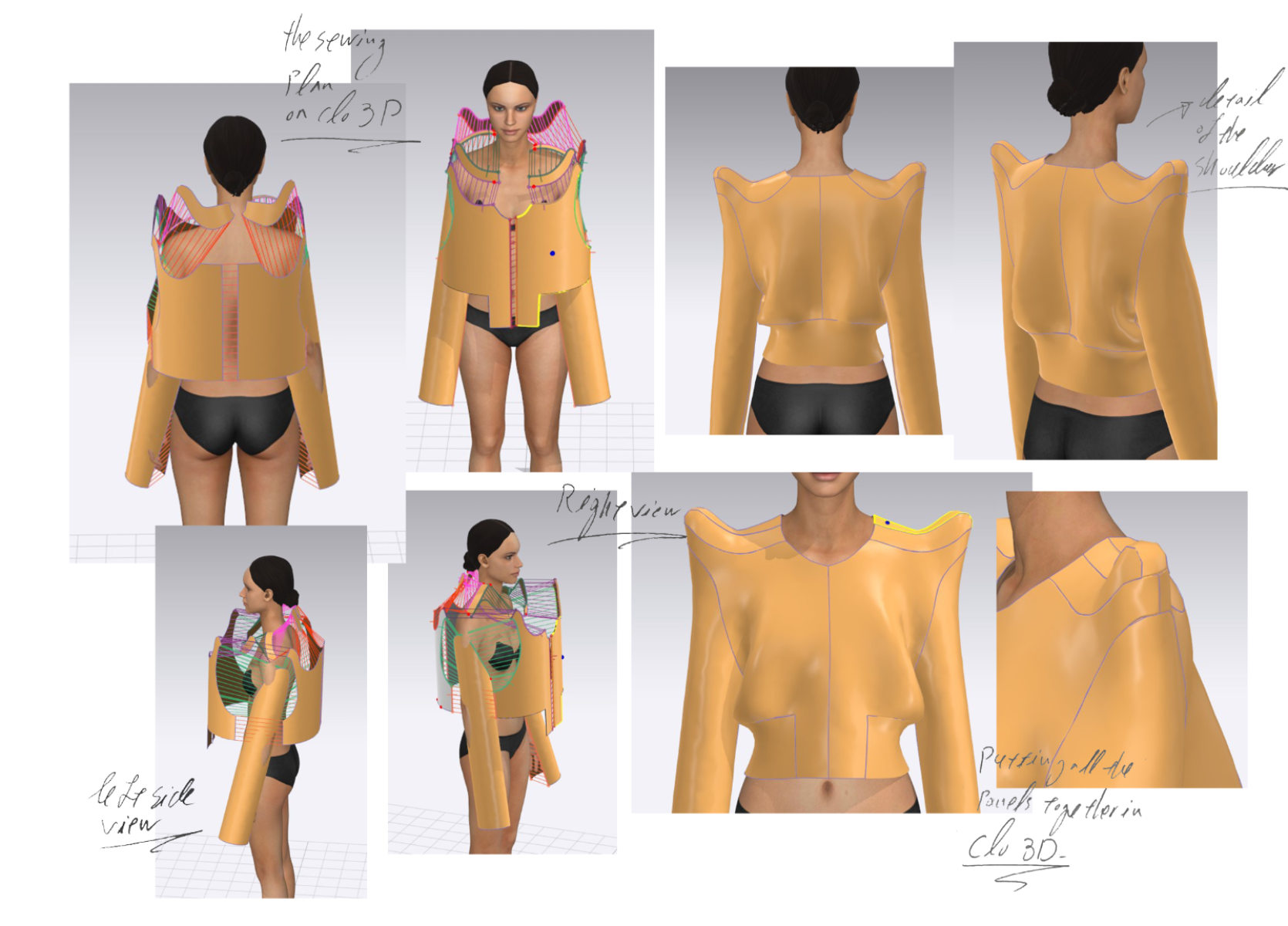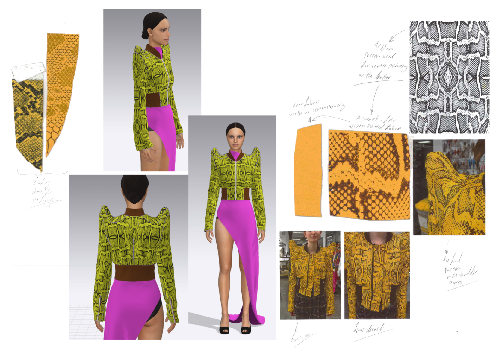 my final major project, my concept was youth and being free and fantasizing, talking about sex and sexuality and exploring your fantasies freely, breaking the tradition and realising the inner you. I used a lot of creative pattern cutting technics by using a combination of traditional pattern cutting and also, CLO 3D, worked with heavy denim and leather and placement print, and for my major project I did menswear. The result was 3 outfits ( 7 garments), 2 jackets with detachable pieces, 2 shorts with detachable details, a silver leather jumpsuit and also 2 t-shirts with placement prints.
