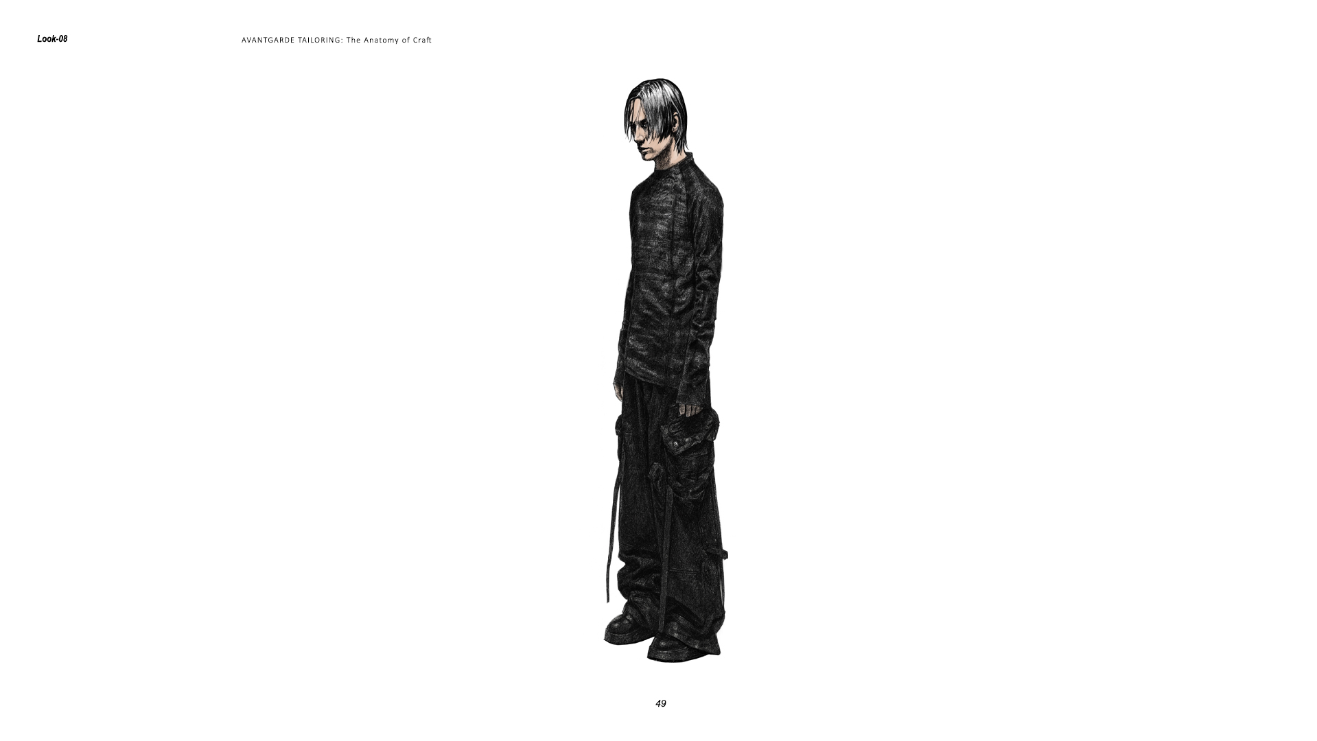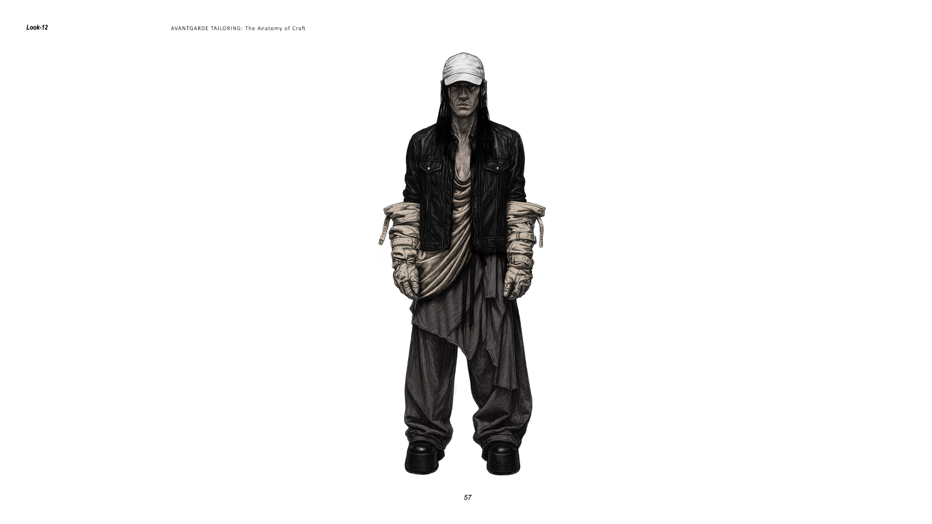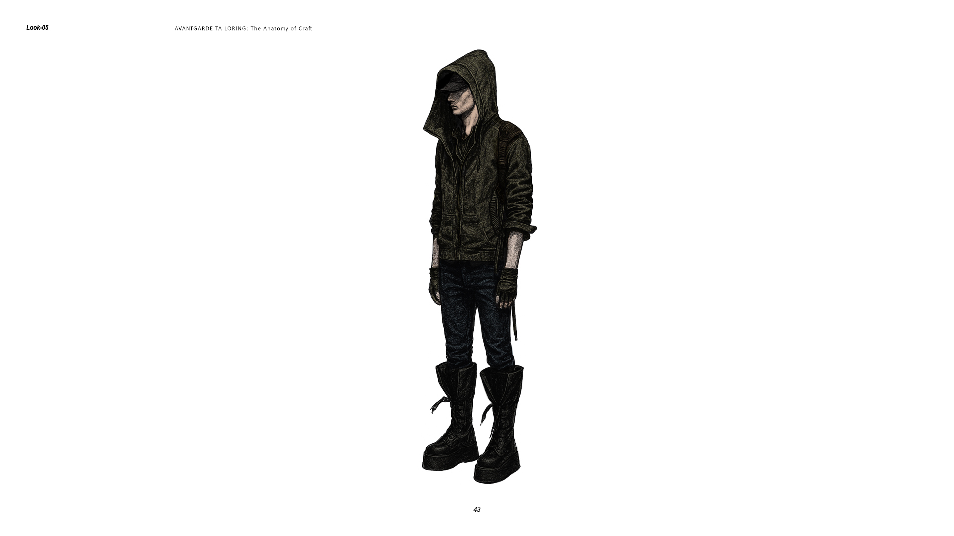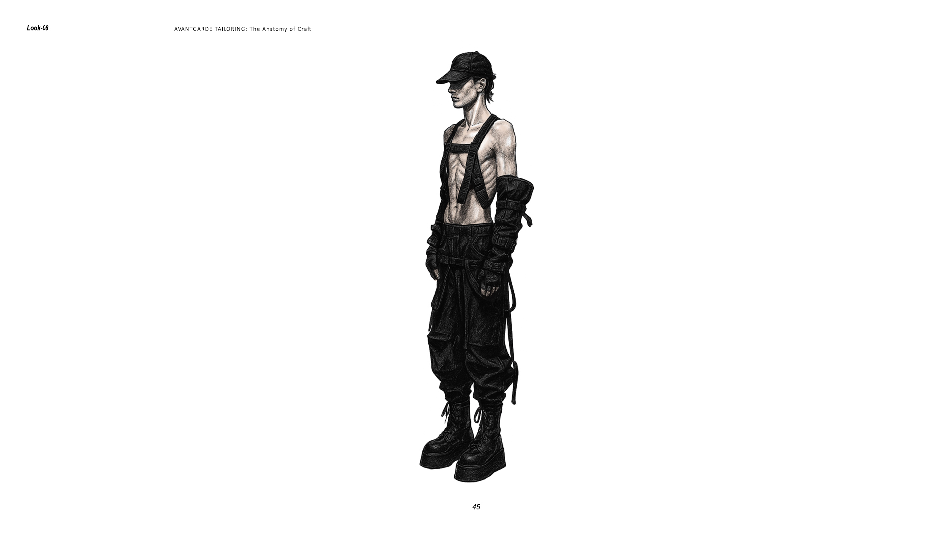 Abstract: This project investigates the intersection between avantgarde aesthetics and contemporary high-level tailoring. The aim is to redefine the relationship between experimentation, construction, and quality in menswear, while resisting the industrial standardisation that dominates the current fashion system. The research originates from direct experience inside Brioni's factory in Penne, where more than six hundred manual steps and over seventy hours of work are required to complete a single jacket. Observing the coexistence of Brioni's artisanal production and Gucci's industrial jackets within the same facility revealed a clear contrast between human precision and mechanical efficiency. This duality became the conceptual foundation of the work. The collection draws inspiration from designers such as Carol Christian Poell, Maurizio Amadei, Maurizio Altieri, and Rick Owens, whose practices merge brutalist aesthetics with deep material sensi-tivity. Through a year-long technical investigation, the project reconstructs and adapts Poell-inspired construction techniques on leather, in particular the Overlock Seam: a three-step process combining overlock stitching on a Venus IDL 302, reinforcement with Juki MF7923 or Union Special 36200-PJ, and internal sealing with hot melt adhesive. This transforms the seam into a living architectural element that exposes, rather than hides, its own structure. Each garment becomes an object of construction and memory, shaped in leather or fabric, cut, burned, and hand-finished. The work rejects decorative luxury and proposes a vision in which precision and imperfection coexist as an authentic language of making. Avantgarde Tailoring: The Anatomy of Craft stands as a manifesto for radical and contemporary craftsmanship, positioning the tailor not as a nostalgic figure, but as a contemporary author who, through gesture and material, redefines the anatomy of menswear.