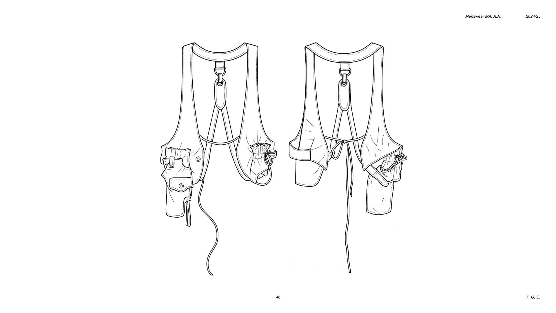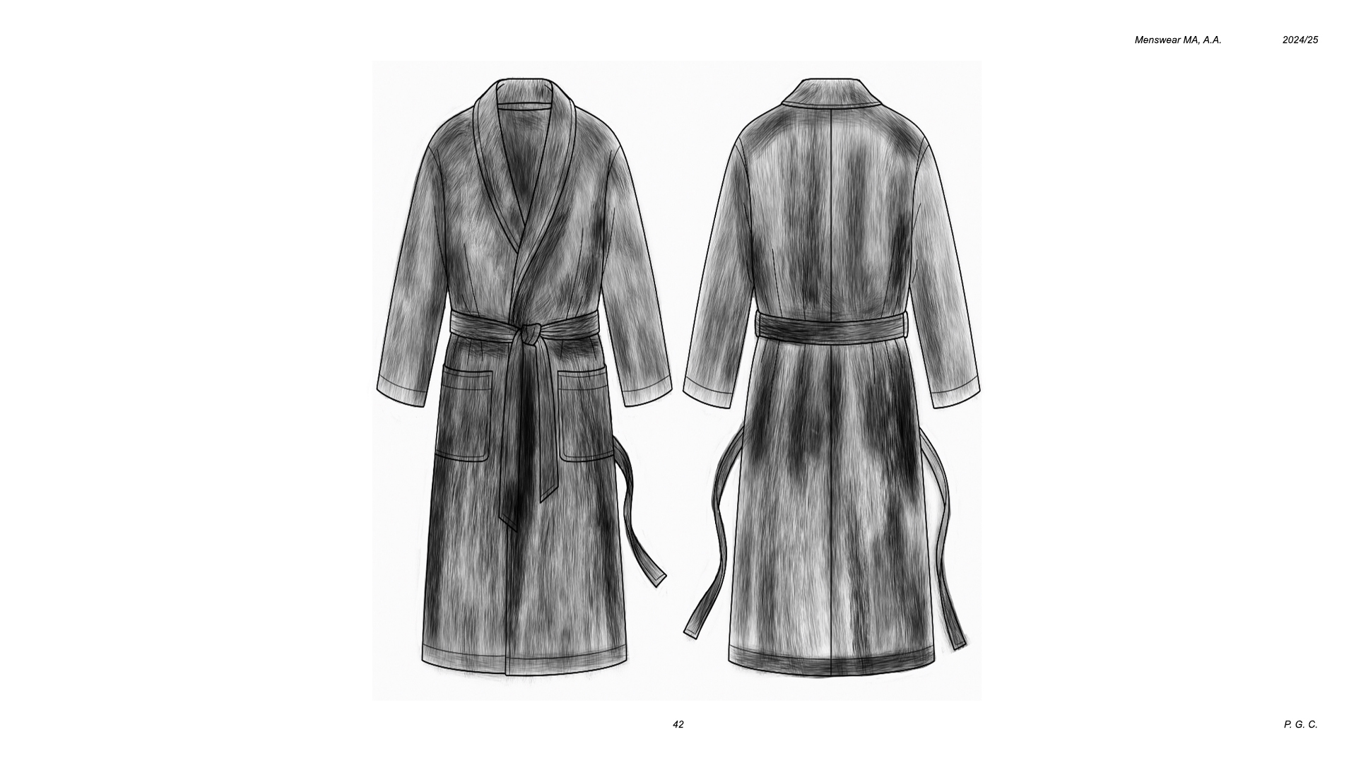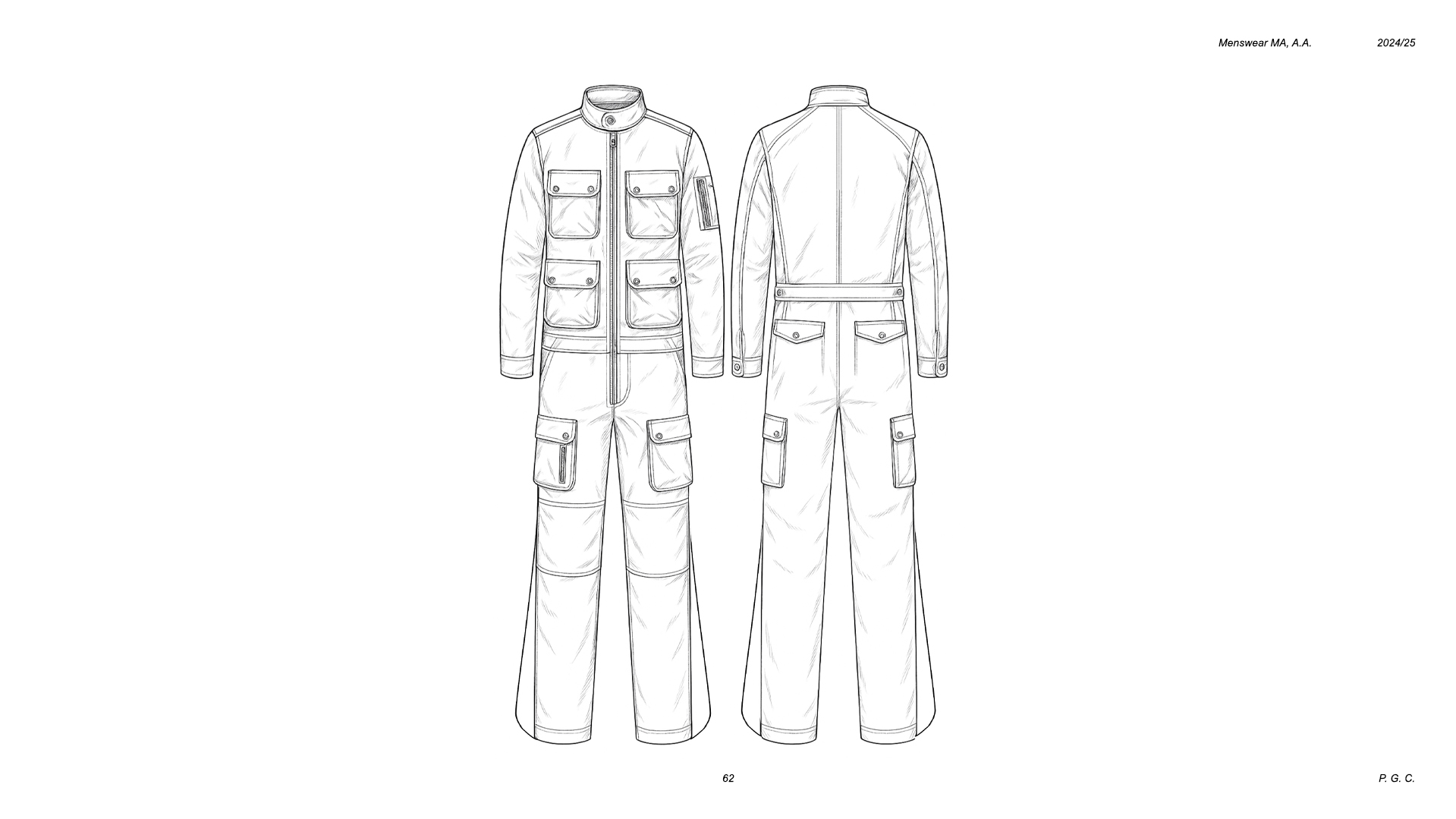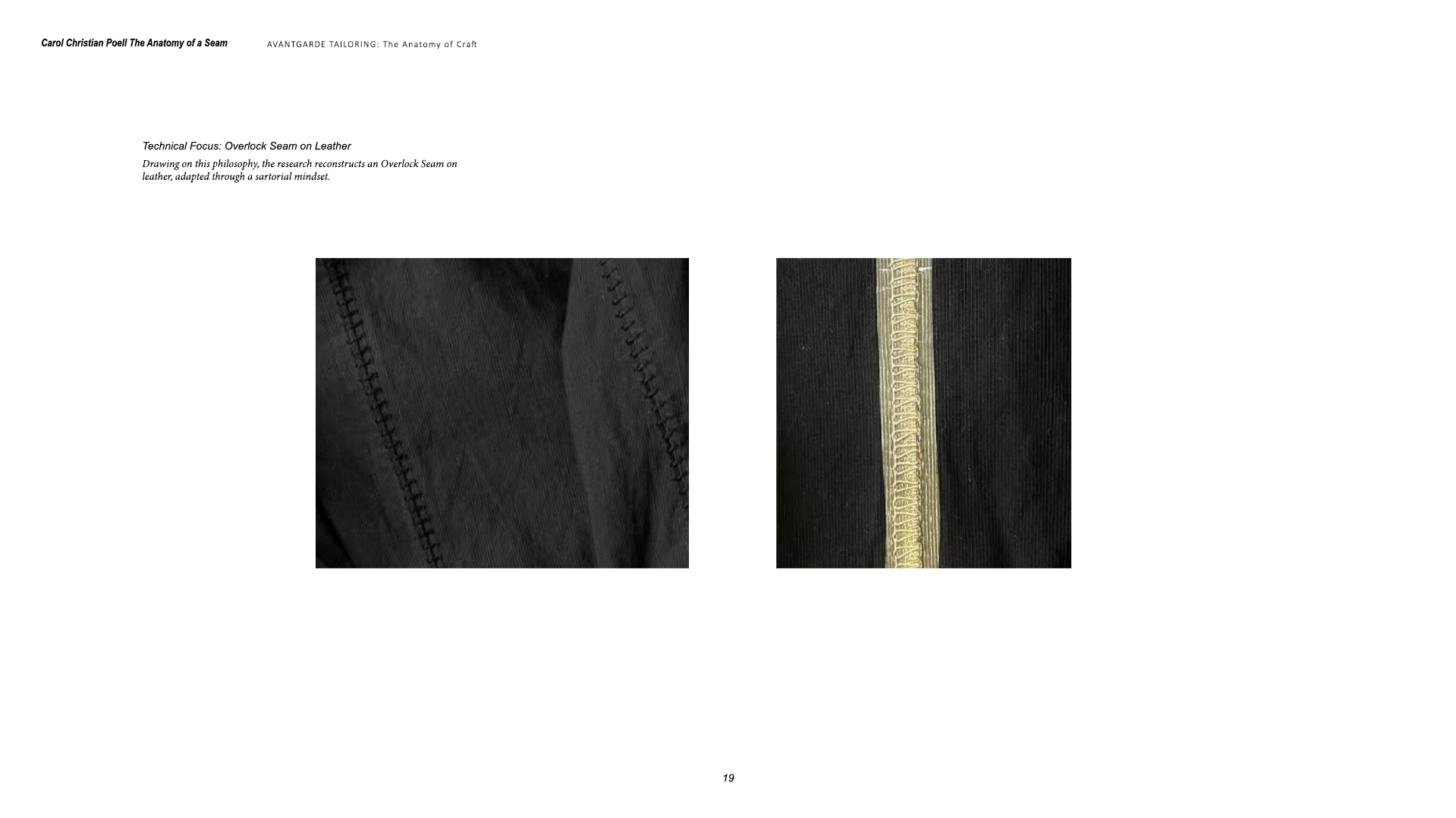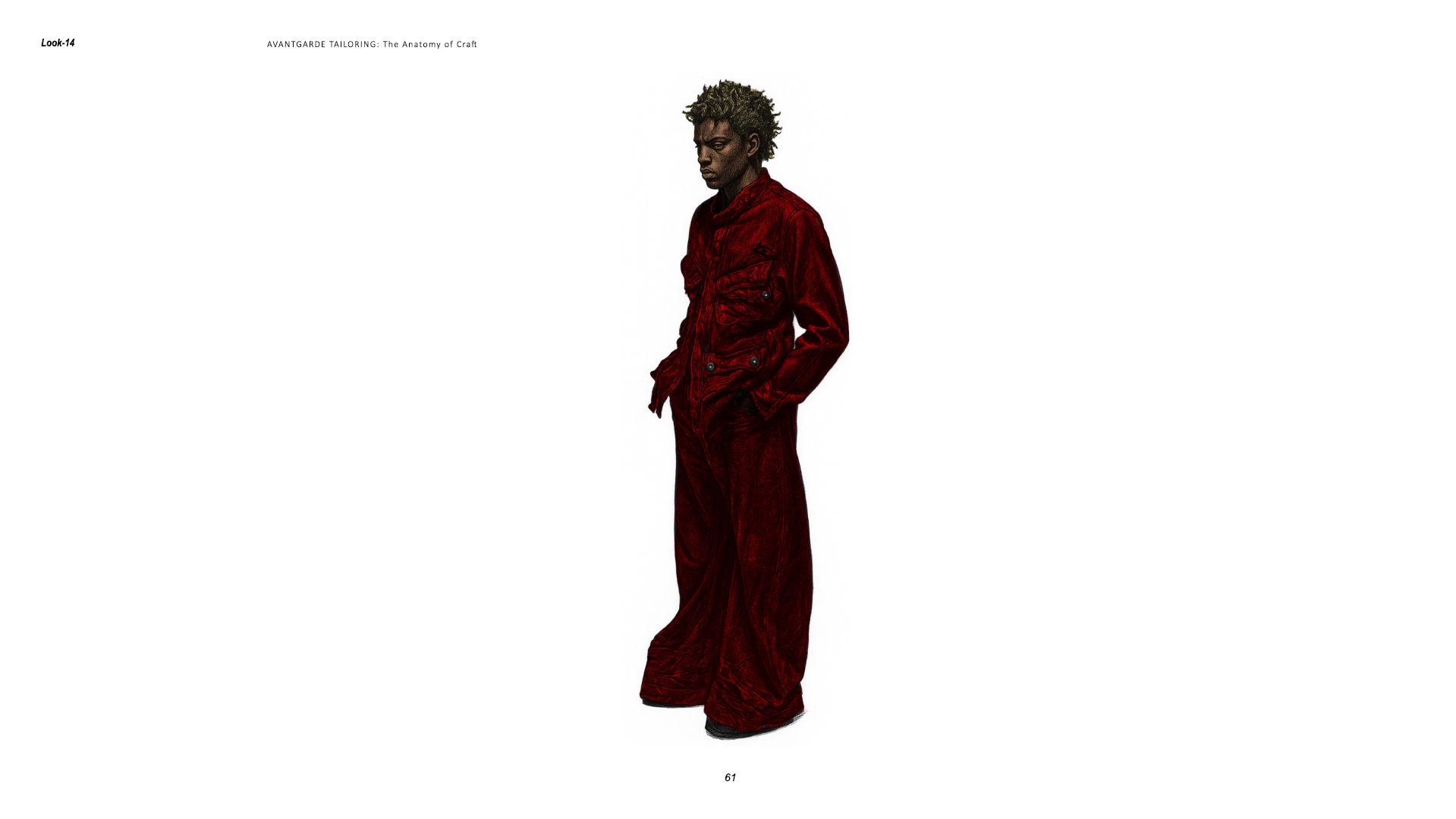 Abstract: This project investigates the intersection between avantgarde aesthetics and contemporary high-level tailoring. The aim is to redefine the relationship between experimentation, construction, and quality in menswear, while resisting the industrial standardisation that dominates the current fashion system. The research originates from direct experience inside Brioni's factory in Penne, where more than six hundred manual steps and over seventy hours of work are required to complete a single jacket. Observing the coexistence of Brioni's artisanal production and Gucci's industrial jackets within the same facility revealed a clear contrast between human precision and mechanical efficiency. This duality became the conceptual foundation of the work. The collection draws inspiration from designers such as Carol Christian Poell, Maurizio Amadei, Maurizio Altieri, and Rick Owens, whose practices merge brutalist aesthetics with deep material sensi-tivity. Through a year-long technical investigation, the project reconstructs and adapts Poell-inspired construction techniques on leather, in particular the Overlock Seam: a three-step process combining overlock stitching on a Venus IDL 302, reinforcement with Juki MF7923 or Union Special 36200-PJ, and internal sealing with hot melt adhesive. This transforms the seam into a living architectural element that exposes, rather than hides, its own structure. Each garment becomes an object of construction and memory, shaped in leather or fabric, cut, burned, and hand-finished. The work rejects decorative luxury and proposes a vision in which precision and imperfection coexist as an authentic language of making. Avantgarde Tailoring: The Anatomy of Craft stands as a manifesto for radical and contemporary craftsmanship, positioning the tailor not as a nostalgic figure, but as a contemporary author who, through gesture and material, redefines the anatomy of menswear.