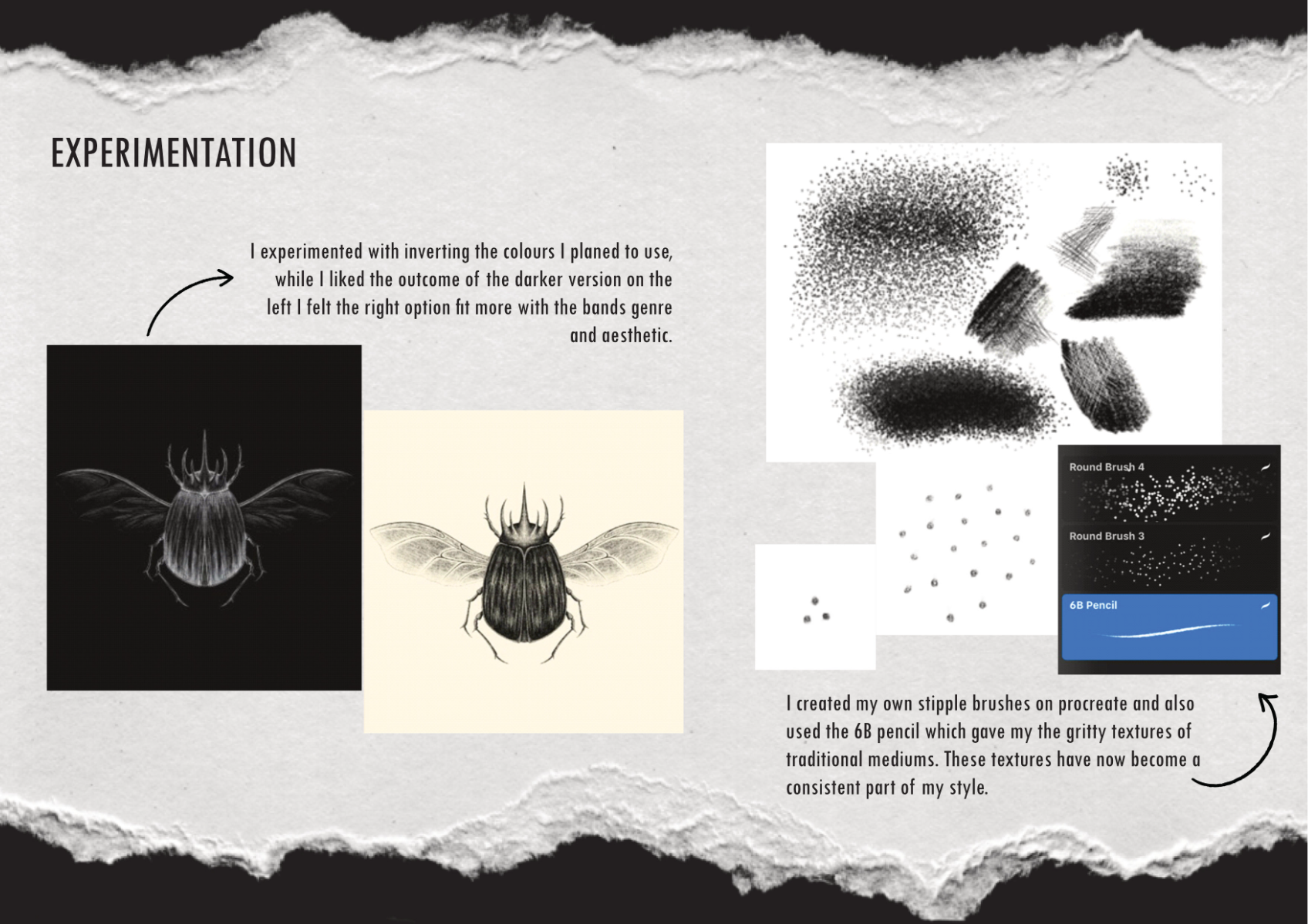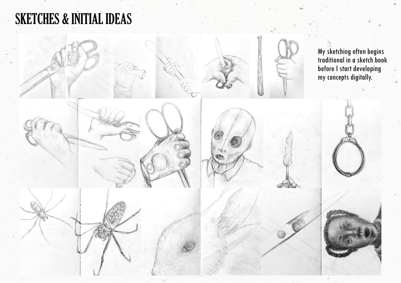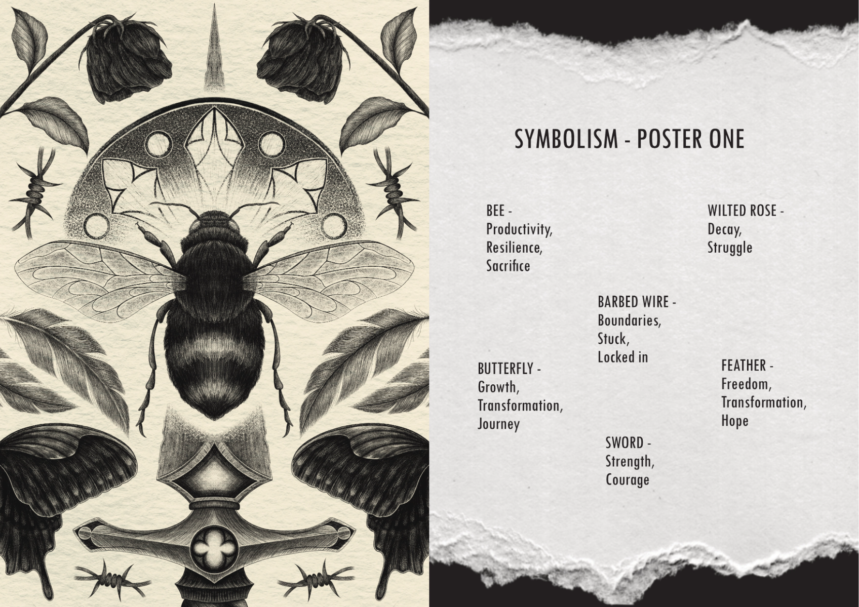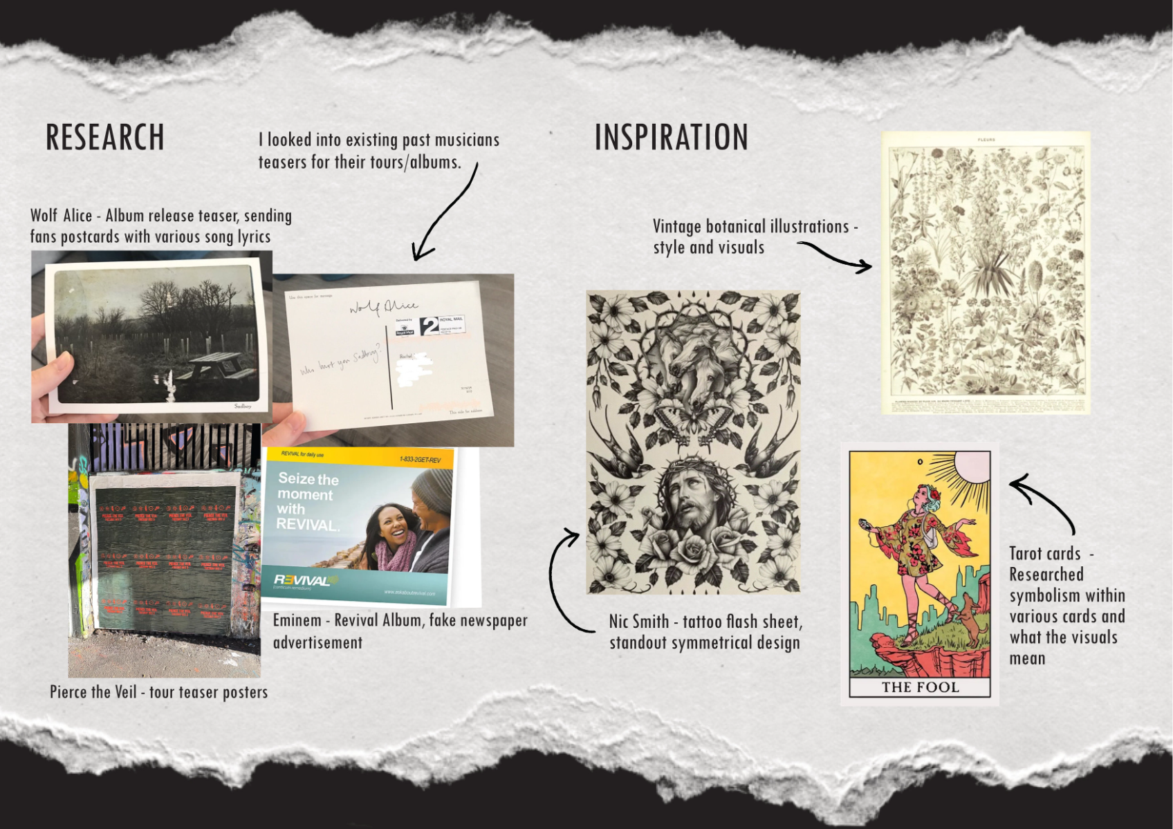 Sadie’s work is often deeply rooted with symbolism, striving to create engaging illustrations with depth and meaning. She is greatly Inspired by Illustrators in the music industry and tattoo world, both of which have influenced and informed Sadie’s artistic identity today. Her compositions frequently incorporate visuals that hold symbolic significance to the piece she's developing. She strives to visually tell the narrative of each brief through her illustrations. Music is not only a source of inspiration for Sadie, she also finds her creativity thrives while listening to music, it serves as an escape from the outside world and a means to focus throughout her creative process.