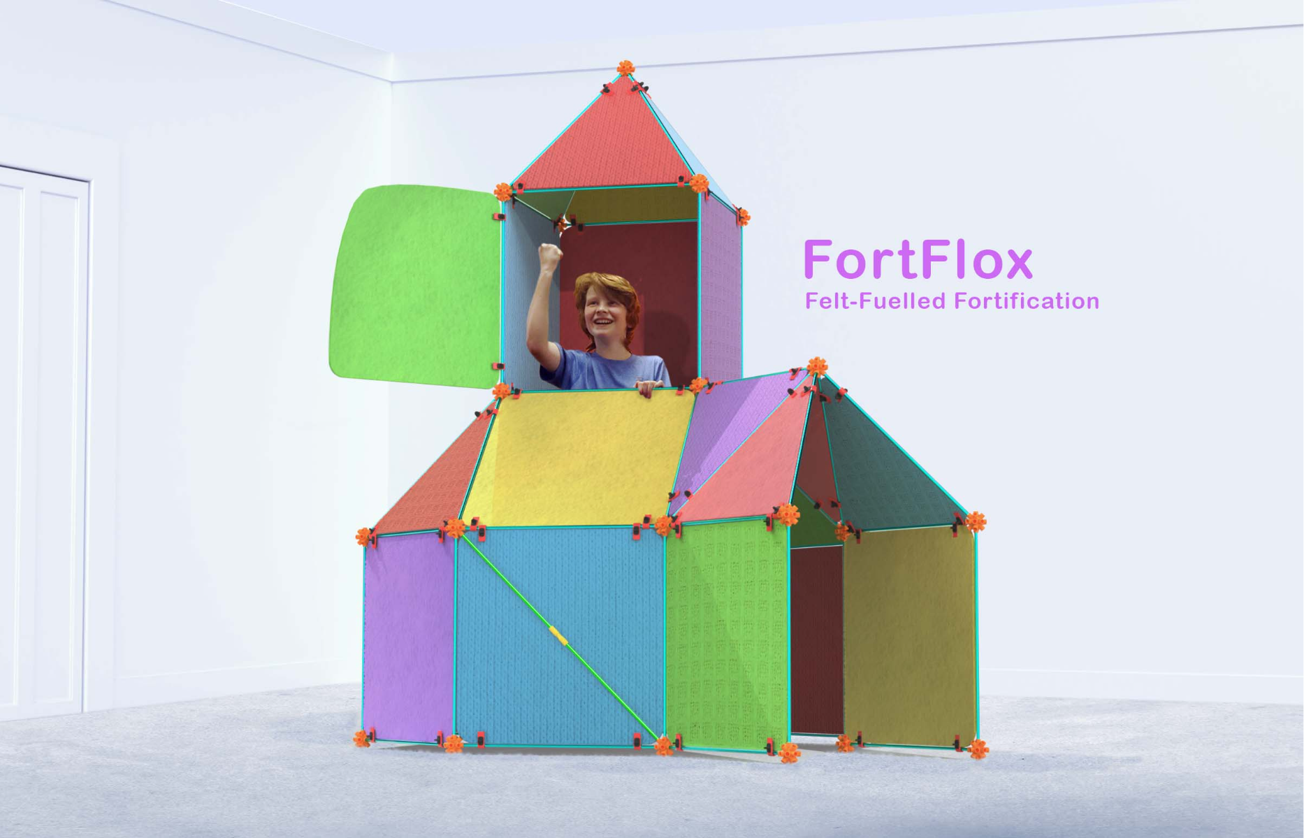 A play-fort building kit utilising New Zealand strong wool. This project was a concept developed for the 'Campaign for Wool' initiative to incorporate more strong wool into commercial products given its dominance in NZ wool production. True to the environmental values of CFWNZ, Fortflox is designed with entirely recyclable/biodegradable materials - wool, aluminium, and natural rubber, with every component separable for disposal or cleaning.
